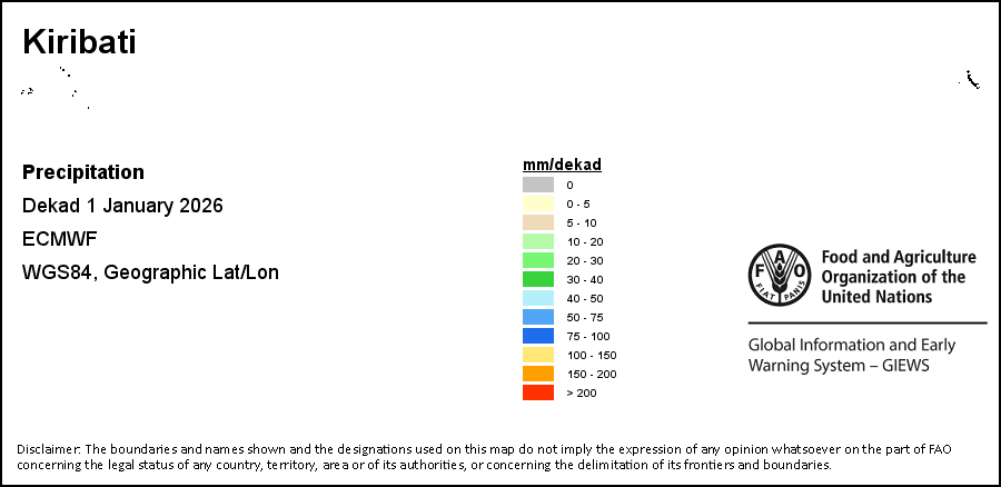 La carte illustre les volumes cumulés de précipitations au cours d’une décade (une période de 10 jours). Les estimations concernant les précipitations pour tous les pays africains (à l'exception du Cap Vert et de Maurice) proviennent du NOAA/FEWSNet, tandis que les données concernant les autres pays sont obtenues à partir du CEPMMT.