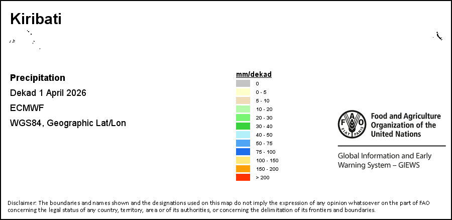 На карте изображены кумулятивные объемы осадков в декаду (10-дневный период). Оценки атмосферных осадков для всех африканских стран (за исключением Кабо-Верде и Маврикия) получены из системы NOAA/Системы раннего предупреждения об опасности голода, а по остальным странам данные получены из системы ECMWF.
