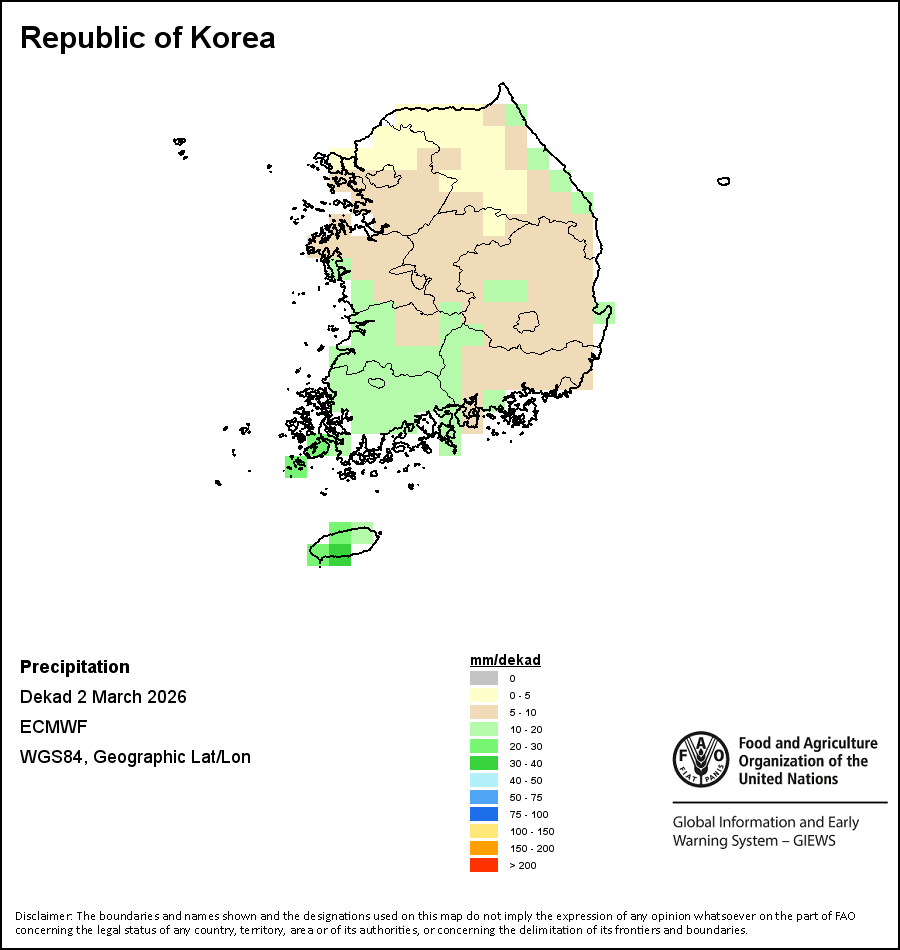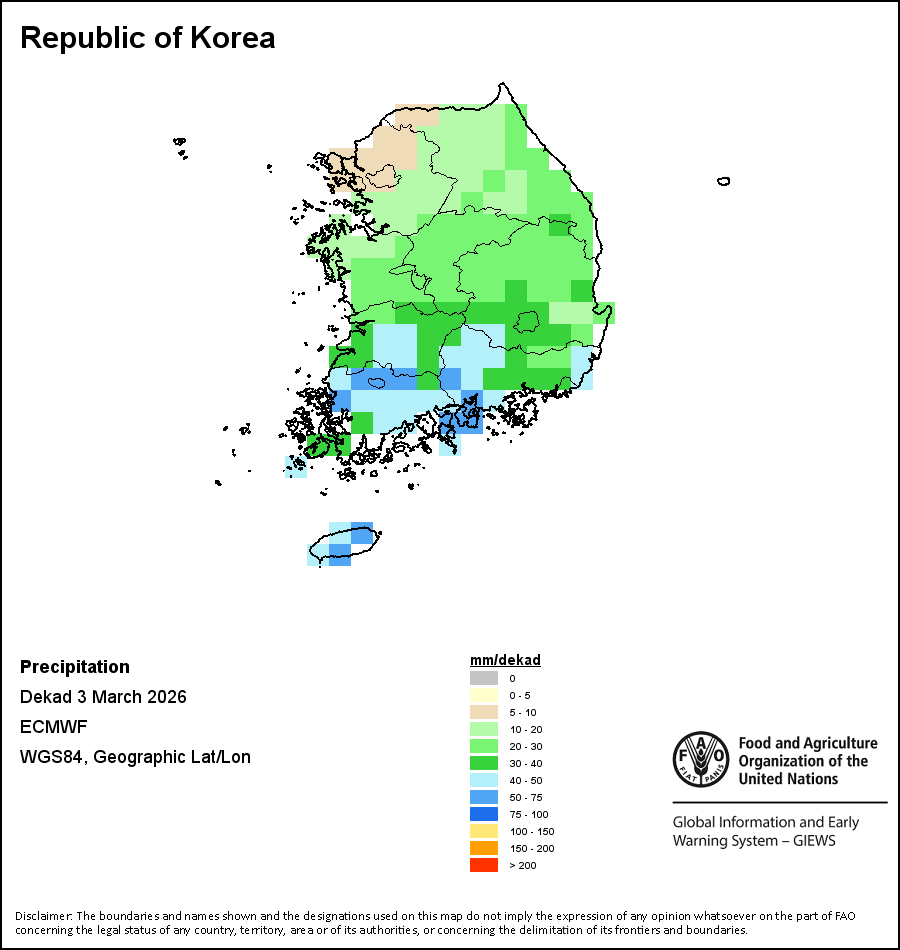 تصور الخرائط والمخططات البيانية المرسومة على مستوى البلد آخر 36 شهراً في للمؤشرات الموسمية والنباتية وتلك المتعلقة بالهطولات. وتمثل البيانات خلال فترة عشرة أيام وشهر. مد جميع المؤشرات النباتية الثلاثة على بيانات نباتية لعشرة أيام مأخوذة من حساس METOP-AVHRR بدقة 1 كم (2007 وما بعد). أما بيانات الفترة من 1984-2006 والتي هي أيضاً بدقة 1 كم فمأخوذة من مجموعة بيانات المقياس الإشعاعي المتقدم ذو الدقة العالية جدا التابع للإدارة الوطنية لدراسة المحيطات والغلاف الجوي بدقة 16 كم. وتؤخذ تقديرات الهطولات لكافة بلدان أفريقيا (ما عدا كابو فيردي وموريشوس) من شبكة بيانات الإدارة الوطنية لدراسة المحيطات والغلاف الجوي/نظام الإنذار المبكر بالمجاعة، أما بالنسبة للبلدين المتبقيين فتؤخذ من المركز الأوروبي للتنبؤات الجوية المتوسطة المدى. بفضل ازياد دقة مؤشرات الغطاء النباتي (من قبيل المؤشر الموحد لتباين الغطاء النباتي و مؤشر الغطاء النباتي) قياسًا بمؤشرات الهطول الأقل دقة، نجد أن عدد الوحدات التي يمكن توليد إحصاءات مناطقية صالحة لها على المستوى دون الوطني باستخدام مؤشرات الغطاء النباتي يكون أكبر من عدد الوحدات المتاحة لمؤشرات الهطول لدى بلدان معينة.