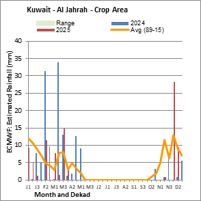The country level maps and graphs depict the latest 36-month period of the seasonal, vegetation and precipitation indicators. The data is presented by dekad and month. All three vegetation indicators are based on 10-day (dekadal) vegetation data from the METOP-AVHRR sensor at 1 km resolution (2007 and after). Data at 1 km resolution for the period 1984-2006 are derived from the NOAA-AVHRR dataset at 16 km resolution. Precipitation estimates for all African countries (except Cabo Verde and Mauritius) are taken from NOAA/FEWSNet (16 km resolution), while for the remaining countries data is obtained from ECMWF (25 km resolution). Owing to the higher resolution of vegetation indicators (e.g., NDVI, VHI) compared to coarser precipitation indicators, the number of sub-national units for which valid zonal statistics can be generated for vegetation indices is greater than the number of units for precipitation indicators for certain countries.