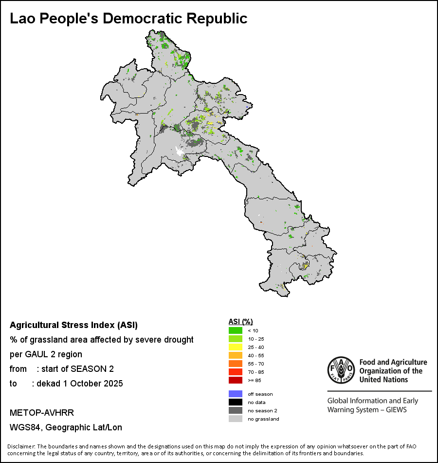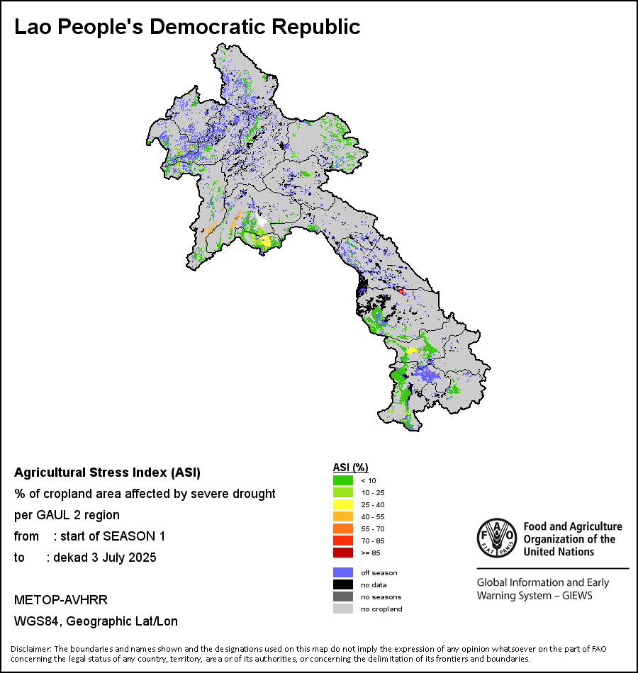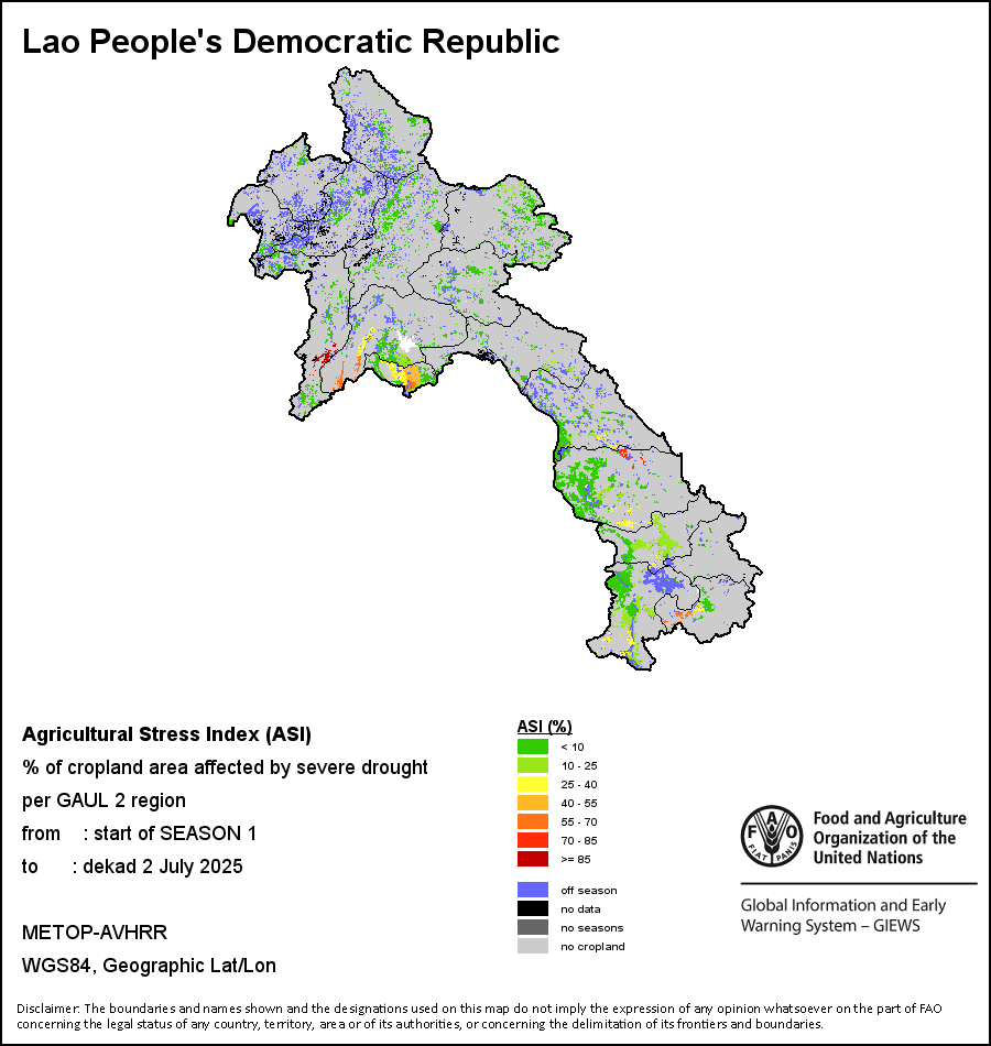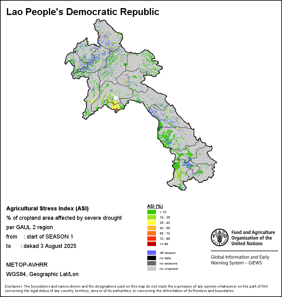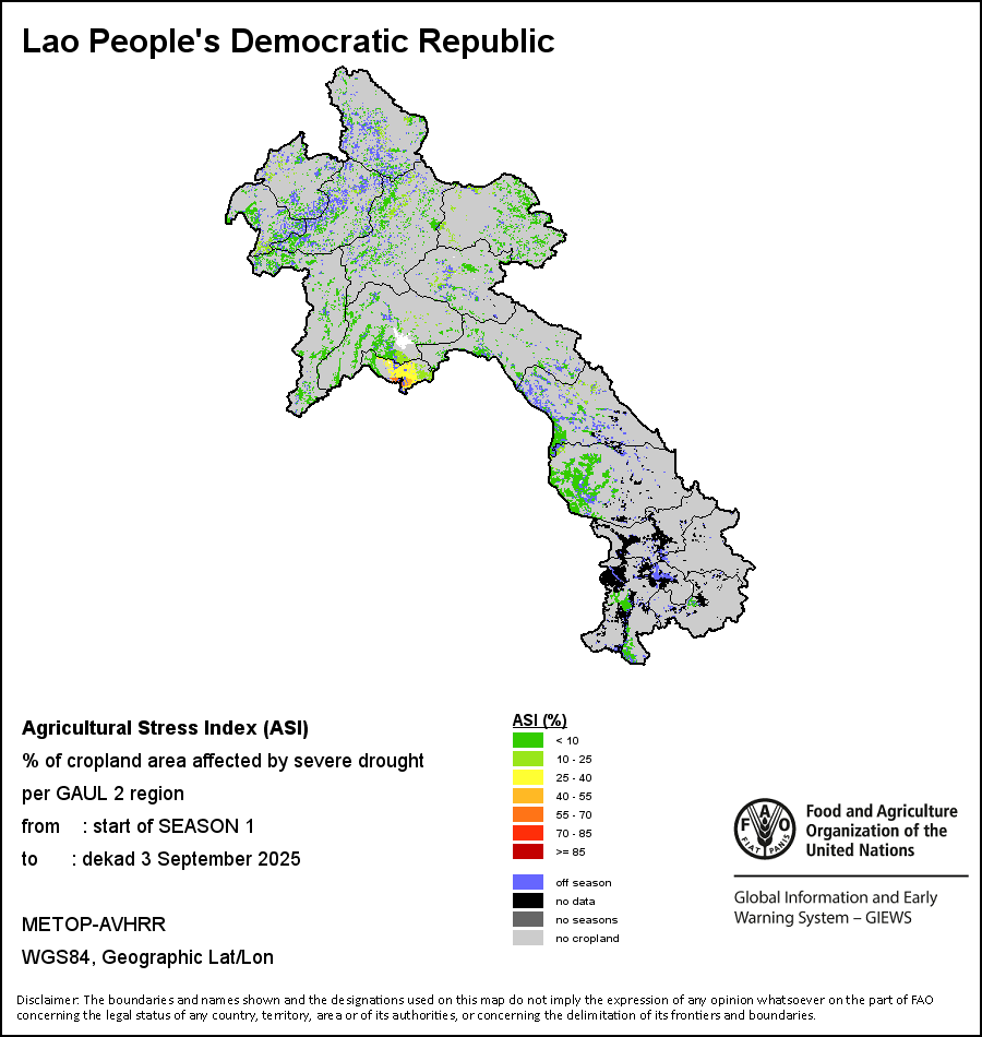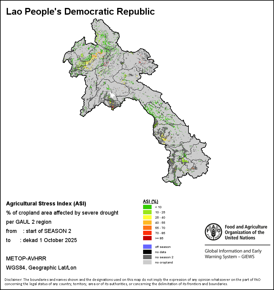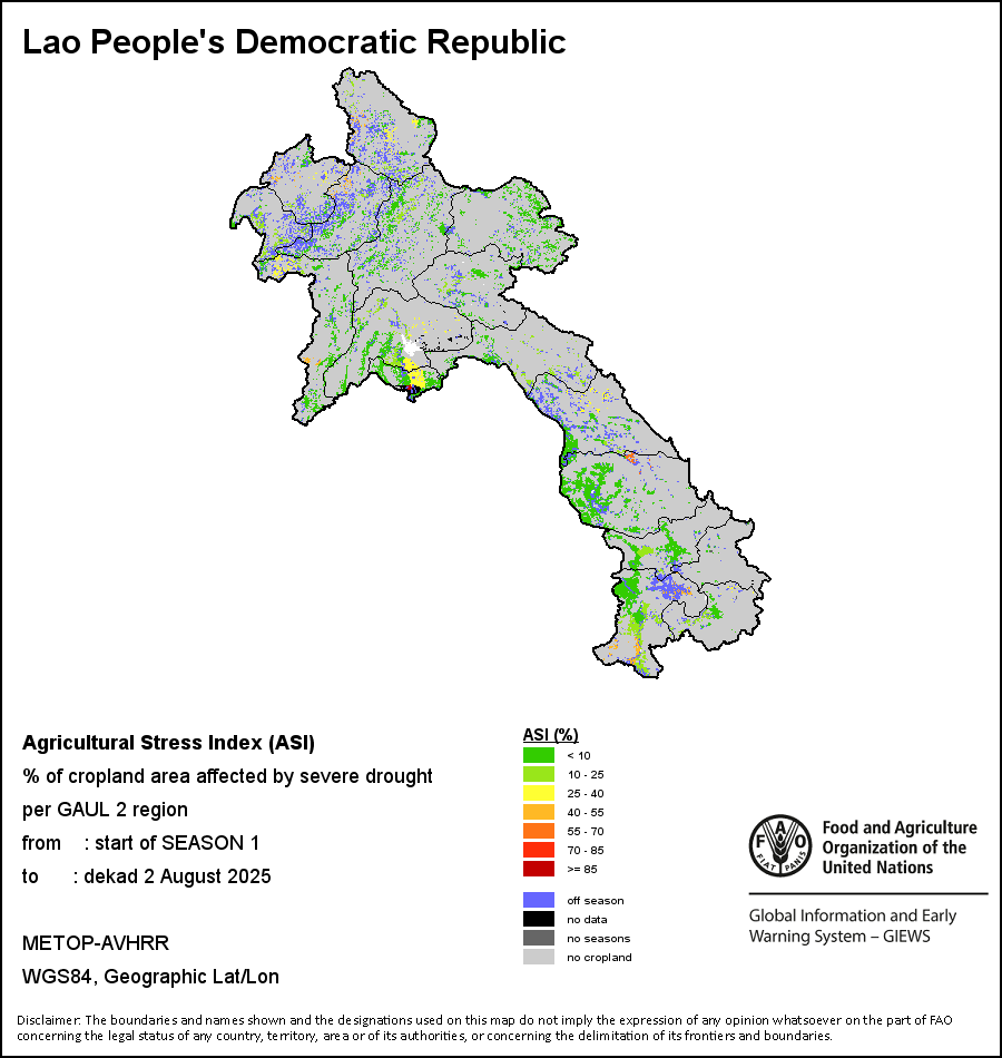 يصور مؤشر الإجهاد الزراعي السنوي النسبة المئوية من الأراضي الزراعية المتأثرة بالجفاف على امتداد الموسم الزراعي بأكمله ضمن منطقة إدارية ما. ويختلف هذا المؤشر السنوي عن مؤشر الإجهاد الزراعي الذي يعتمد على أحوال الجفاف منذ بداية الموسم وحتى فترة العشرة أيام الراهنة.