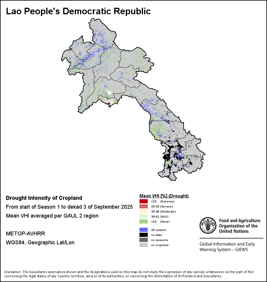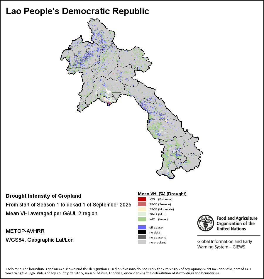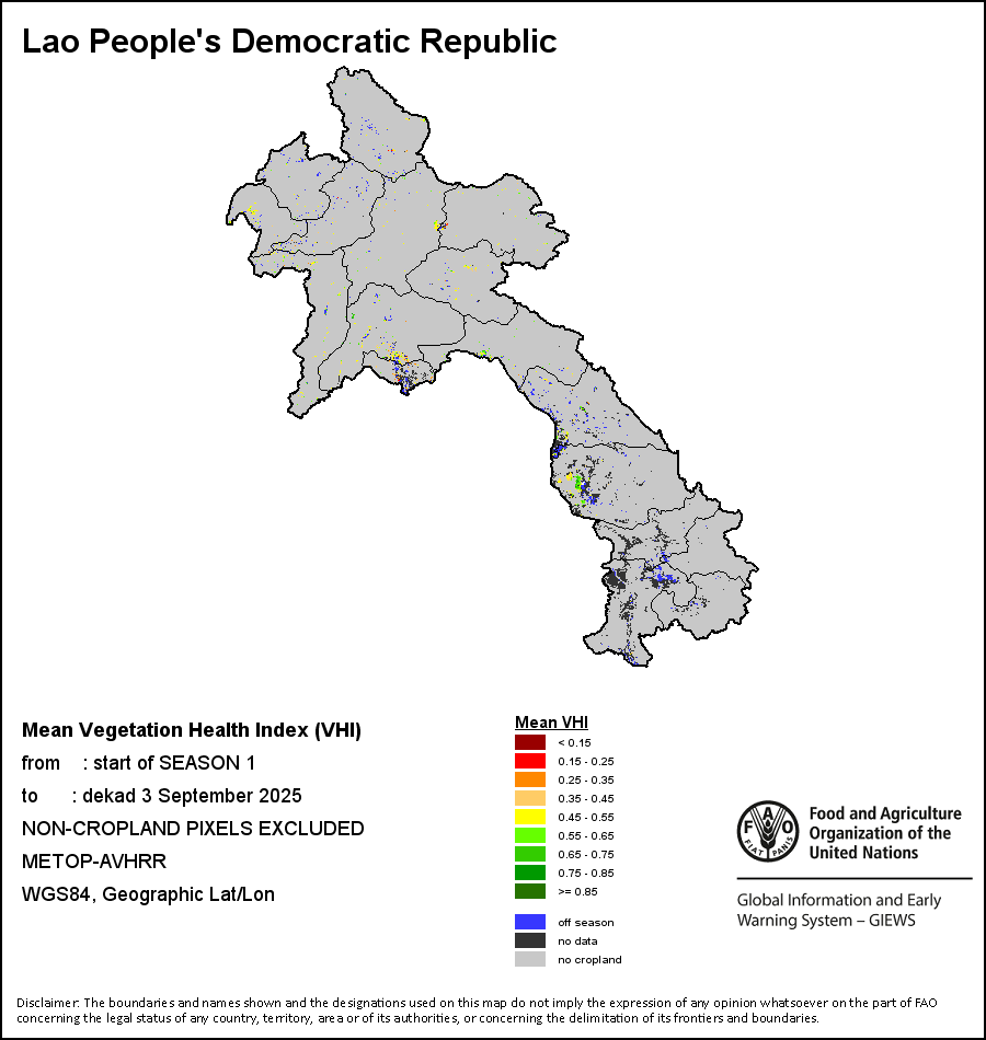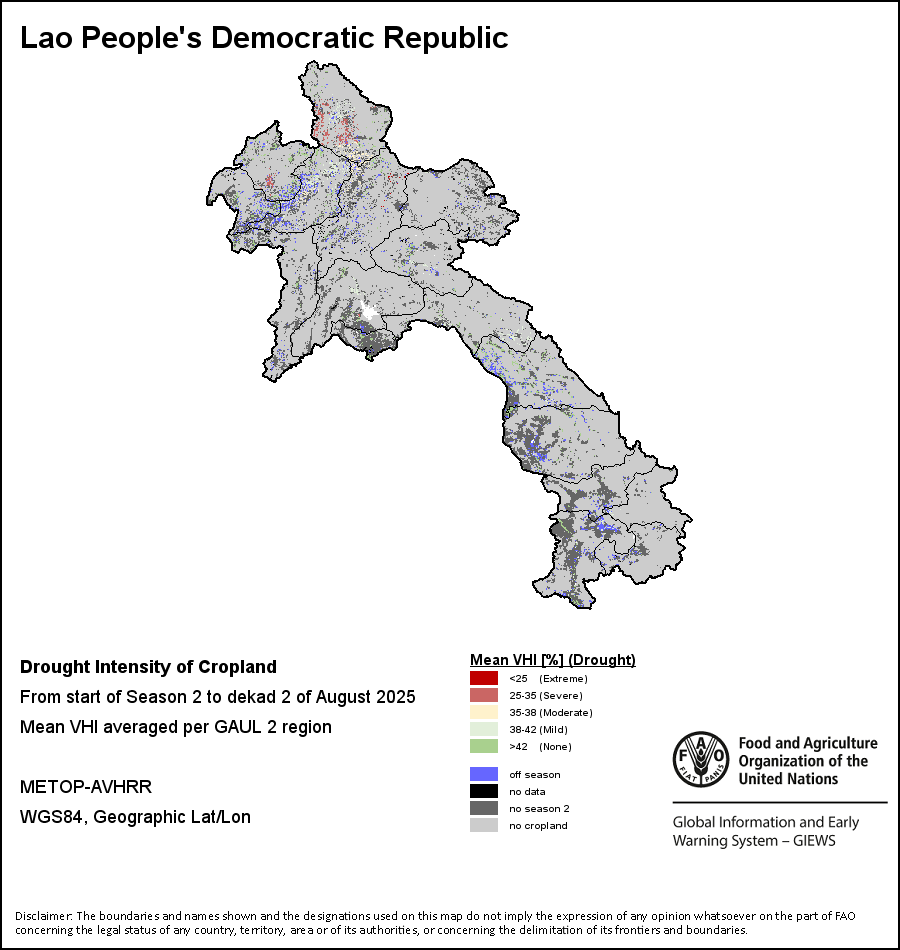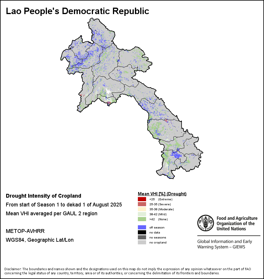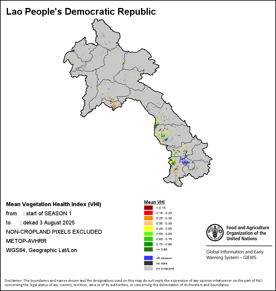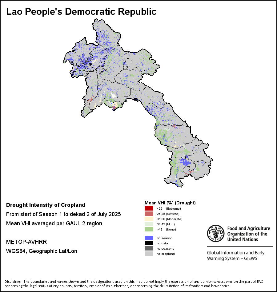 يصور مؤشر الإجهاد الزراعي السنوي النسبة المئوية من الأراضي الزراعية المتأثرة بالجفاف على امتداد الموسم الزراعي بأكمله ضمن منطقة إدارية ما. ويختلف هذا المؤشر السنوي عن مؤشر الإجهاد الزراعي الذي يعتمد على أحوال الجفاف منذ بداية الموسم وحتى فترة العشرة أيام الراهنة.