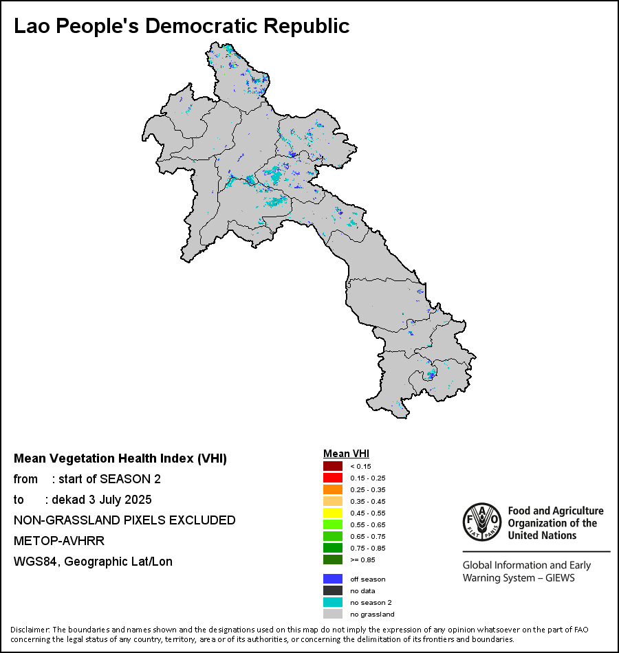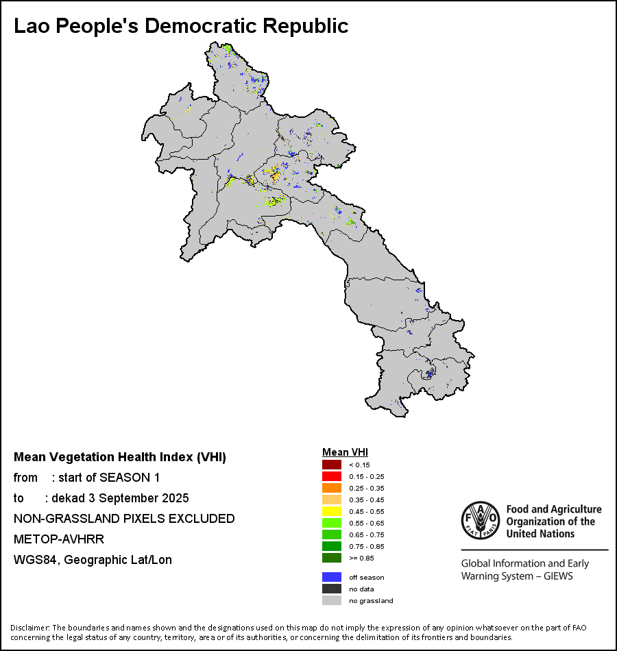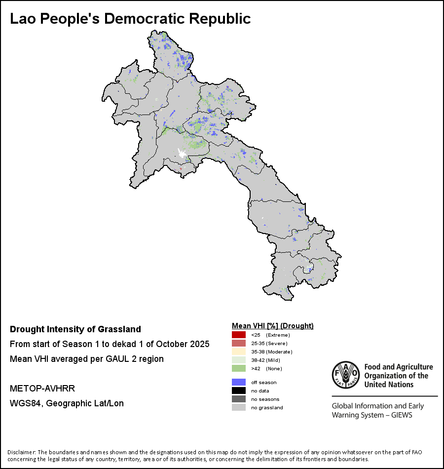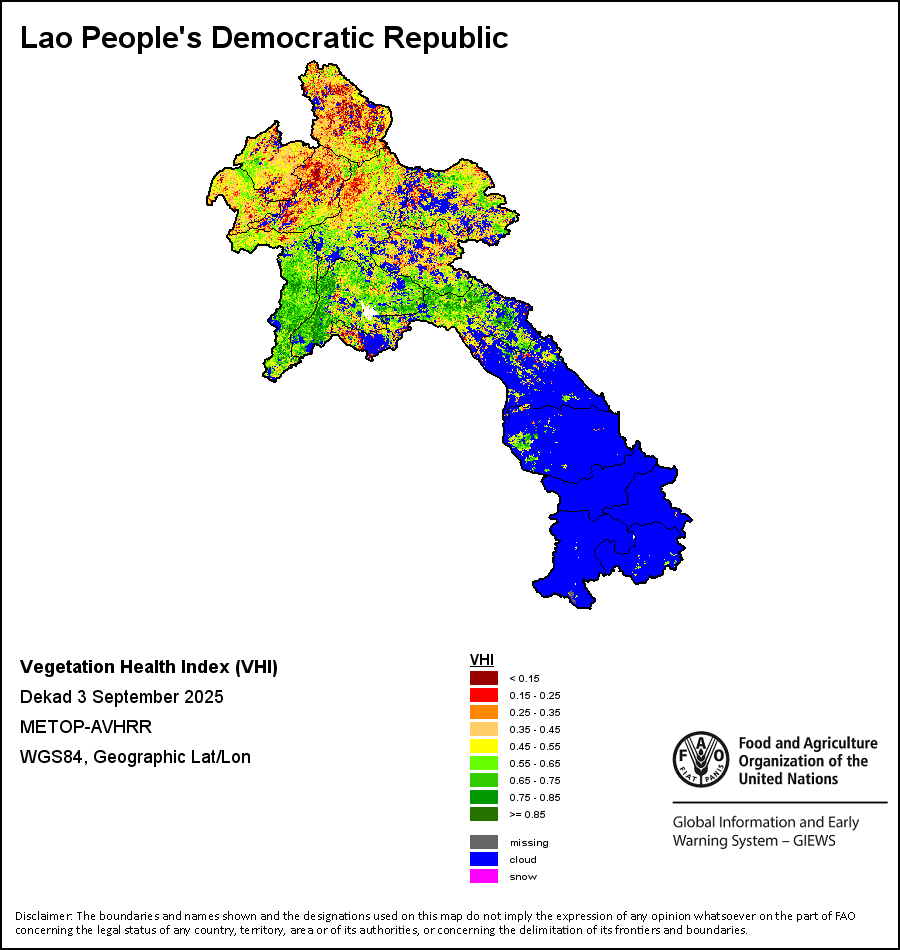 تصور الخرائط والمخططات البيانية المرسومة على مستوى البلد آخر 36 شهراً في للمؤشرات الموسمية والنباتية وتلك المتعلقة بالهطولات. وتمثل البيانات خلال فترة عشرة أيام وشهر.   أكثر
