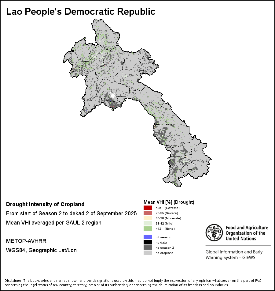 تصنف موجات الجفاف الزراعي تبعاً لشدتها وتقسم إلى أربعة مستويات: متطرفة أو شديدة أو متوسطة أو خفيفة. وتحسب شدة الجفاف من خلال متوسط المؤشر المرجح لصحة النبات المجمّع في منطقة المستوى الثاني من طبقات الوحدة الإدارية العالمية، والذي يشير إلى أنه كلما كانت الصحة النباتية متردية أكثر، كان الجفاف أشد.