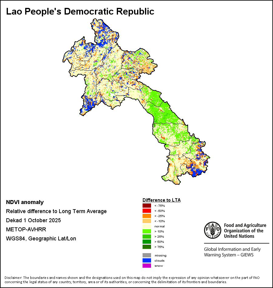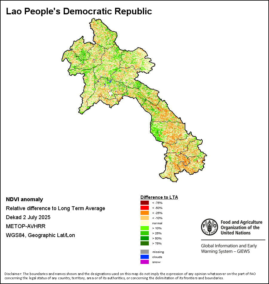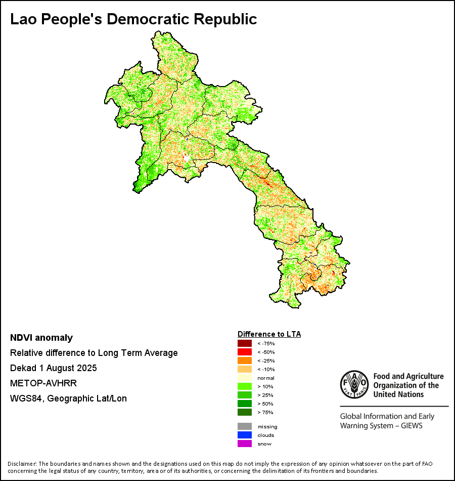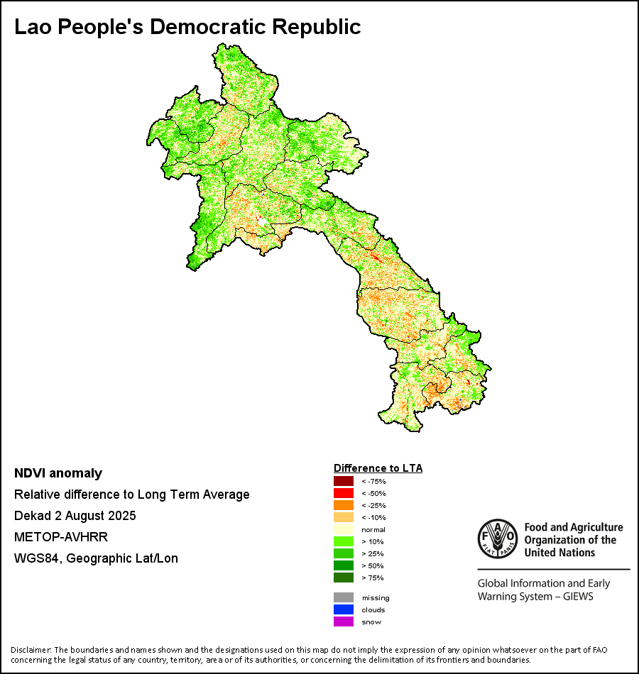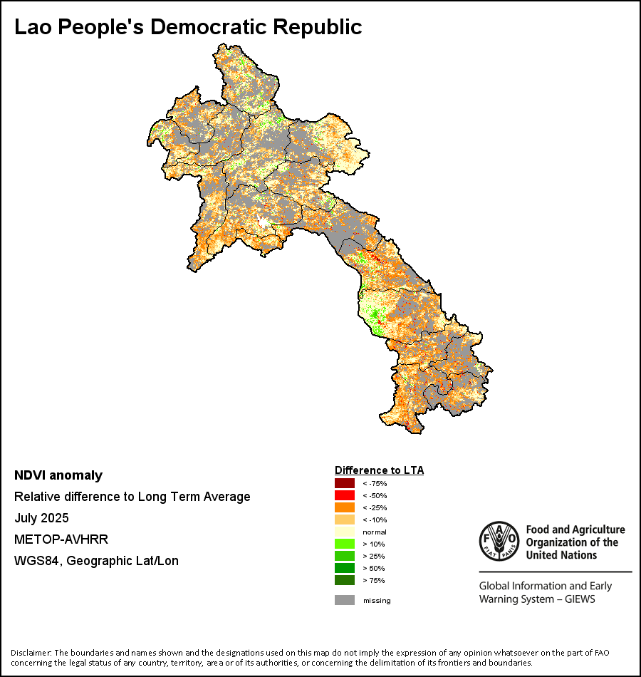 خضعت دراسة المؤشر الموحد لتباين الغطاء النباتي إلى مقارنة مع المعدل طويل الأجل (1984- 2015) وبيانات العام السابق على المستوى الإداري الأول.