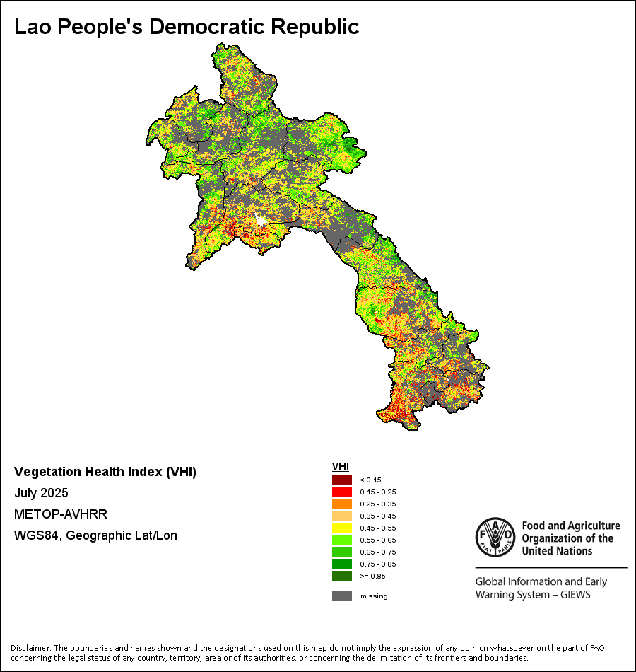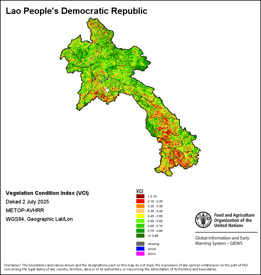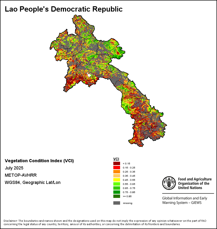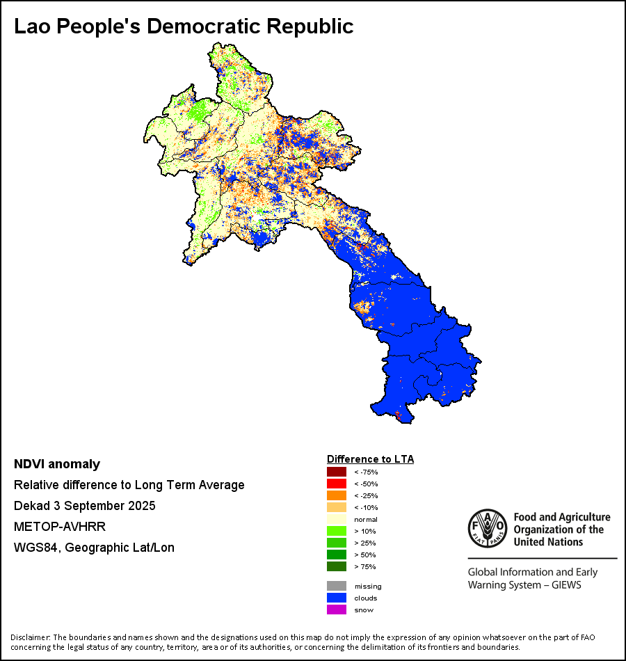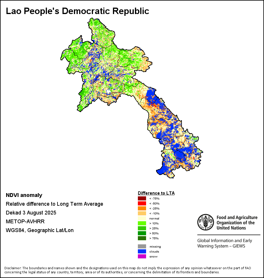 خضعت دراسة المؤشر الموحد لتباين الغطاء النباتي إلى مقارنة مع المعدل طويل الأجل (1984- 2015) وبيانات العام السابق على المستوى الإداري الأول.