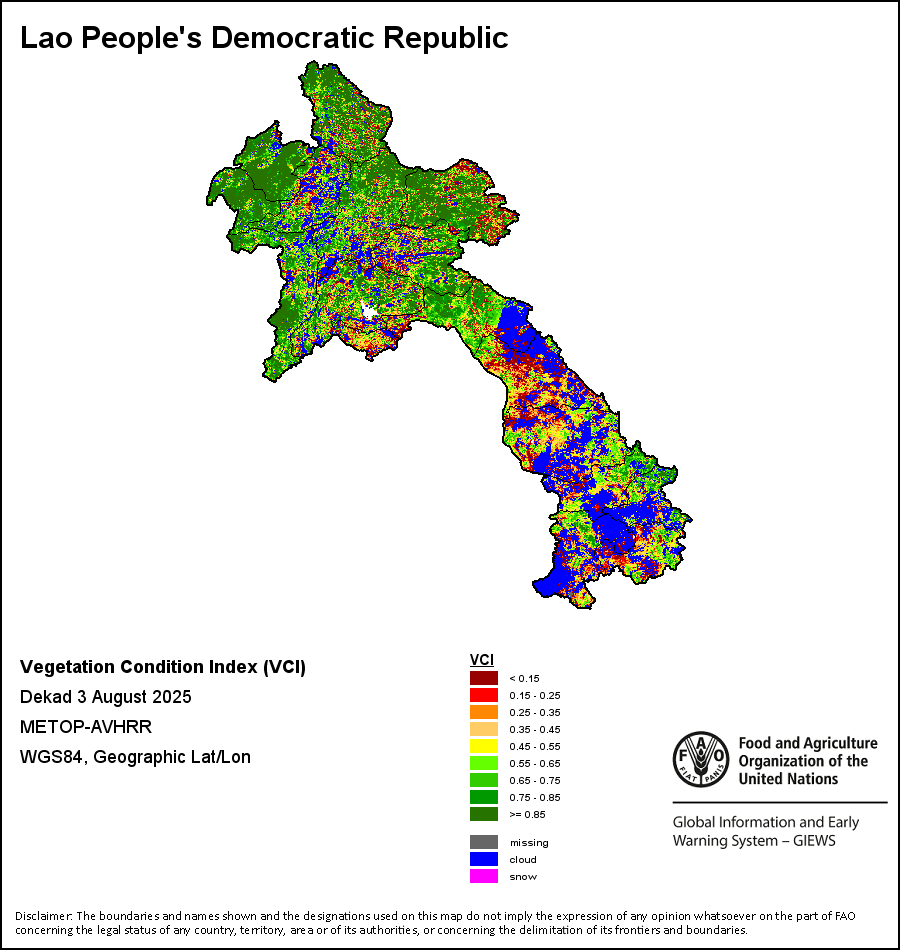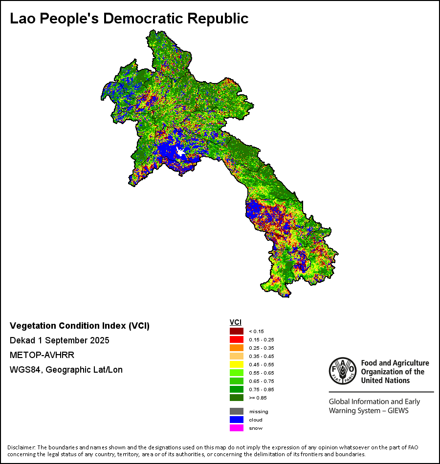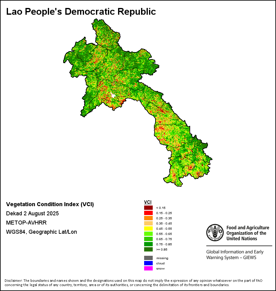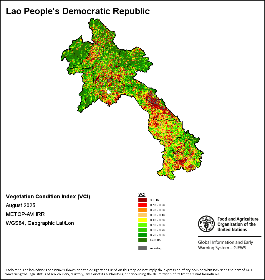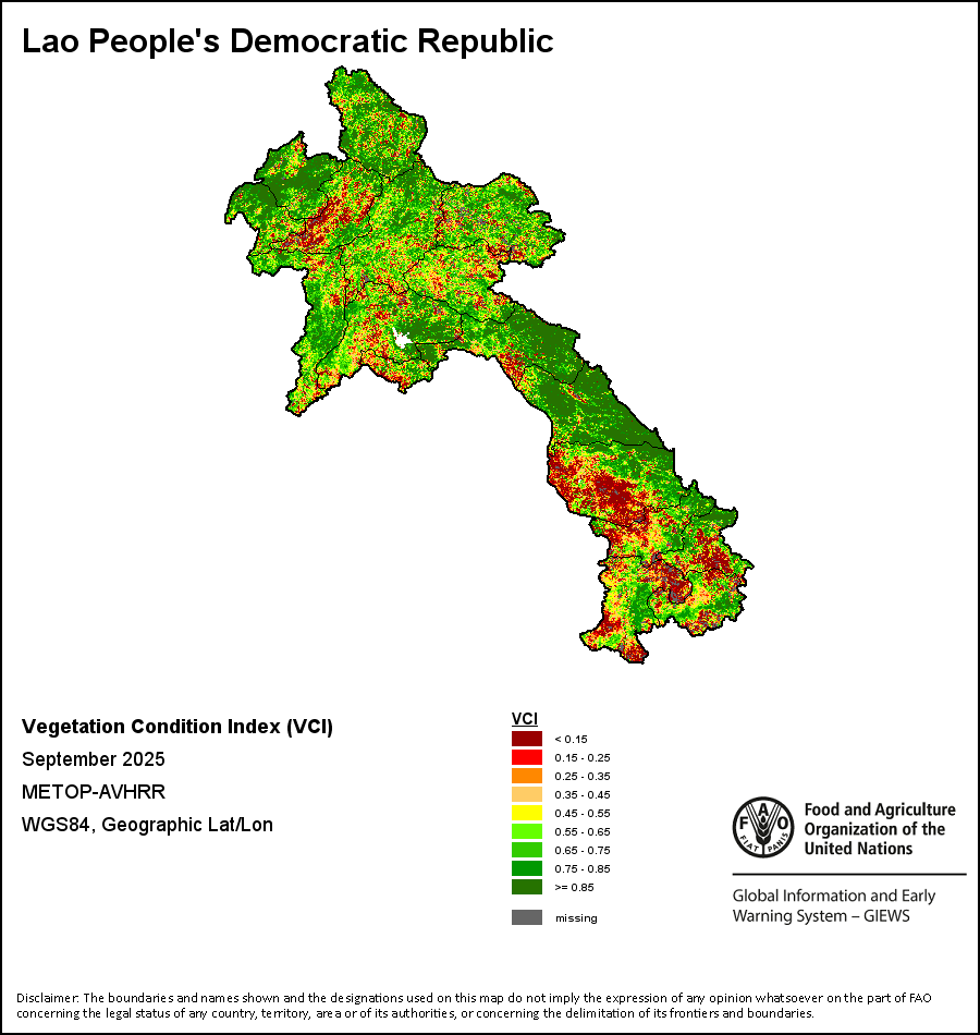 يقيس المؤشر الموحد لتباين الغطاء النباتي مستوى "خضرة" الغطاء النباتي ويُستخدم على نحوٍ غير مباشر للإشارة إلى كثافة النباتات وصحتها. وتتراوح قيم المؤشر الموحد من + 1 إلى -1، حيث تمثل القيم الإيجابية العالية نباتات كثيفة وسليمة، أما القيم المتدنية أو السالبة للمؤشر فتدل على حالة نباتات ضعيفة أو غطاء نباتي مبعثر. ويشير الشذوذ في المؤشر الموحد لتباين الغطاء النباتي إلى التباين ما بين فترة العشرة أيام الراهنة والمعدل طويل الأجل، حيث تدل القيمة الإيجابية (20 في المائة مثلاً) عن تحسن في حالة النباتات قياساً بالمعدل، بينما تدل القيمة السالبة (-40 في المائة مثلاً) على ضعف حالة النباتات نسبياً.