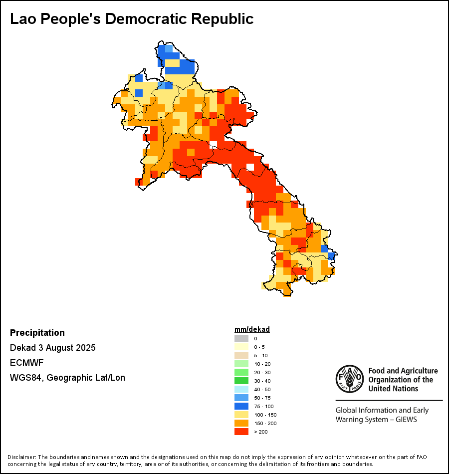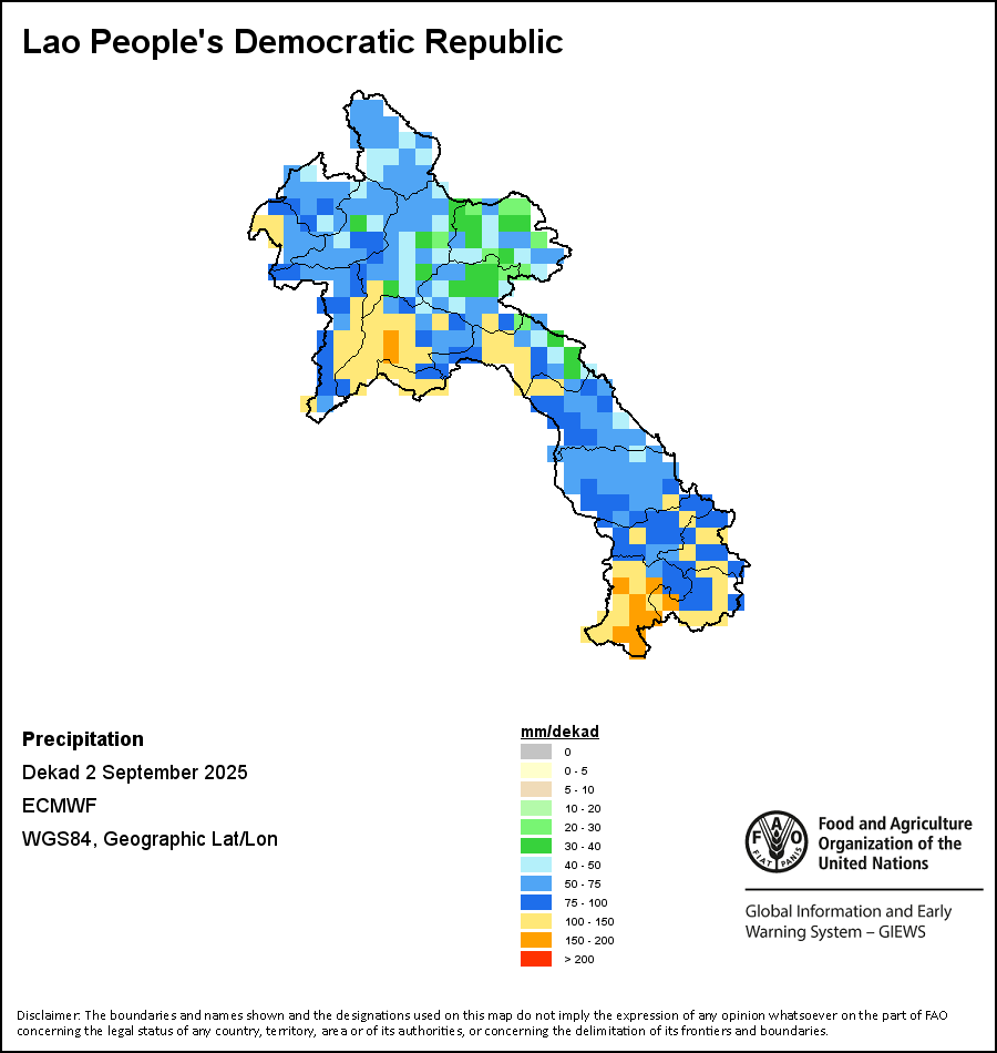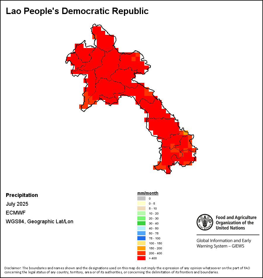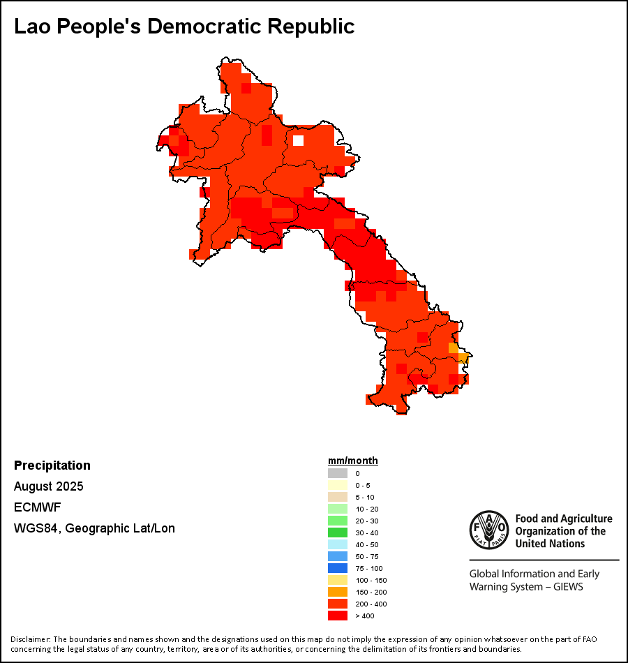 الهطولات المقدرة المتراكمة: متراكمة على المستوى الإداري الأول.