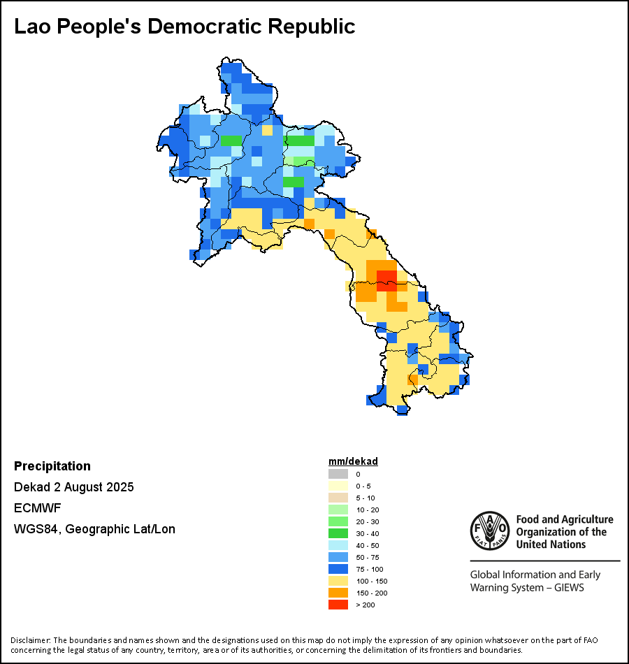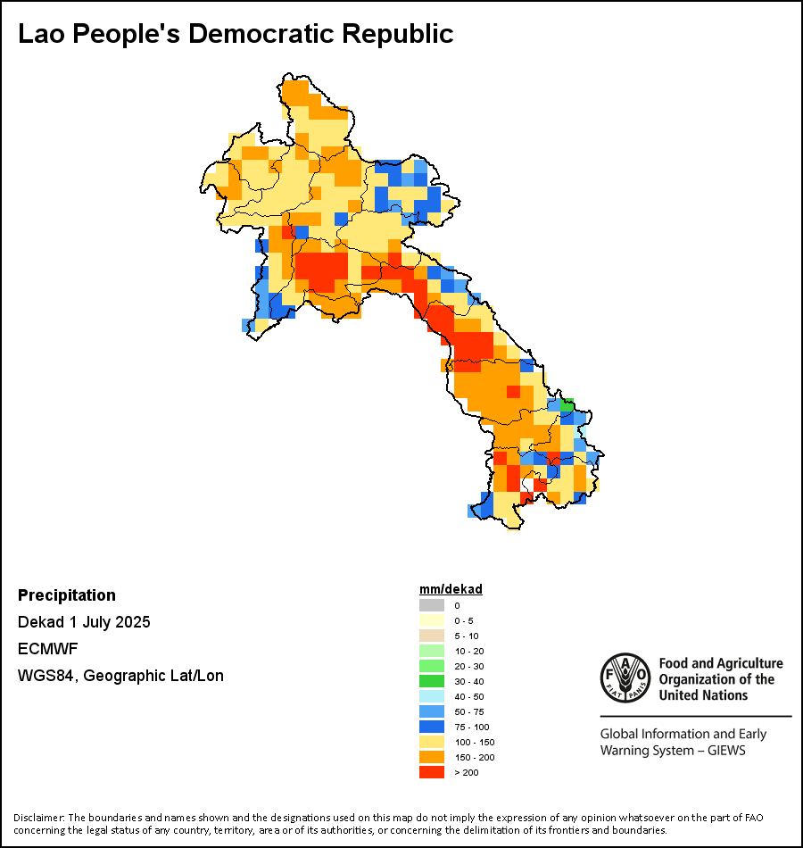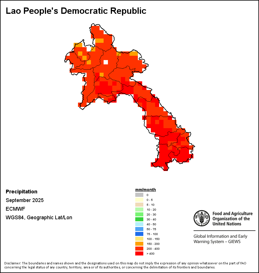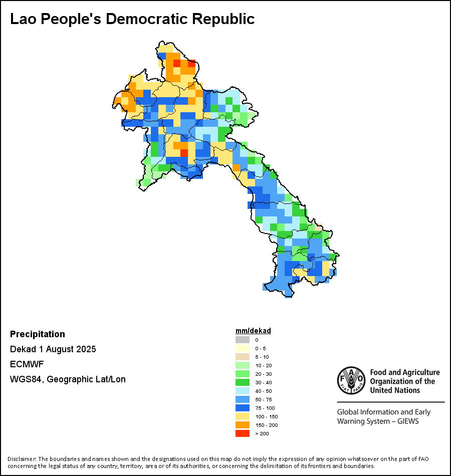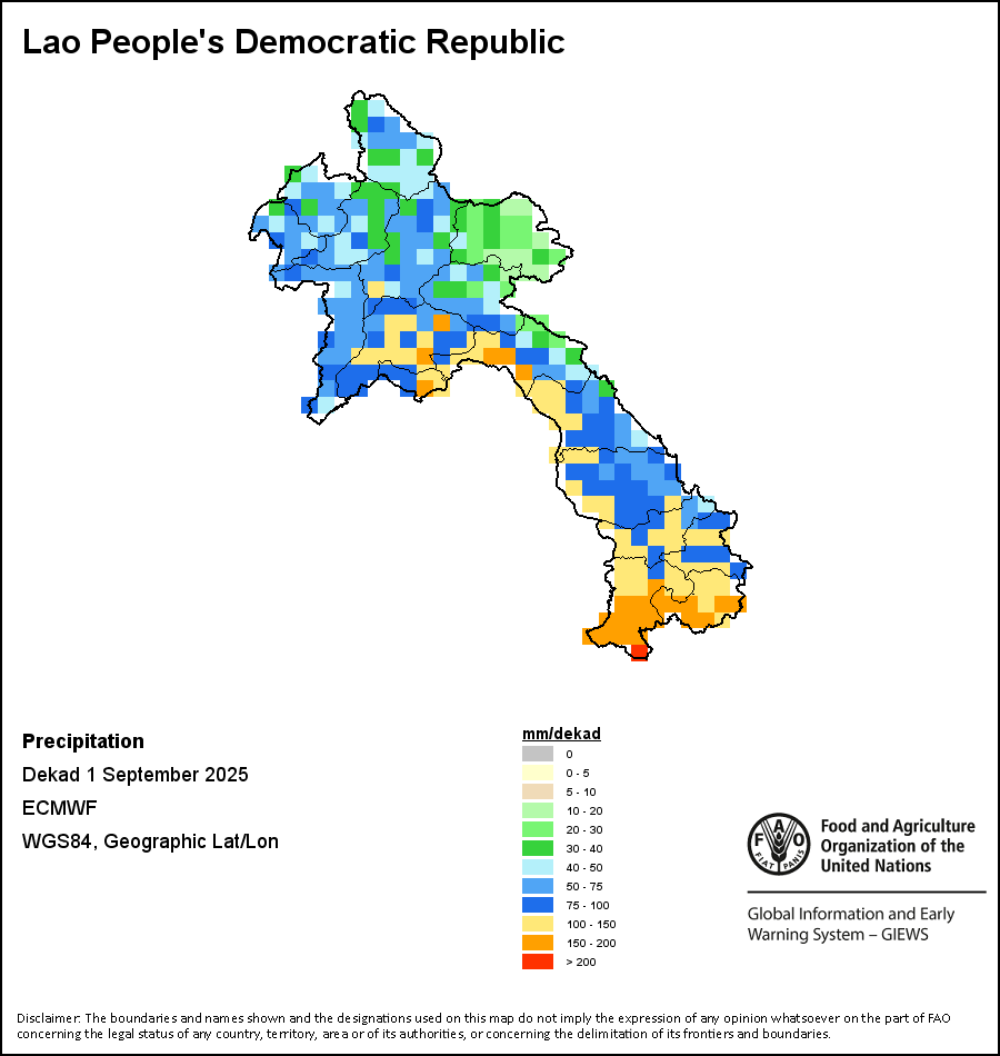 الهطولات المقدرة المتراكمة: متراكمة على المستوى الإداري الأول.