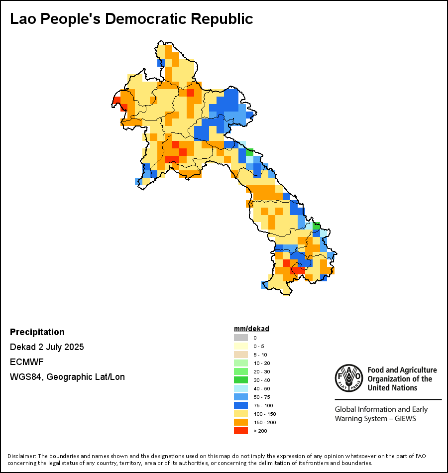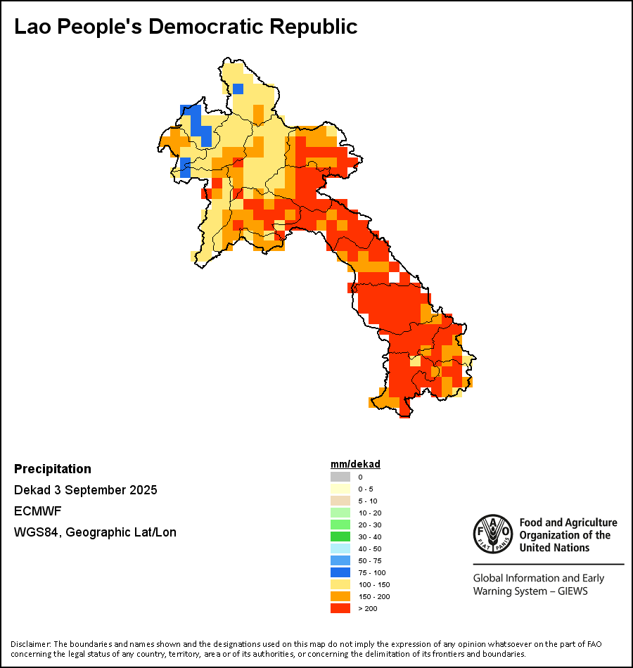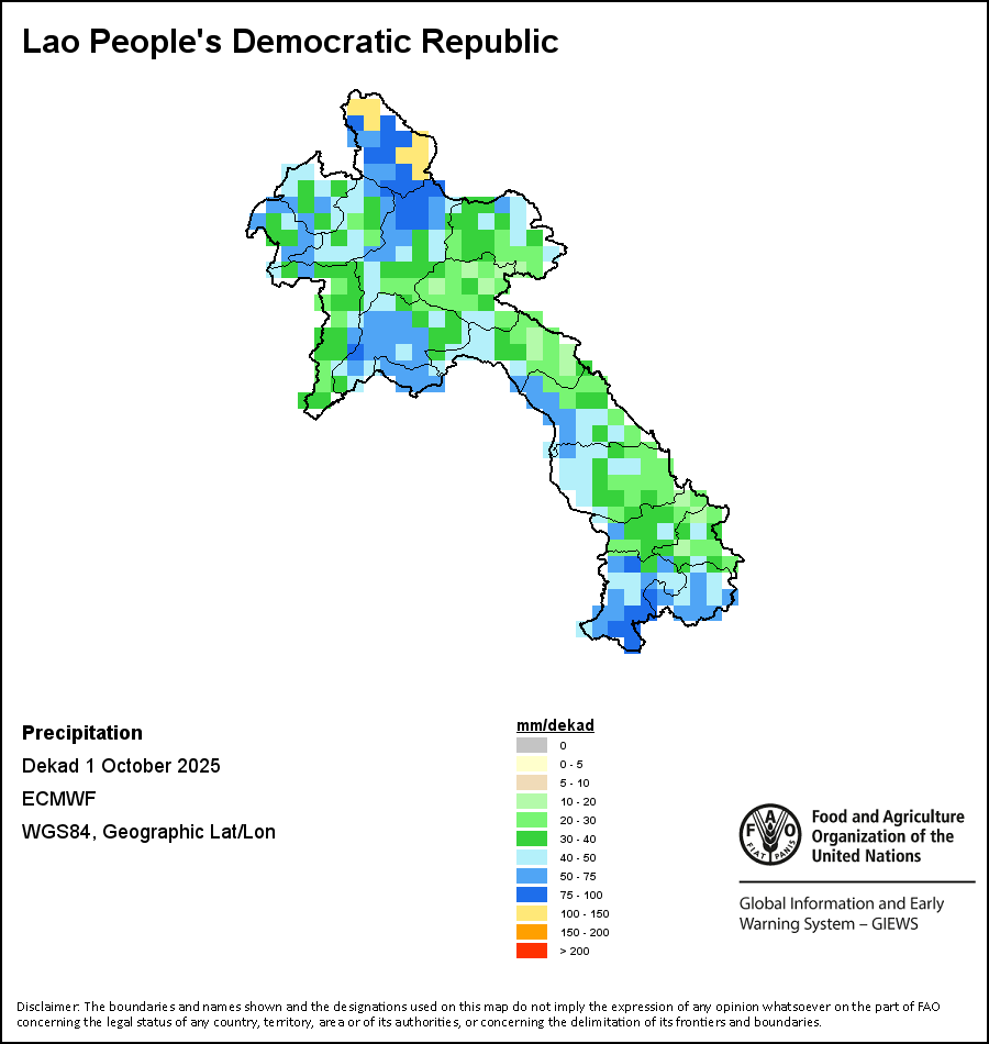 تصور الخريطة كميات الهطولات المطرية التراكمية خلال فترة عشرة أيام.