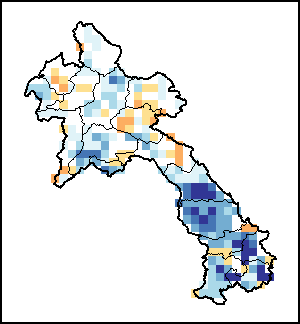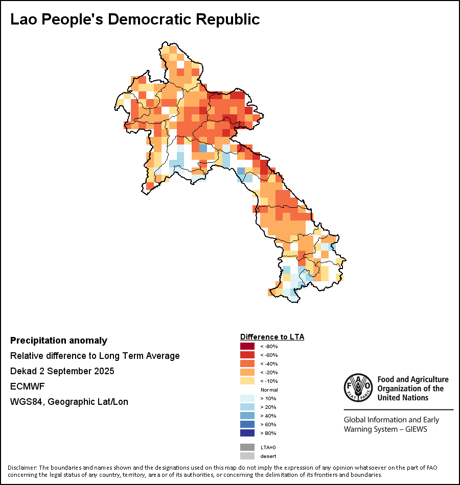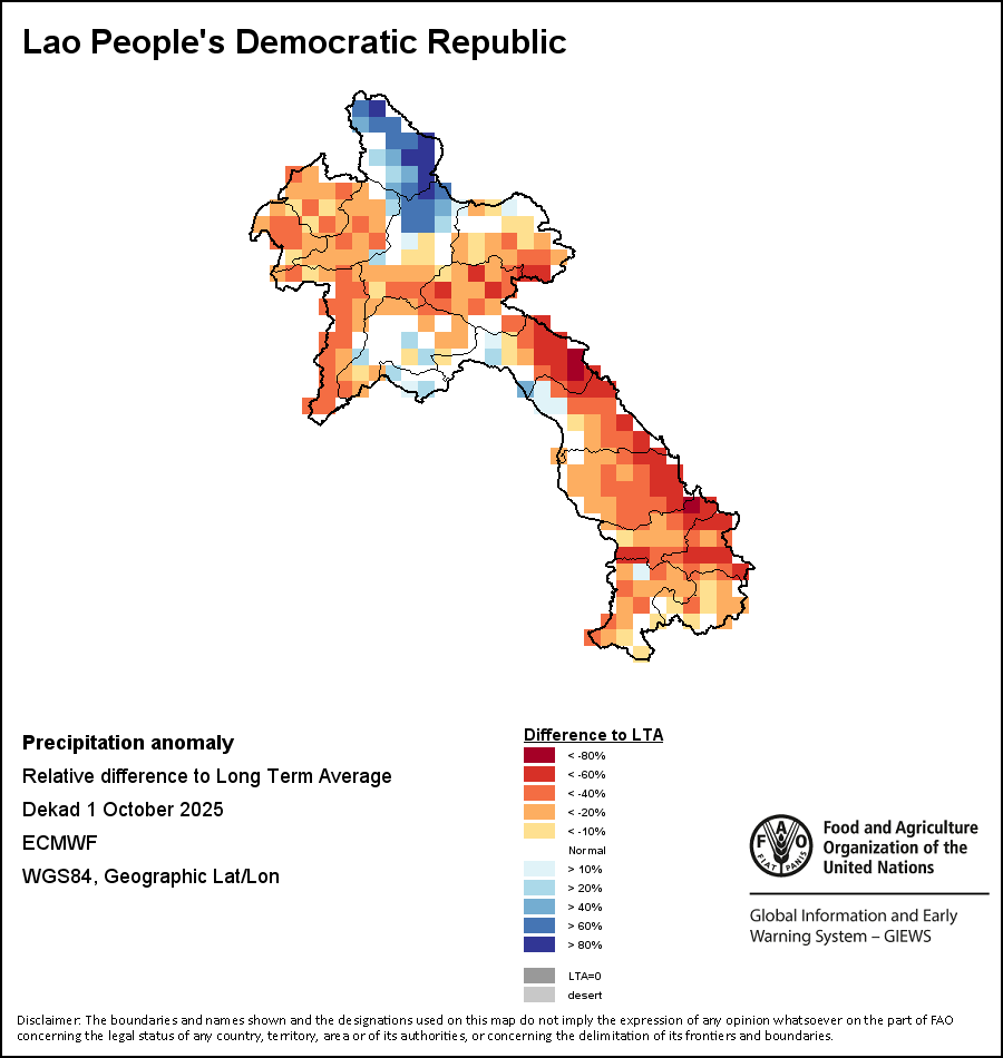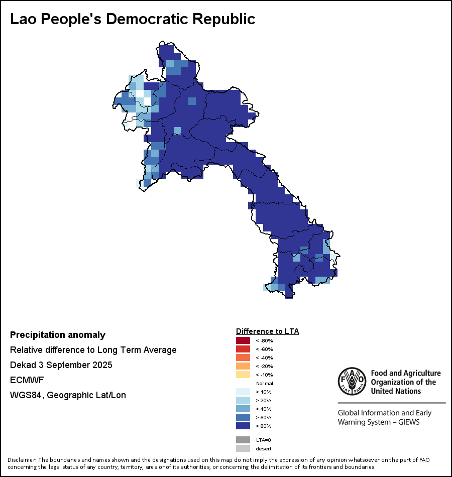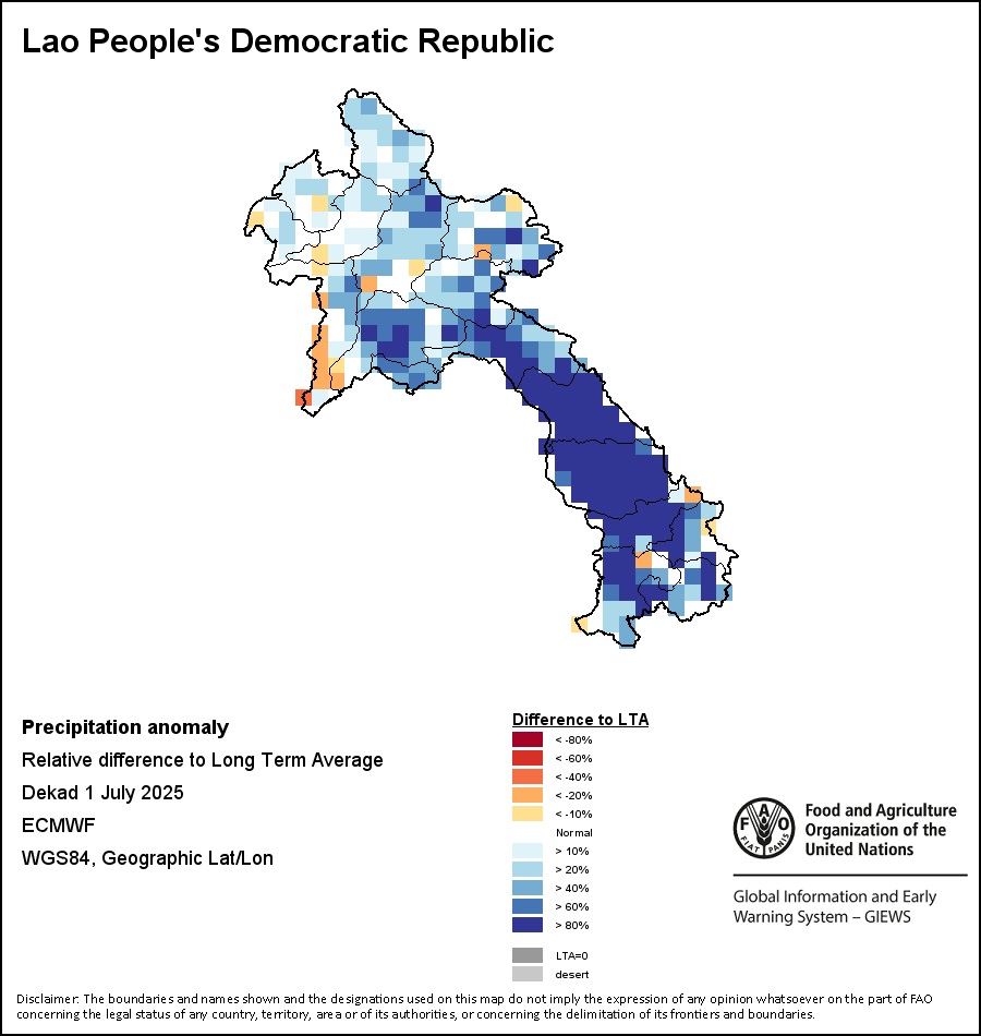 توضح الخريطة الاختلاف بين كمية الهطولات المطرية الراهنة ومعدلها. تقارَن مستويات الهطولات المطرية مع المعدل طويل الأجل الذي يشير إلى الفترة ما بين 1989-2015.