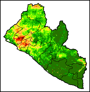 The Annual Weighted Mean Vegetation Health Index (Weighted Mean VHI) allows the user to assess the overall severity of drought for an entire growing season, examining the vegetation health and the influence of temperature on plant conditions. The Annual Weighted Mean VHI takes into account the sensitivity of a crop to water stress over its growing season, and calculates the temporal impact of moisture deficits and temperature over the complete growing season.