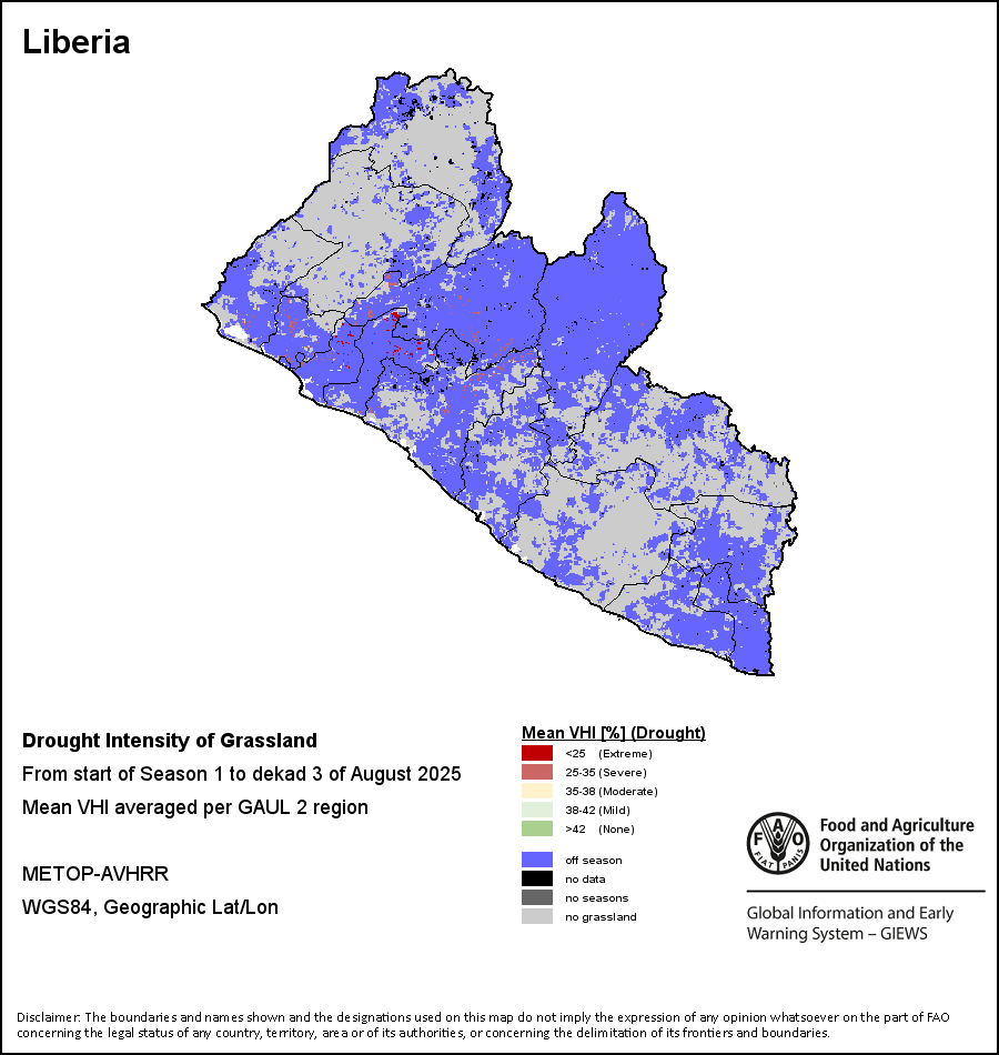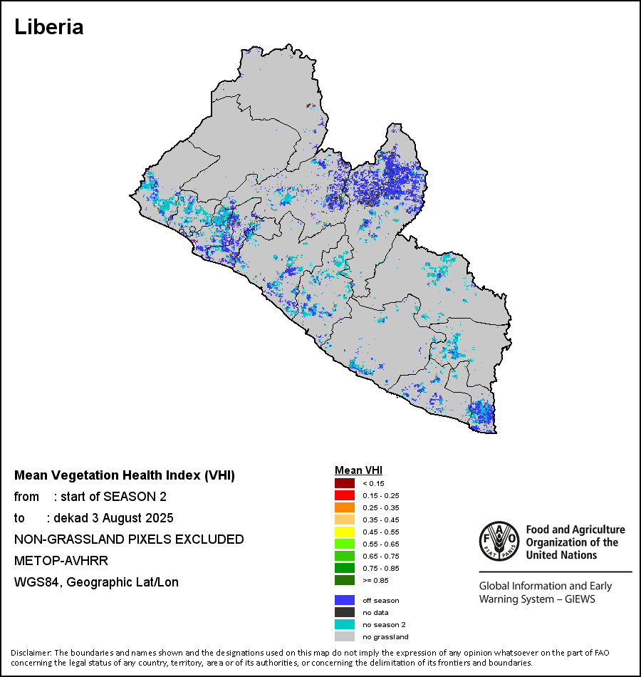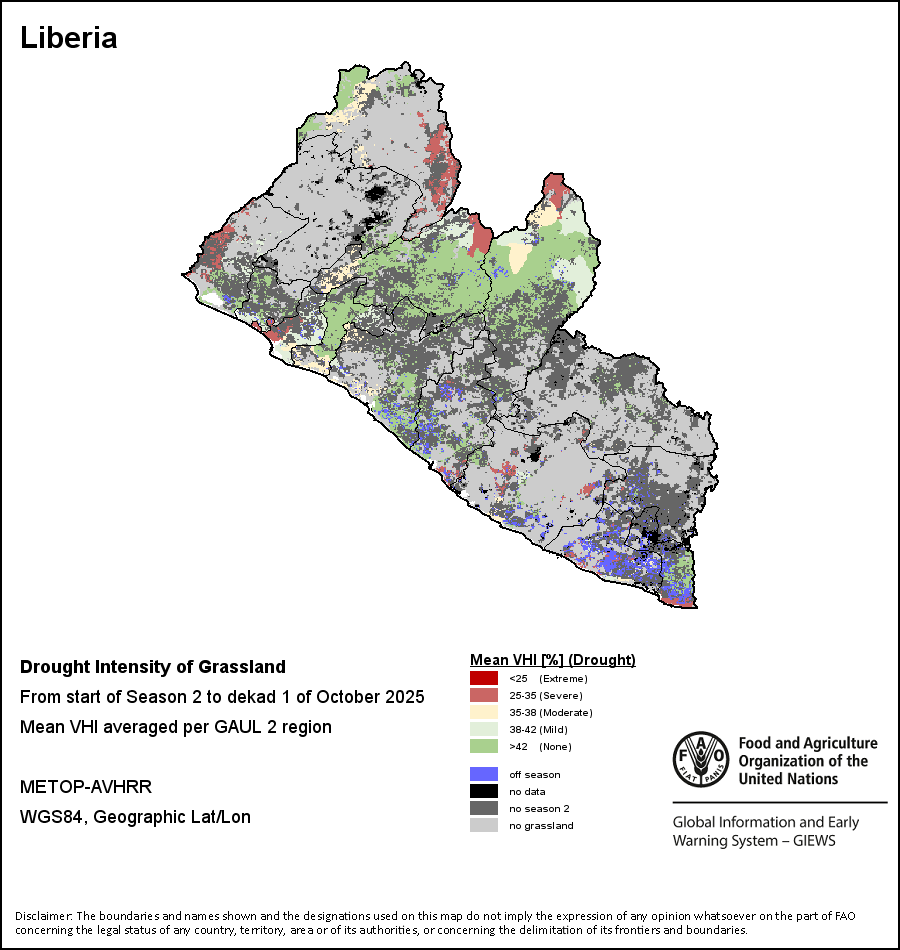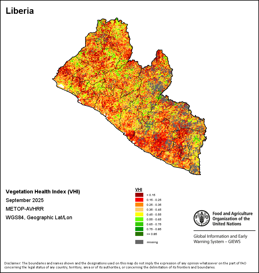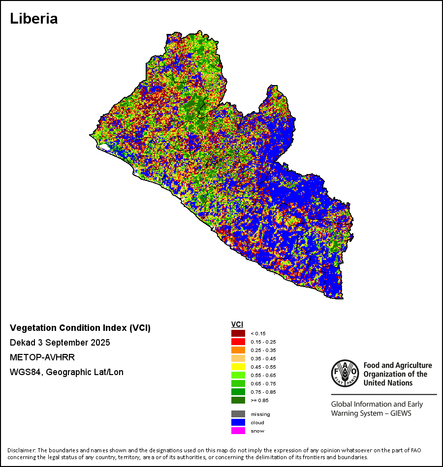 所有三项植被指标都是基于来自METOP-AVHRR遥感卫星分辨率1千米的10天(旬)植被数据(2007年及以后)得出的。1984-2006年期间的1千米分辨率数据得自NOAA-AVHRR16千米分辨率数据集。所有非洲国家的降水量估算(除佛得角和毛里求斯外)均取自NOAA/FEWSNet,其他国家则取自ECMWF。