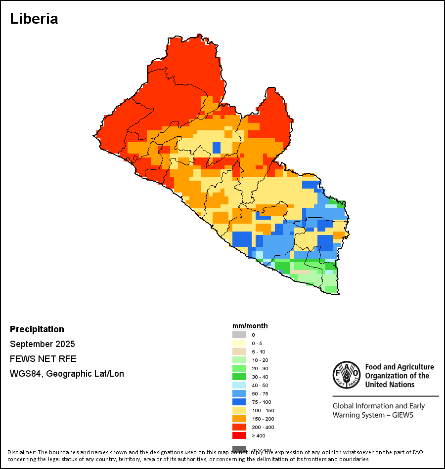 该图谱显示了每一旬(十天)的累积降水量。 所有非洲国家的降水量估算(除佛得角和毛里求斯外)均取自NOAA/FEWSNet,其他国家则取自ECMWF。
