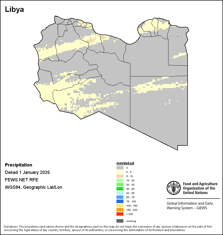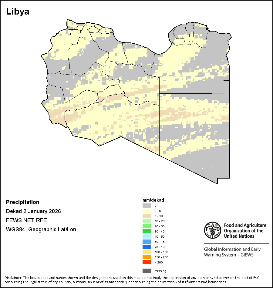 Los mapas y gráficos nacionales representan el último periodo de 36 meses de los indicadores estacionales, de vegetación y de precipitación. Los datos se presentan por periodos de 10 días y por meses. Los tres indicadores de vegetación se basan en datos de vegetación registrados cada diez días por el sensor METOP-AVHRR con una resolución de 1km (2007 y posterior). Los datos con una resolución de 1km del período 1984-2006 se extrapolaron a partir del conjunto de datos NOAA-AVHRR con 16km de resolución. Las estimaciones de precipitación de todos los países africanos (excepto Cabo Verde y Mauricio) se obtienen de NOAA/FEWSNet (16km de resolución), mientras que para los restantes países los datos se obtienen Centro Europeo de Predicción Meteorológica a Plazo Medio (ECMWF siglas en Inglés, 25km de resolución). Debido a la mayor resolución de los indicadores de vegetación (p.ej., NDVI, VHI) en comparación con los indicadores de precipitación de resolución más gruesa, el número de unidades subnacionales para las que se pueden generar estadísticas zonales válidas para los índices de vegetación es mayor que el número de unidades para los indicadores de precipitación en algunos países.