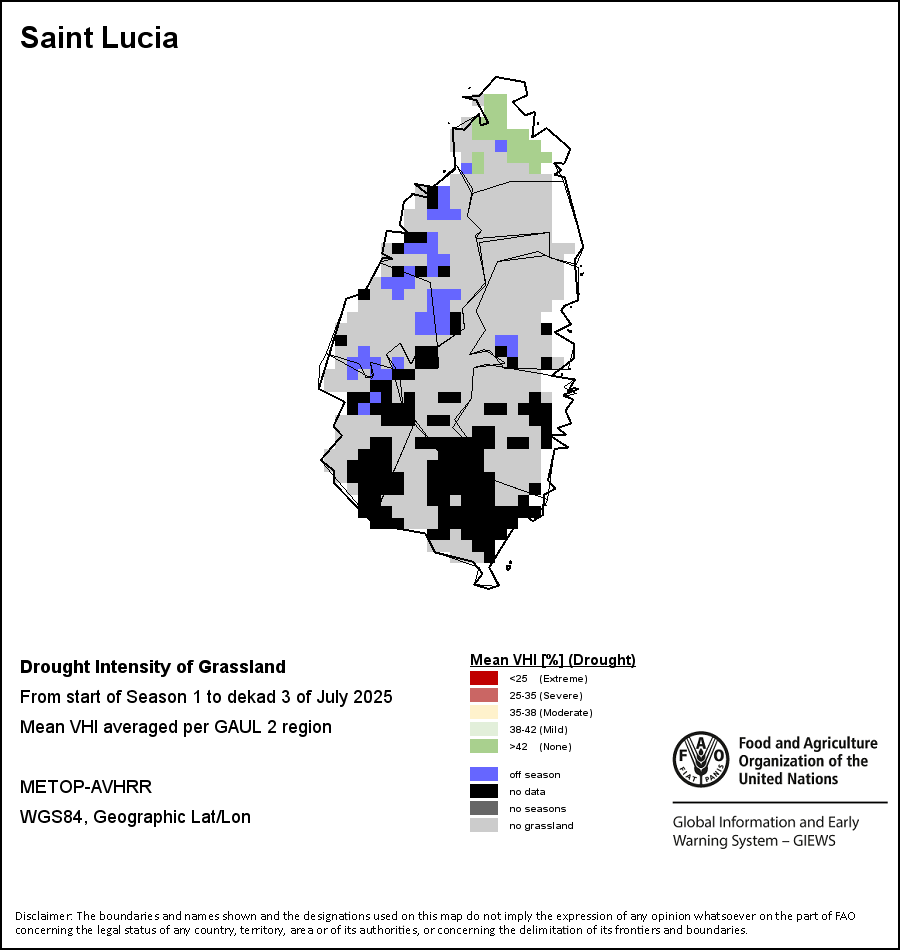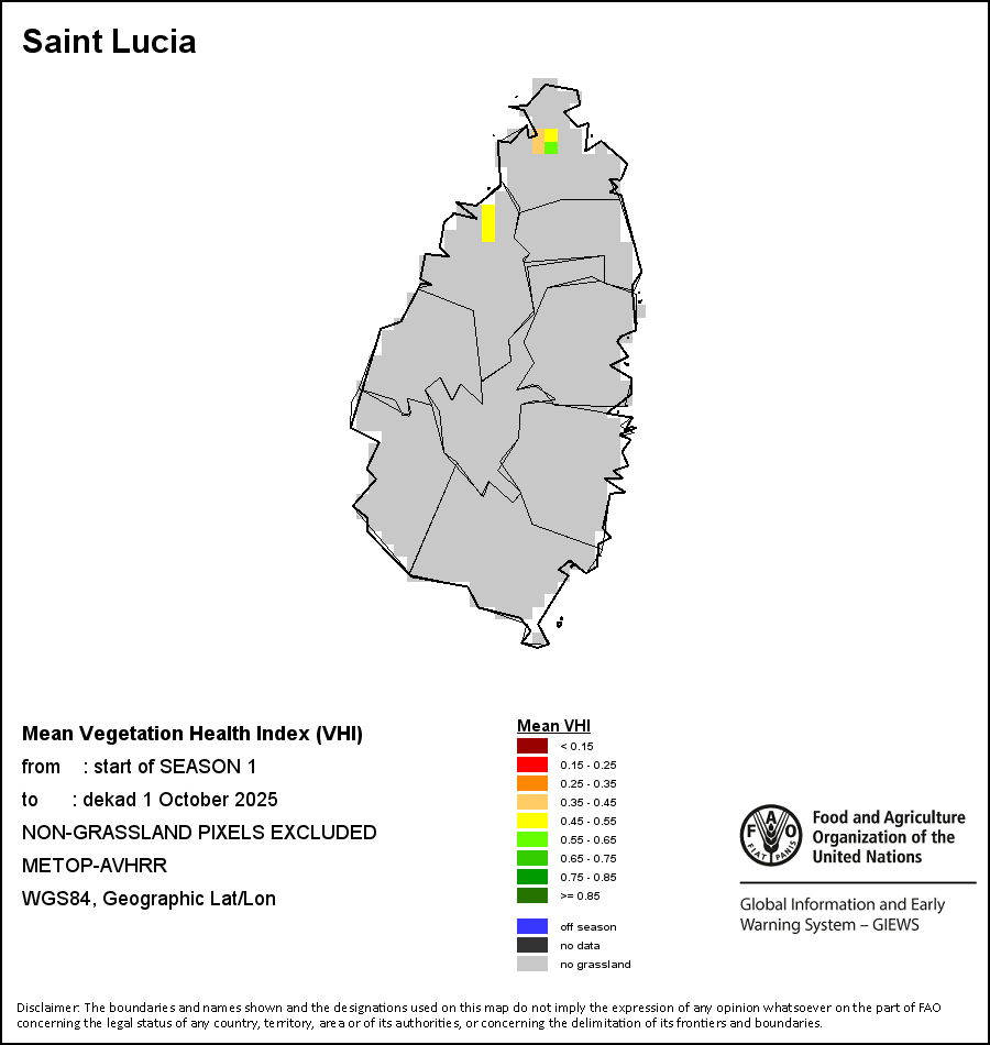 The country level maps and graphs depict the latest 36-month period of the seasonal, vegetation and precipitation indicators. The data is presented by dekad and month.   More