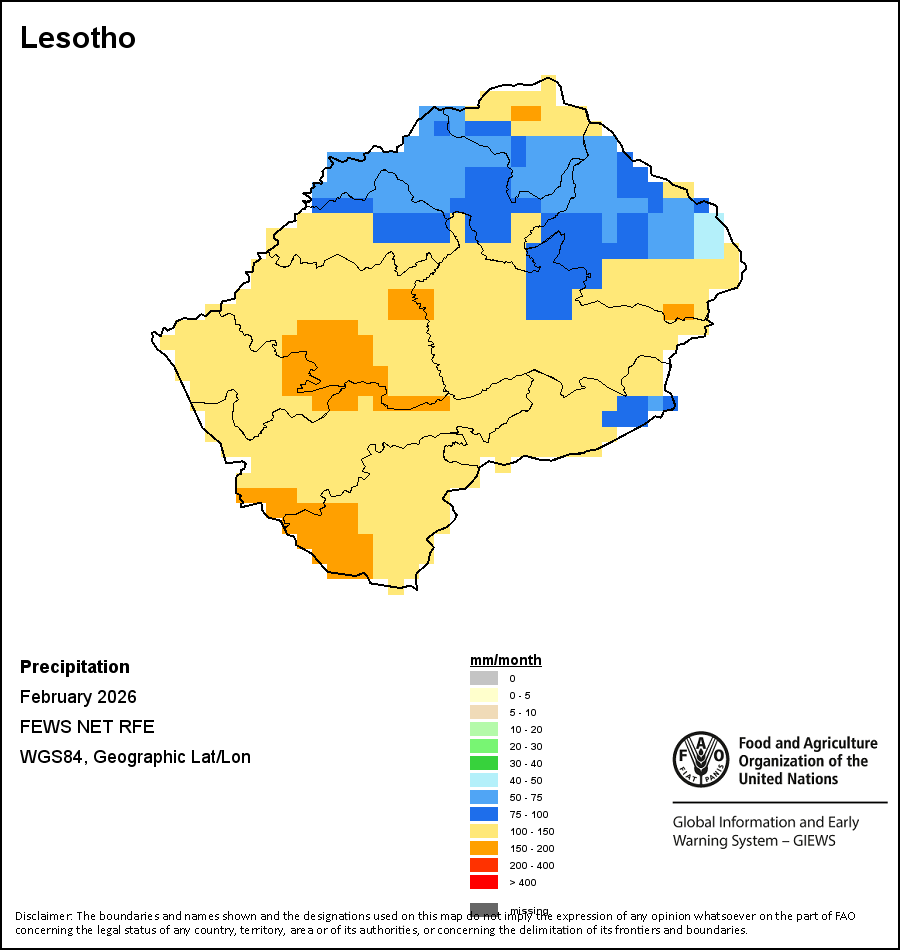 Les cartes et les graphiques au niveau des pays illustrent les indicateurs d’avancement de la campagne, de végétation et de pluviométrie au cours des 36 derniers mois. Les données sont présentées par décade et par mois. Les trois indicateurs de végétation sont basés sur les données relatives à la végétation pour 10 jours (décade) du capteur Metop-AVHRR par pixel de 1 km (à partir de 2007). Les données à 1 km de résolution pour la période 1984-2006 ont été dérivées des données du NOAA-AVHRR à 16 km de résolution. - Les estimations concernant les précipitations pour tous les pays africains (à l'exception du Cap Vert et de Maurice) proviennent du NOAA/FEWSNet, tandis que les données concernant les autres pays sont obtenues à partir du CEPMMT. Compte tenu de la résolution plus élevée des indicateurs de végétation (ex. NDVI, VHI) par rapport à celle des indicateurs de précipitations, plus grossiers, le nombre d’unités infranationales pour lesquelles des statistiques zonales valides peuvent être produites à partir des indices de végétation est, dans certains pays, supérieur à celui obtenu à partir des indicateurs de précipitations.