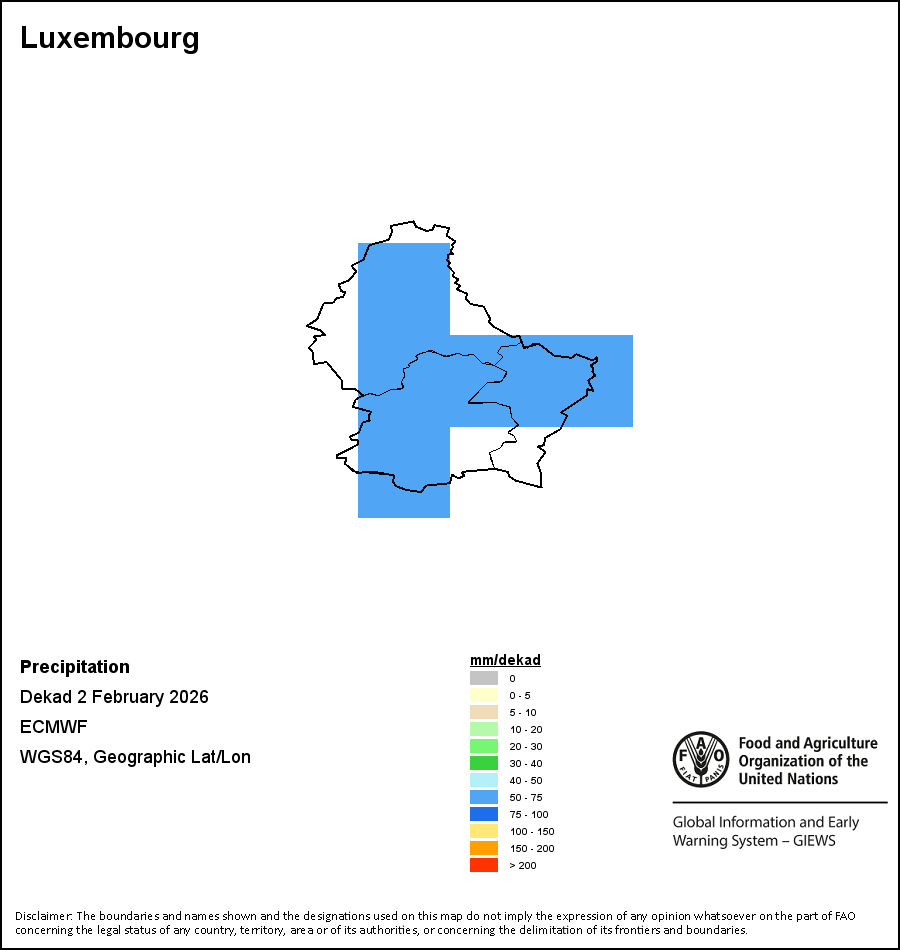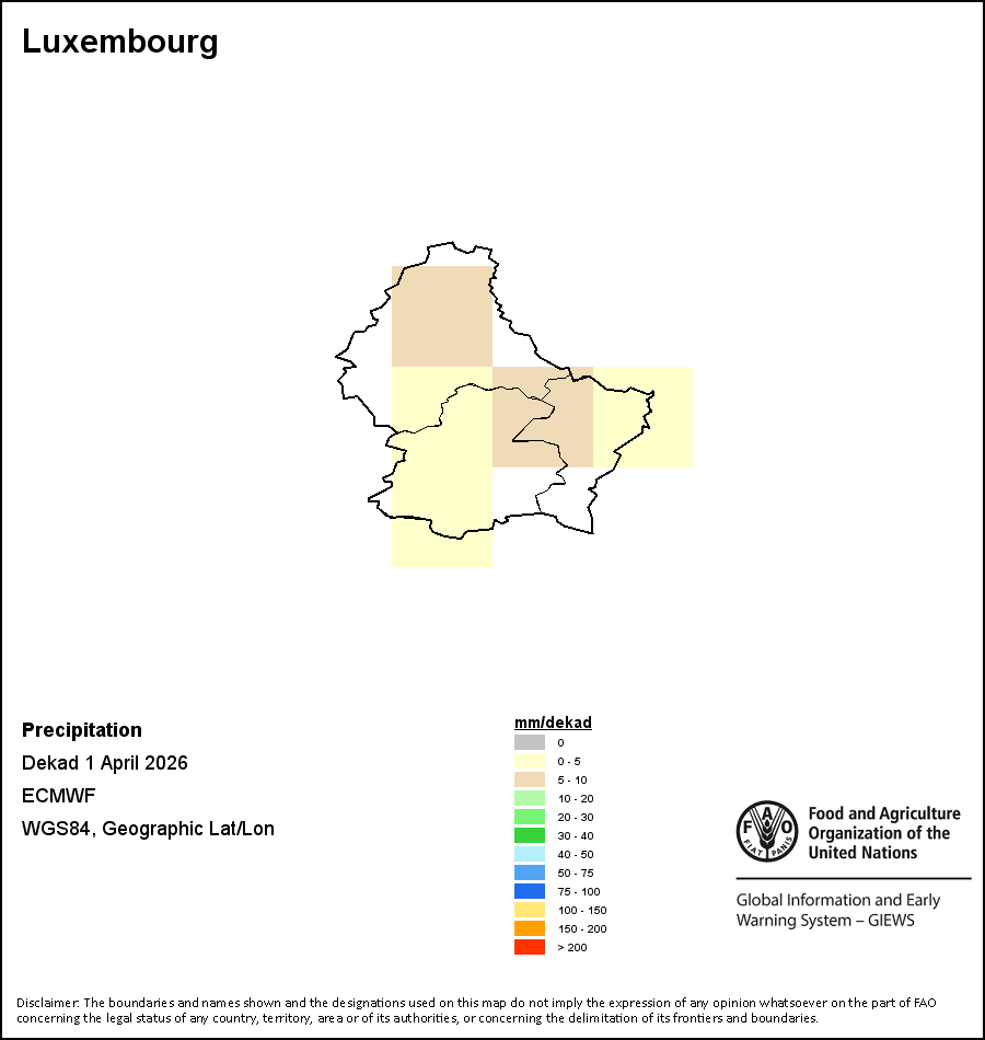 الهطولات المقدرة المتراكمة: متراكمة على المستوى الإداري الأول.