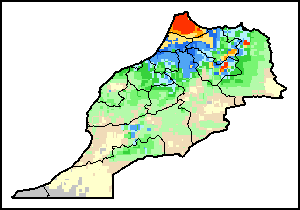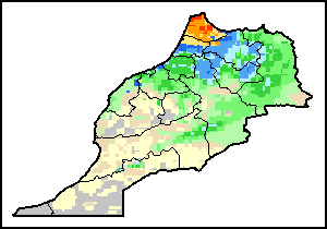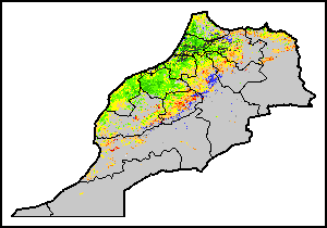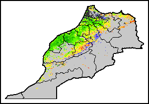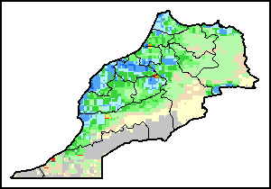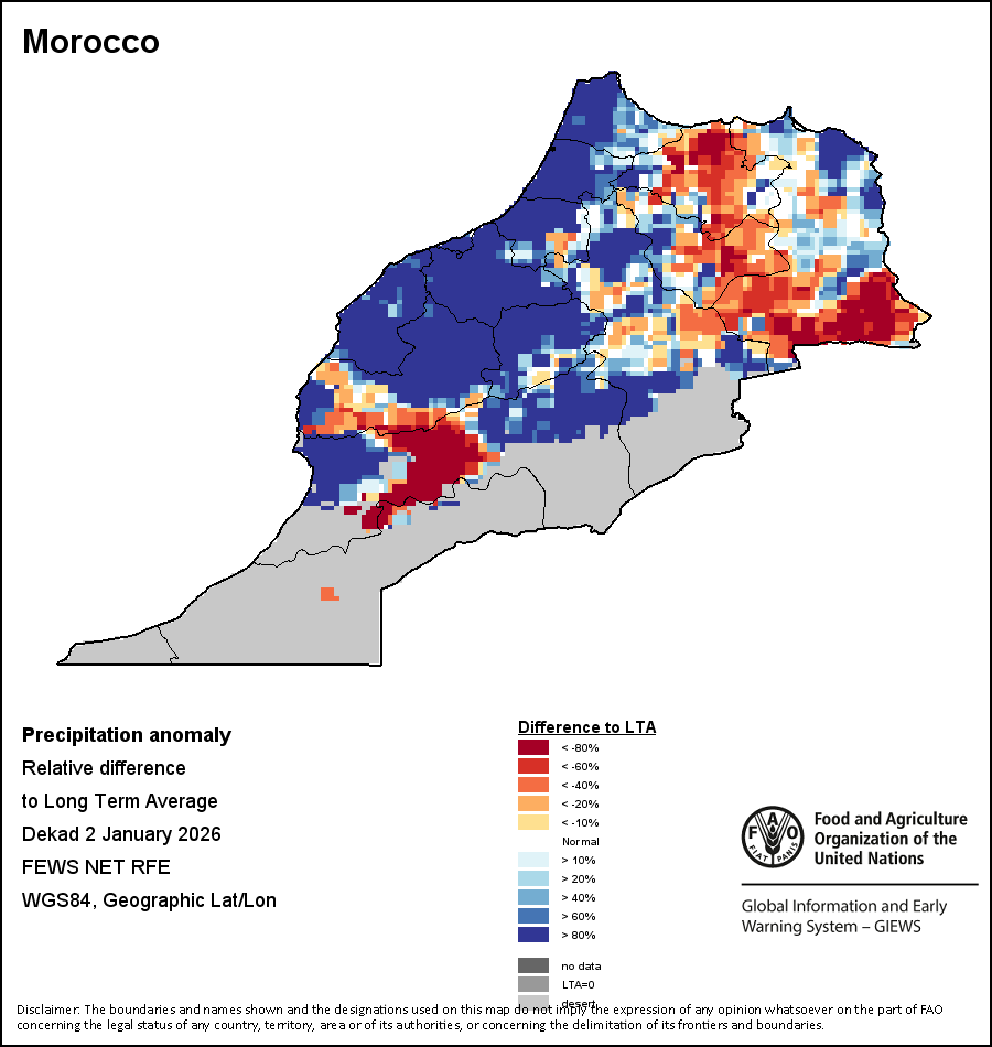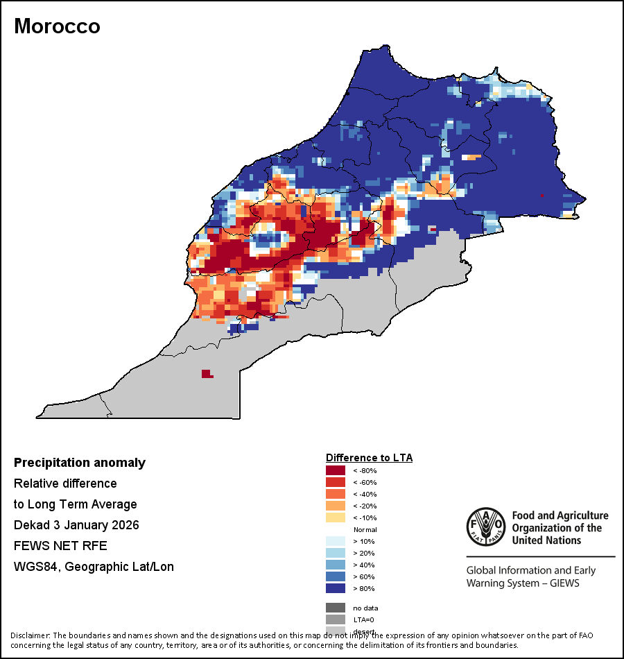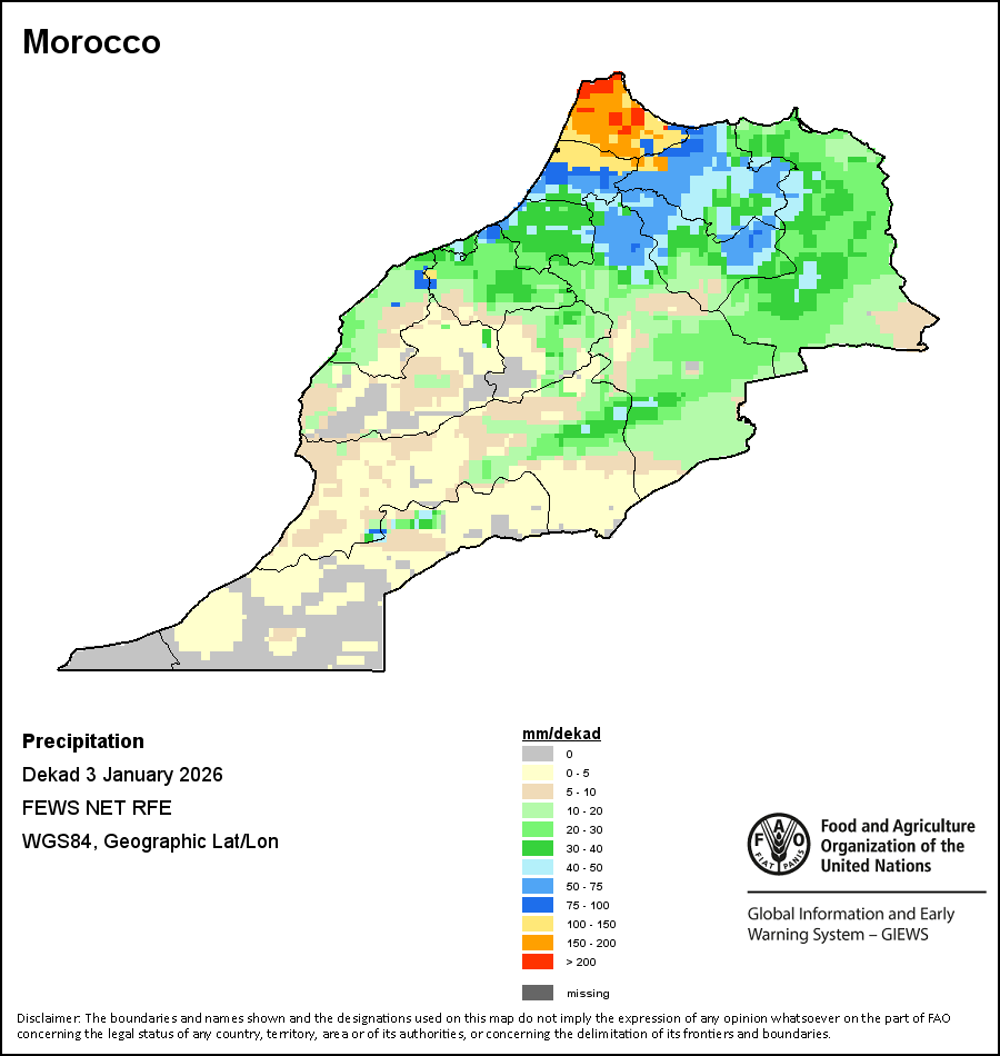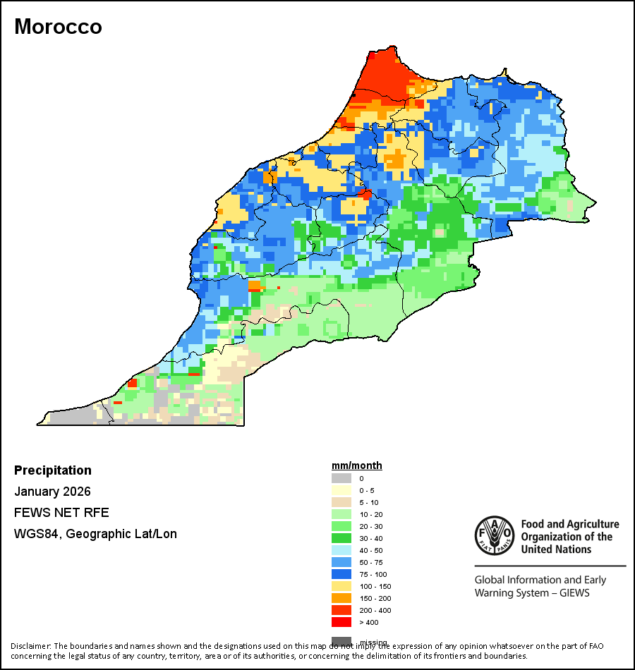 На картах и графиках на уровне страны показывается последний период в 36 месяцев по сезонным показателям, показателям растительного покрова и уровня атмосферных осадков. Данные представляются по 10-дневным периодам и по месяцам. Все три показателя растительного покрова основаны на 10-дневных данных по растительному покрову, полученных от сенсора METOR-AVHRR при разрешении в 1 км (начиная с 2007 года). Данные при разрешении в 1 км за период 1984-2006 гг. были получены из банка данных NOAA-AVHRR при разрешении в 16 км. Оценки атмосферных осадков для всех африканских стран (за исключением Кабо-Верде и Маврикия) получены из системы NOAA/Системы раннего предупреждения об опасности голода (разрешении в 16 km), а по остальным странам данные получены из системы ECMWF (разрешении в 25 km). Благодаря более высокой разрешающей способности показателей состояния растительного покрова (например, NDVI, VHI) по сравнению с показателями осадков, у некоторых стран количество субнациональных единиц, для которых можно получить действительную статистику по данным показателям, больше, чем по показателям осадков.