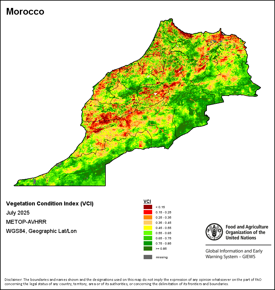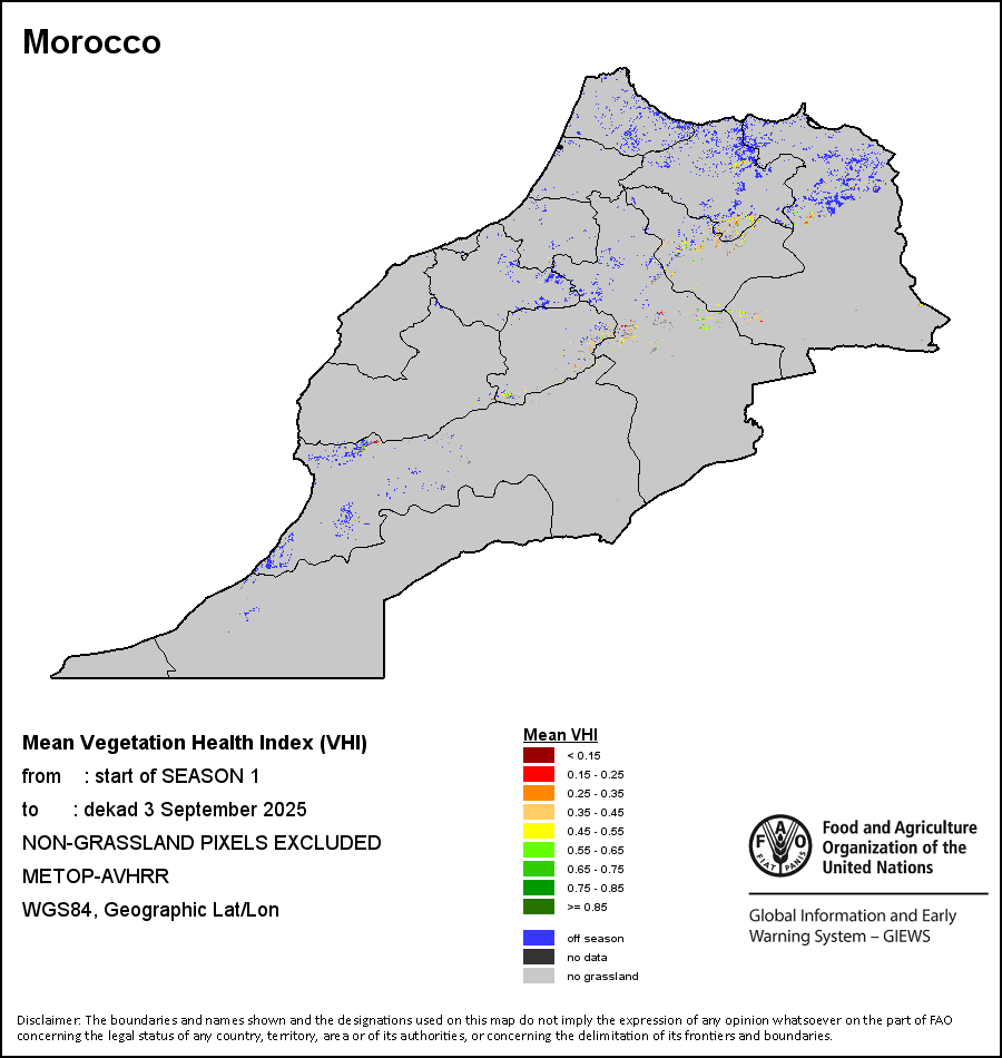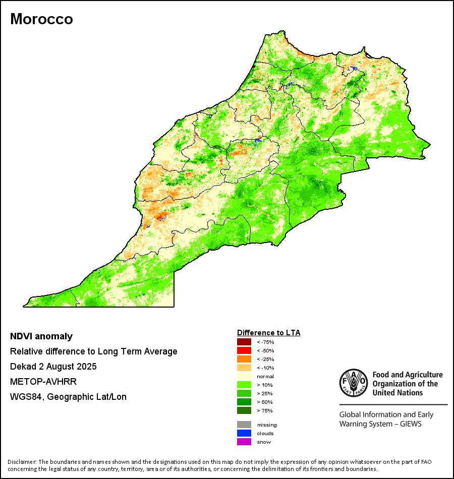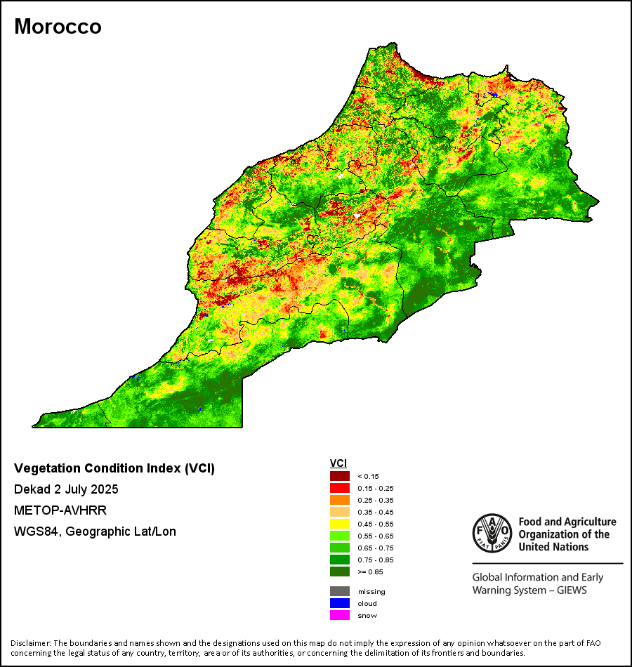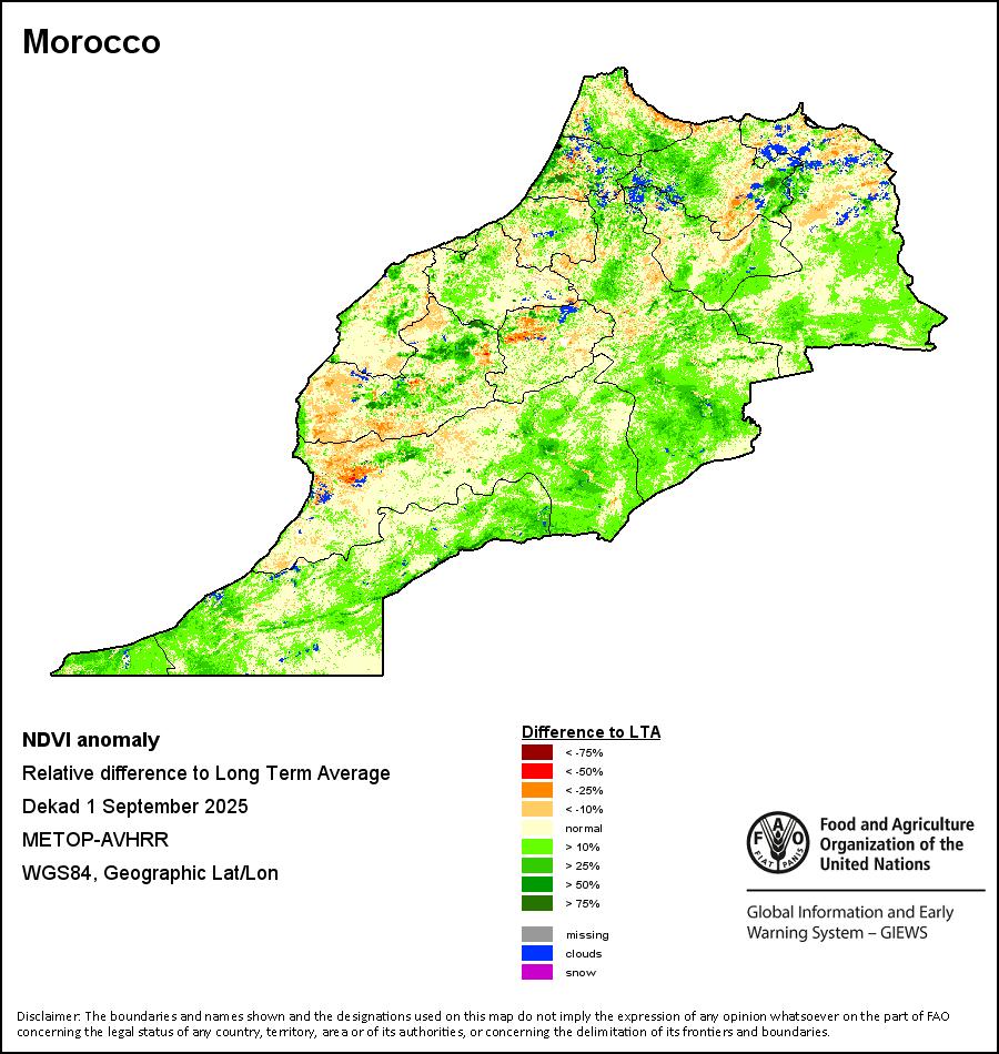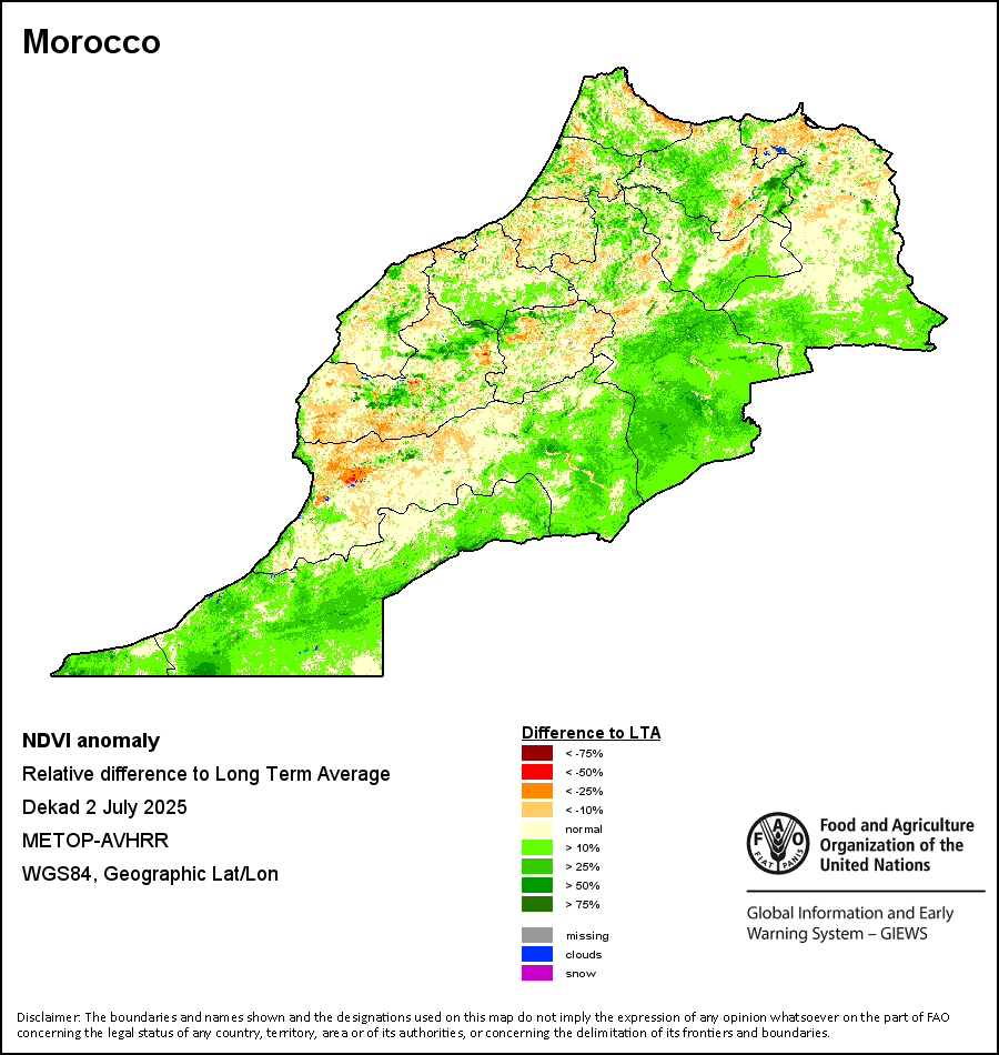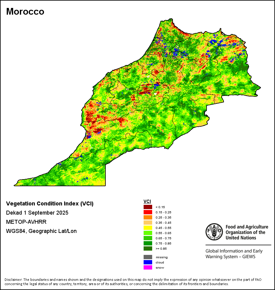 所有三项植被指标都是基于来自METOP-AVHRR遥感卫星分辨率1千米的10天(旬)植被数据(2007年及以后)得出的。1984-2006年期间的1千米分辨率数据得自NOAA-AVHRR16千米分辨率数据集。所有非洲国家的降水量估算(除佛得角和毛里求斯外)均取自NOAA/FEWSNet,其他国家则取自ECMWF。