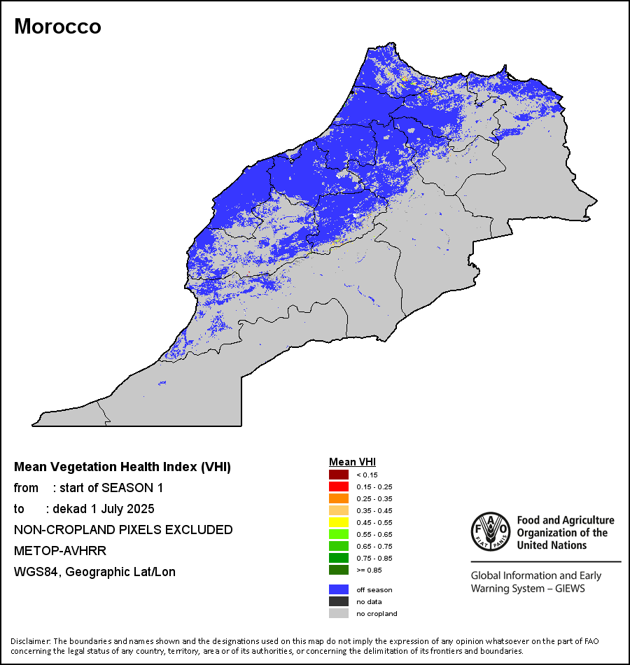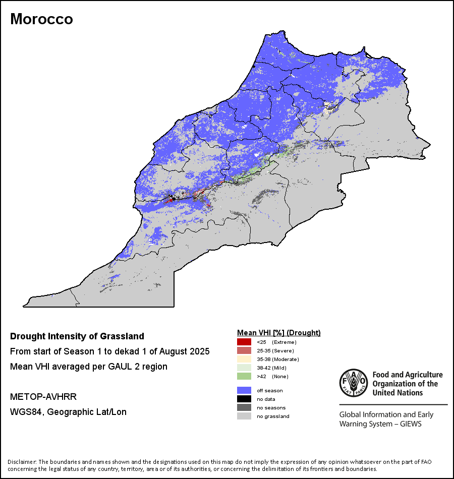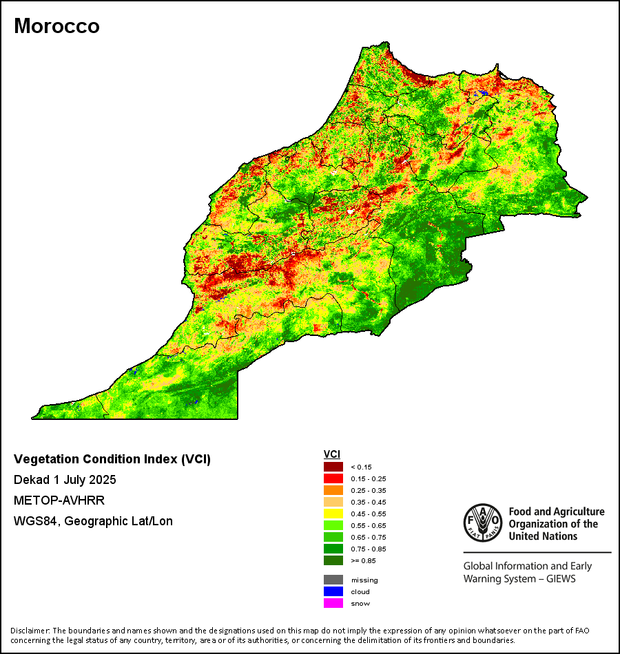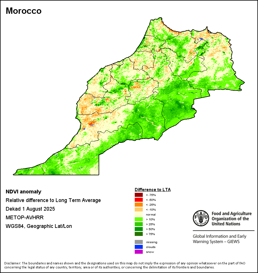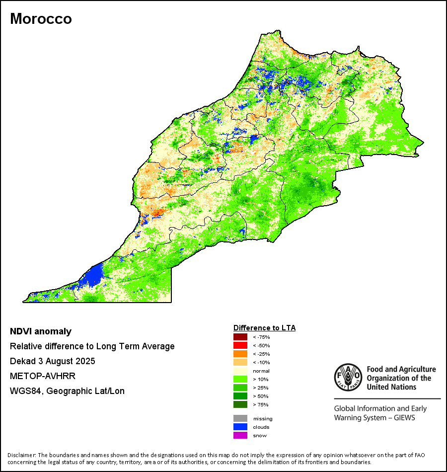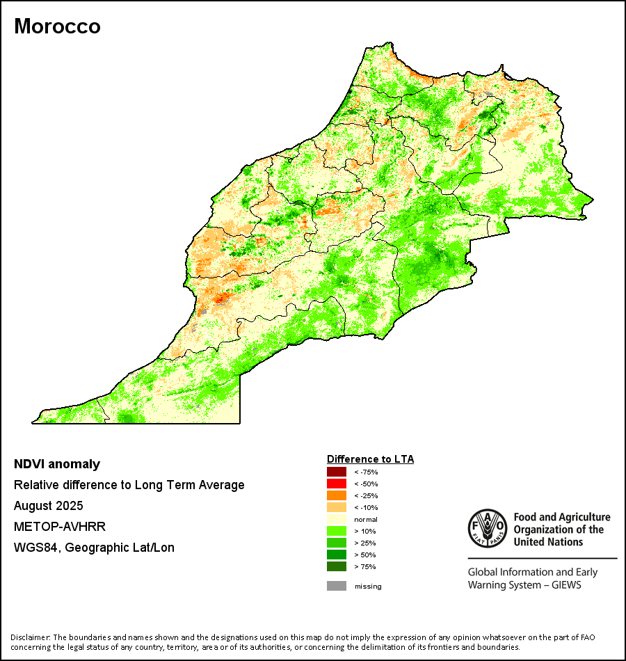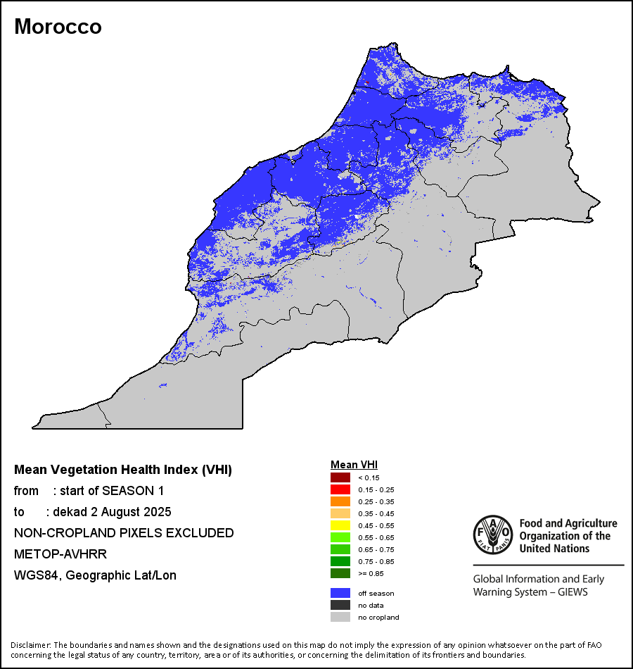 所有三项植被指标都是基于来自METOP-AVHRR遥感卫星分辨率1千米的10天(旬)植被数据(2007年及以后)得出的。1984-2006年期间的1千米分辨率数据得自NOAA-AVHRR16千米分辨率数据集。所有非洲国家的降水量估算(除佛得角和毛里求斯外)均取自NOAA/FEWSNet,其他国家则取自ECMWF。