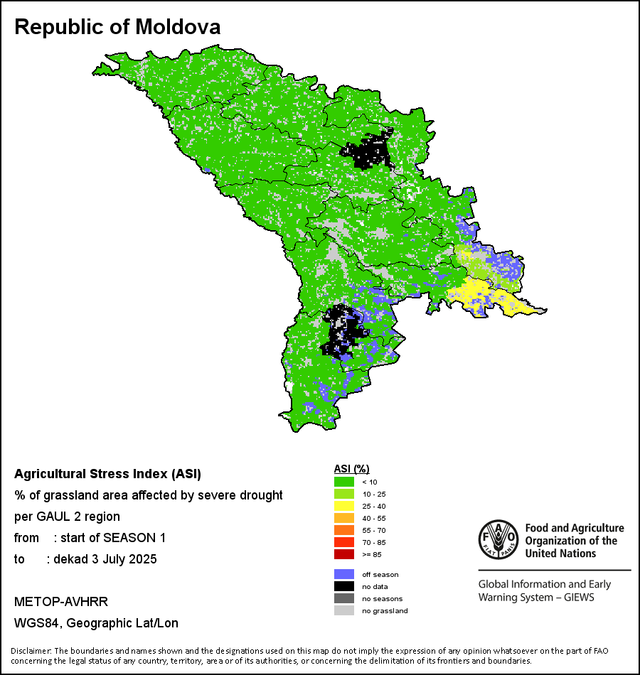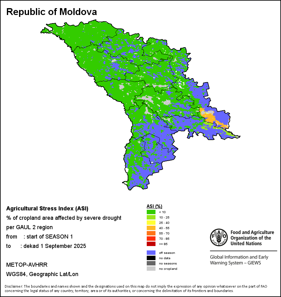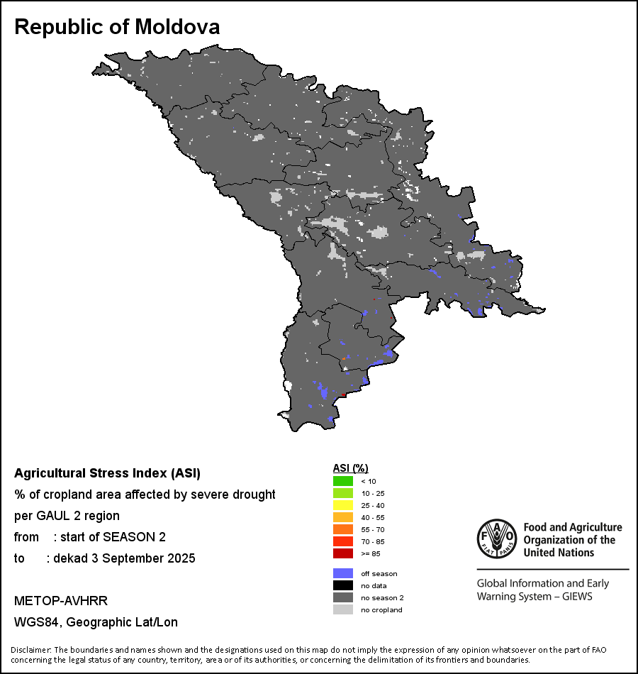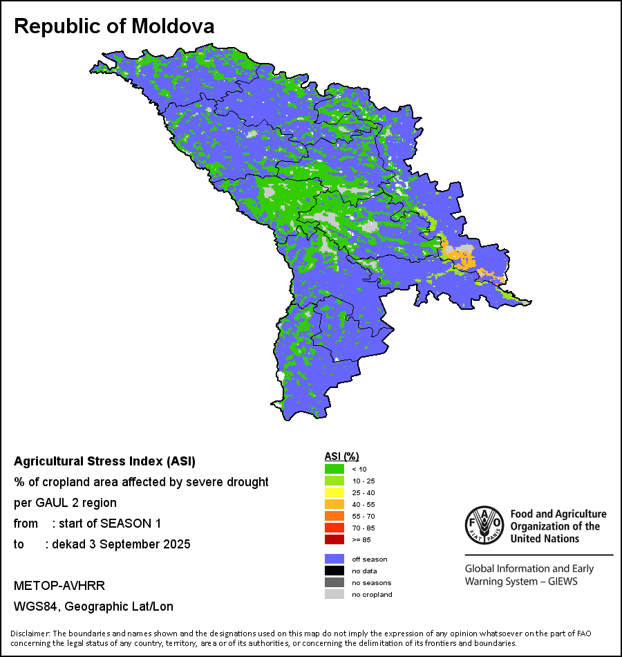 يصور مؤشر الإجهاد الزراعي السنوي النسبة المئوية من الأراضي الزراعية المتأثرة بالجفاف على امتداد الموسم الزراعي بأكمله ضمن منطقة إدارية ما. ويختلف هذا المؤشر السنوي عن مؤشر الإجهاد الزراعي الذي يعتمد على أحوال الجفاف منذ بداية الموسم وحتى فترة العشرة أيام الراهنة.