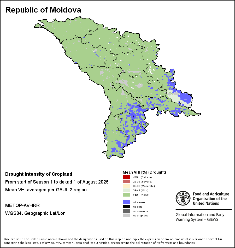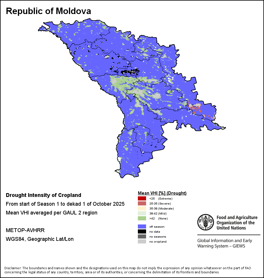 تصنف موجات الجفاف الزراعي تبعاً لشدتها وتقسم إلى أربعة مستويات: متطرفة أو شديدة أو متوسطة، أو خفيفة. وتحسب شدة الجفاف من خلال متوسط المؤشر المرجح لصحة النبات، الذي يشير إلى أنه كلما تردت الصحة النباتية أكثر كان الجفاف أشد. أما الملخص السنوي لشدة الجفاف فيعطي المستخدم إمكانية تقييم إجمالي شدة الجفاف على امتداد الموسم الزراعي بأكمله.