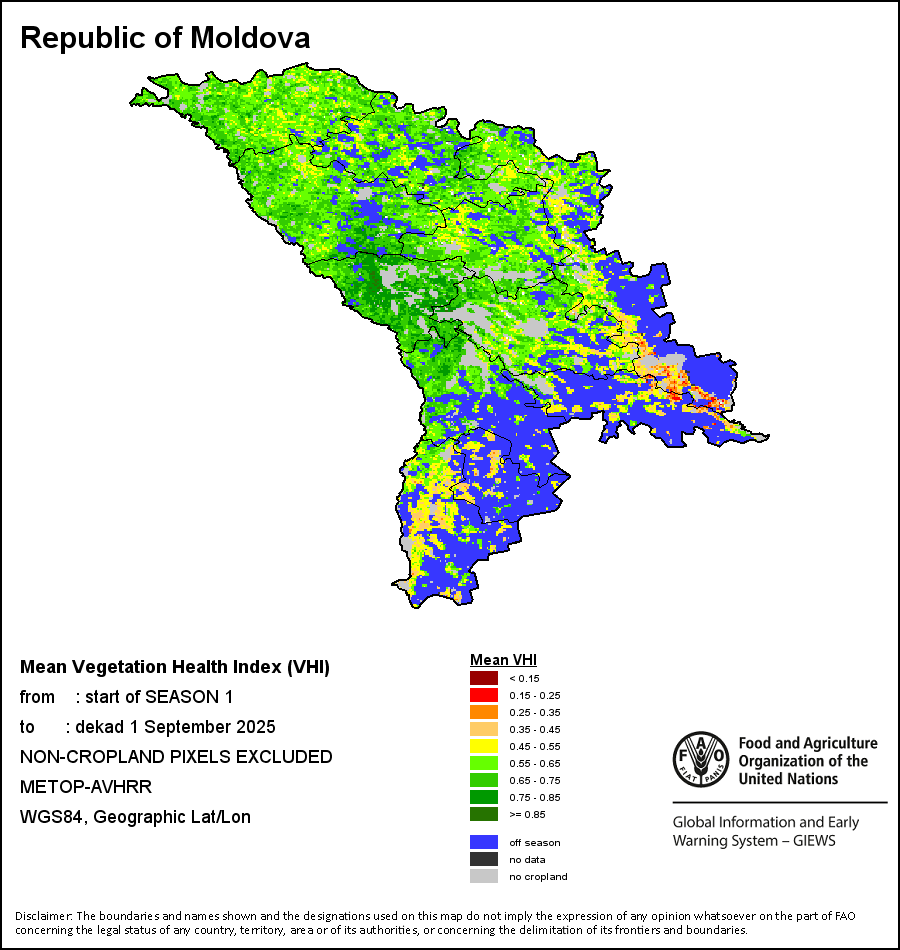 يتيح متوسط مؤشر الصحة النباتية للمستخدم تقييم شدة الجفاف من بداية الموسم الزراعي، حيث يتحقق من صحة النبات وتأثير درجات الحرارة في حالة النبات. أما متوسط مؤشر الصحة النباتية فيمثل معدل قيم مؤشر الصحة النباتية المأخوذة كل عشرة أيام على امتداد الموسم الزراعي للمحصول وحتى تاريخه. ويأخذ بعين الاعتبار حساسية المحصول للإجهاد المائي خلال الموسم الزراعي ويحسب التأثير الزمني لنقص الرطوبة منذ بداية الموسم الزراعي وحتى فترة العشرة أيام الراهنة.