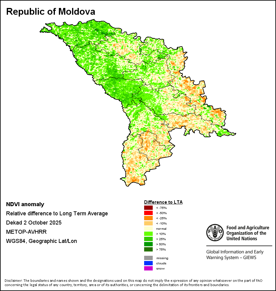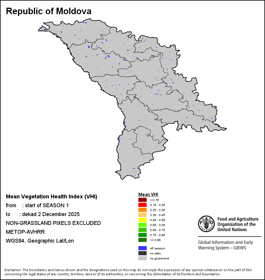 The country level maps and graphs depict the latest 36-month period of the seasonal, vegetation and precipitation indicators. The data is presented by dekad and month. All three vegetation indicators are based on 10-day (dekadal) vegetation data from the METOP-AVHRR sensor at 1 km resolution (2007 and after). Data at 1 km resolution for the period 1984-2006 are derived from the NOAA-AVHRR dataset at 16 km resolution. Precipitation estimates for all African countries (except Cabo Verde and Mauritius) are taken from NOAA/FEWSNet (16 km resolution), while for the remaining countries data is obtained from ECMWF (25 km resolution). Owing to the higher resolution of vegetation indicators (e.g., NDVI, VHI) compared to coarser precipitation indicators, the number of sub-national units for which valid zonal statistics can be generated for vegetation indices is greater than the number of units for precipitation indicators for certain countries.