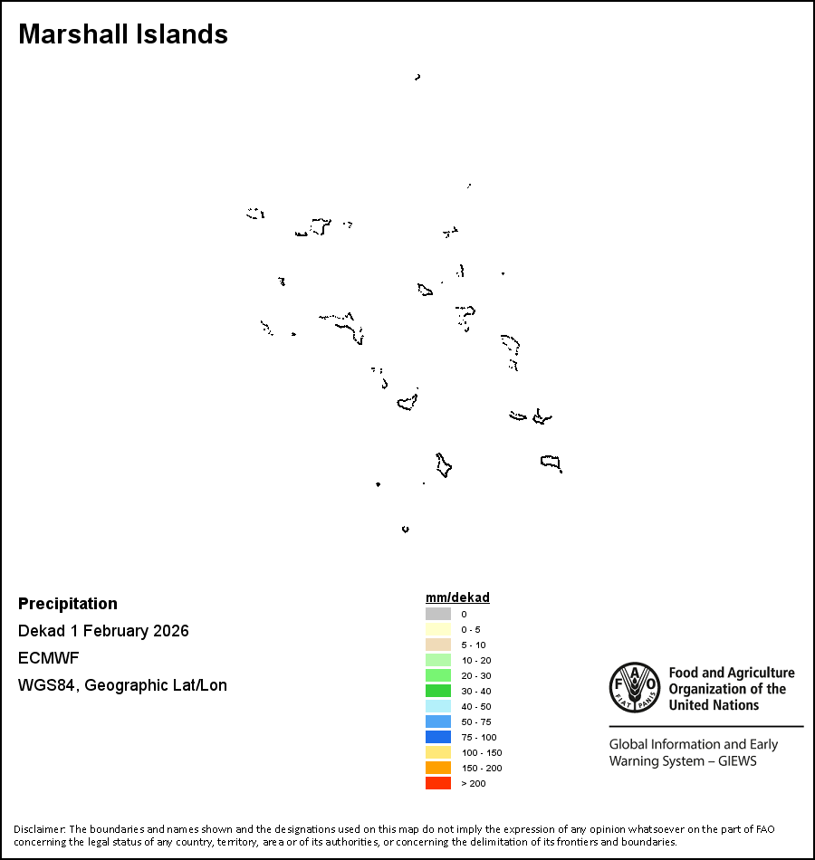 На карте изображены кумулятивные объемы осадков в декаду (10-дневный период). Оценки атмосферных осадков для всех африканских стран (за исключением Кабо-Верде и Маврикия) получены из системы NOAA/Системы раннего предупреждения об опасности голода, а по остальным странам данные получены из системы ECMWF.