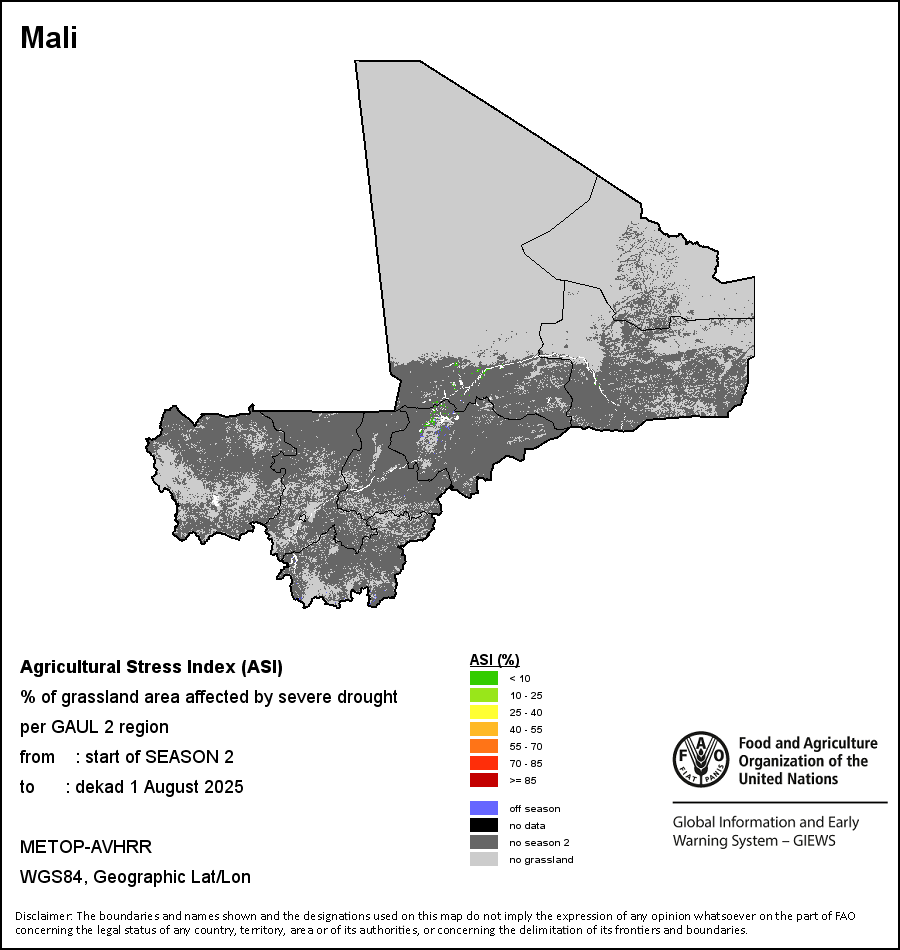 年度ASI显示的是某个行政区域内在整个农作季节受到旱情影响的耕地面积的百分比。 它与ASI的不同点在于ASI考查的是季节开局至当前十天的状况。
