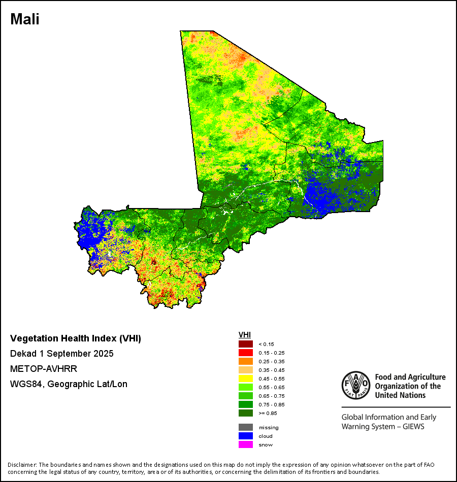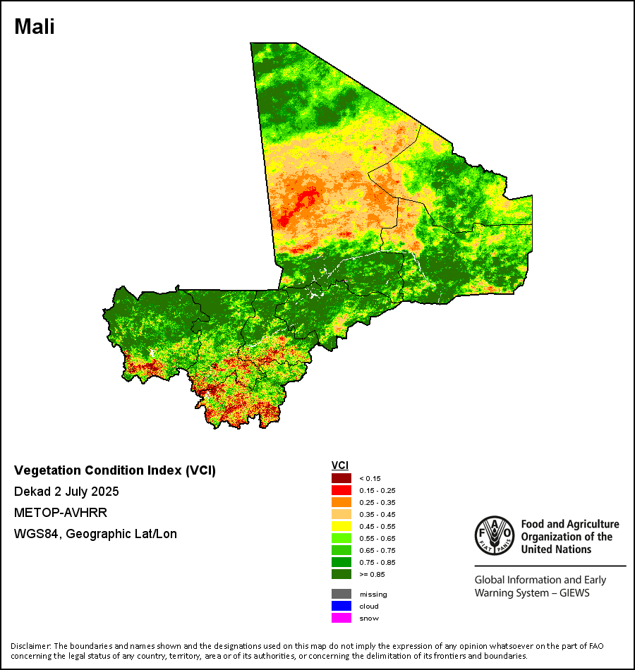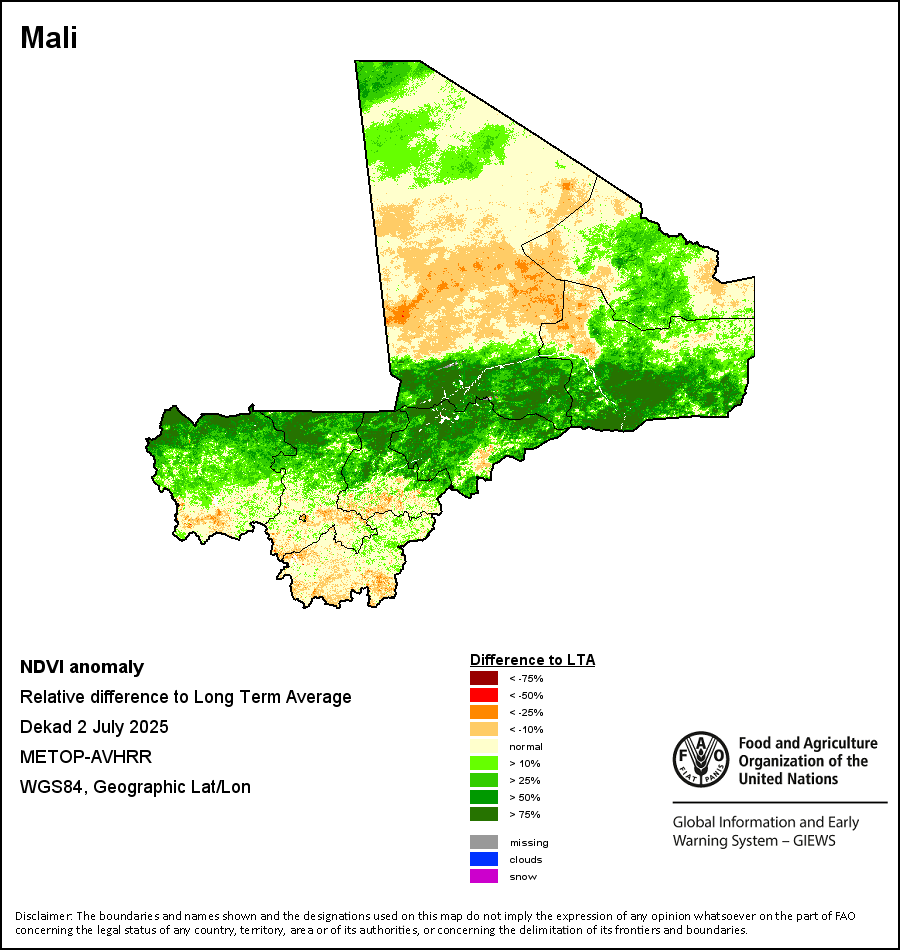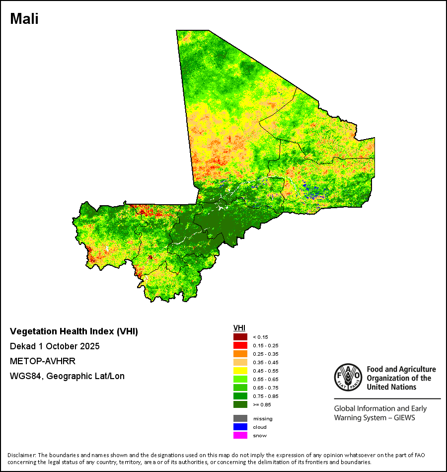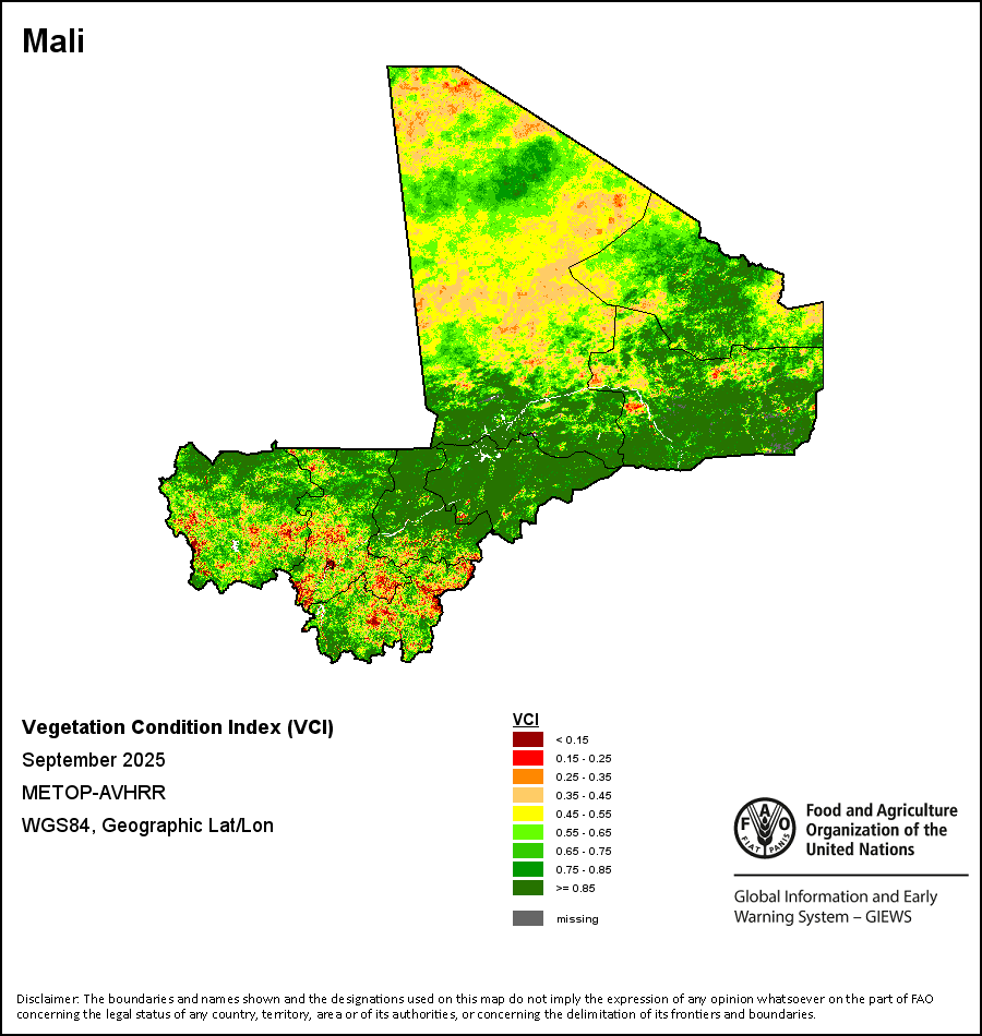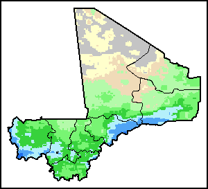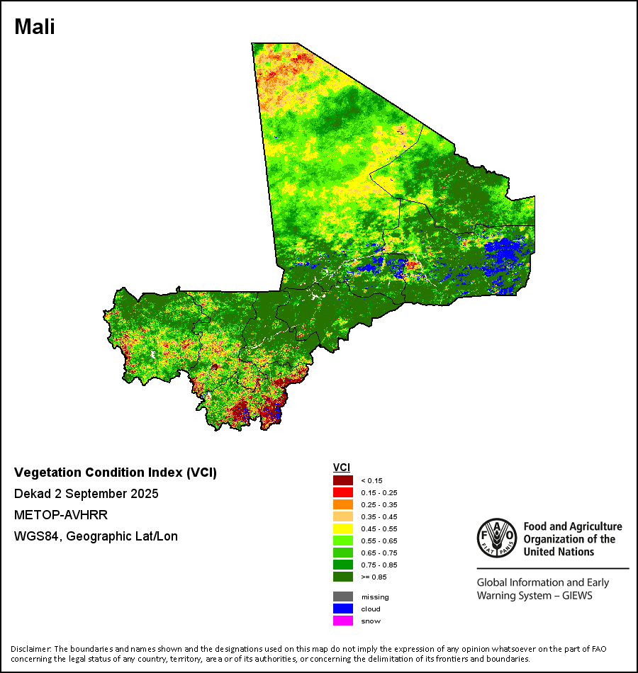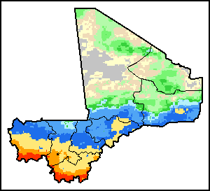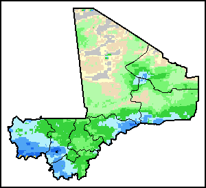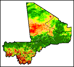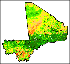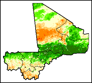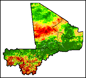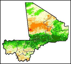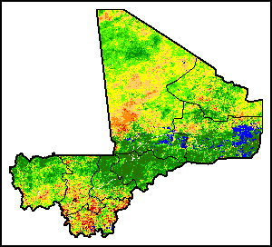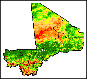 所有三项植被指标都是基于来自METOP-AVHRR遥感卫星分辨率1千米的10天(旬)植被数据(2007年及以后)得出的。1984-2006年期间的1千米分辨率数据得自NOAA-AVHRR16千米分辨率数据集。所有非洲国家的降水量估算(除佛得角和毛里求斯外)均取自NOAA/FEWSNet,其他国家则取自ECMWF。
