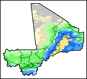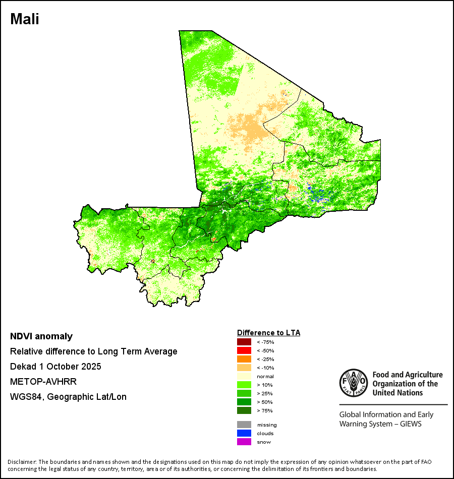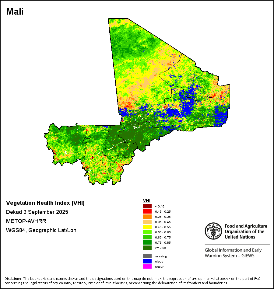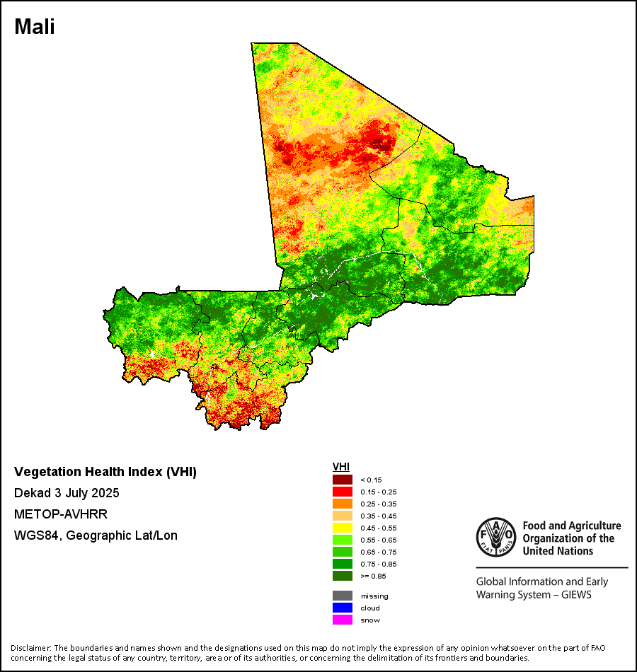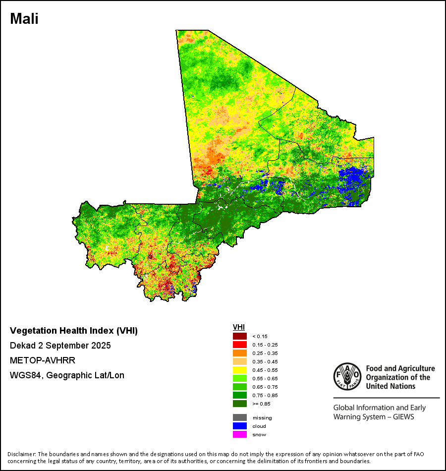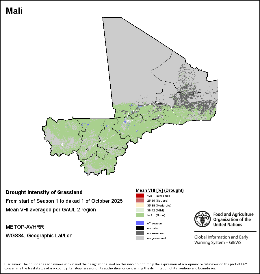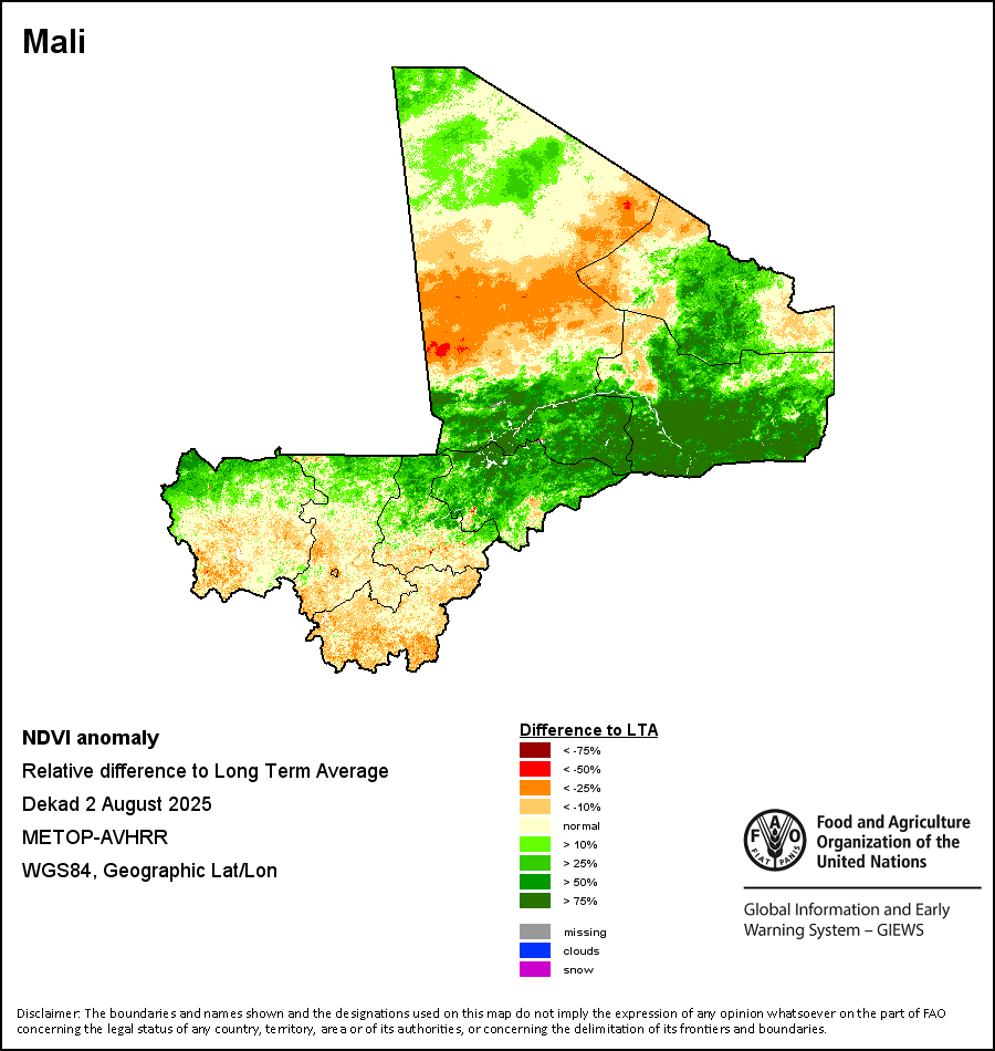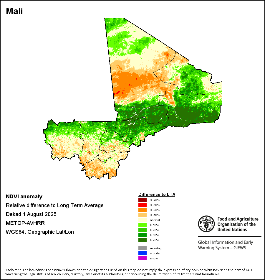 所有三项植被指标都是基于来自METOP-AVHRR遥感卫星分辨率1千米的10天(旬)植被数据(2007年及以后)得出的。1984-2006年期间的1千米分辨率数据得自NOAA-AVHRR16千米分辨率数据集。所有非洲国家的降水量估算(除佛得角和毛里求斯外)均取自NOAA/FEWSNet,其他国家则取自ECMWF。