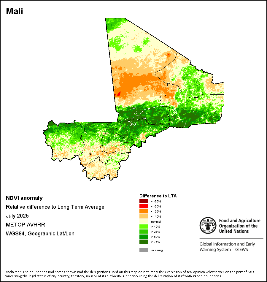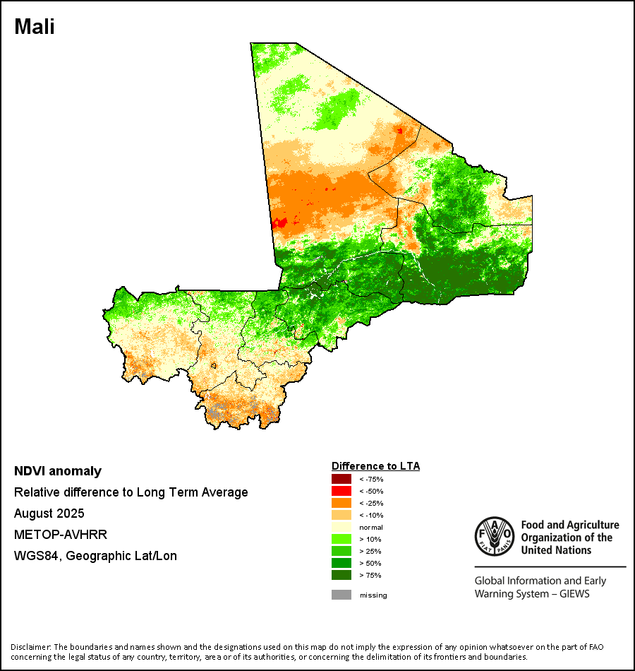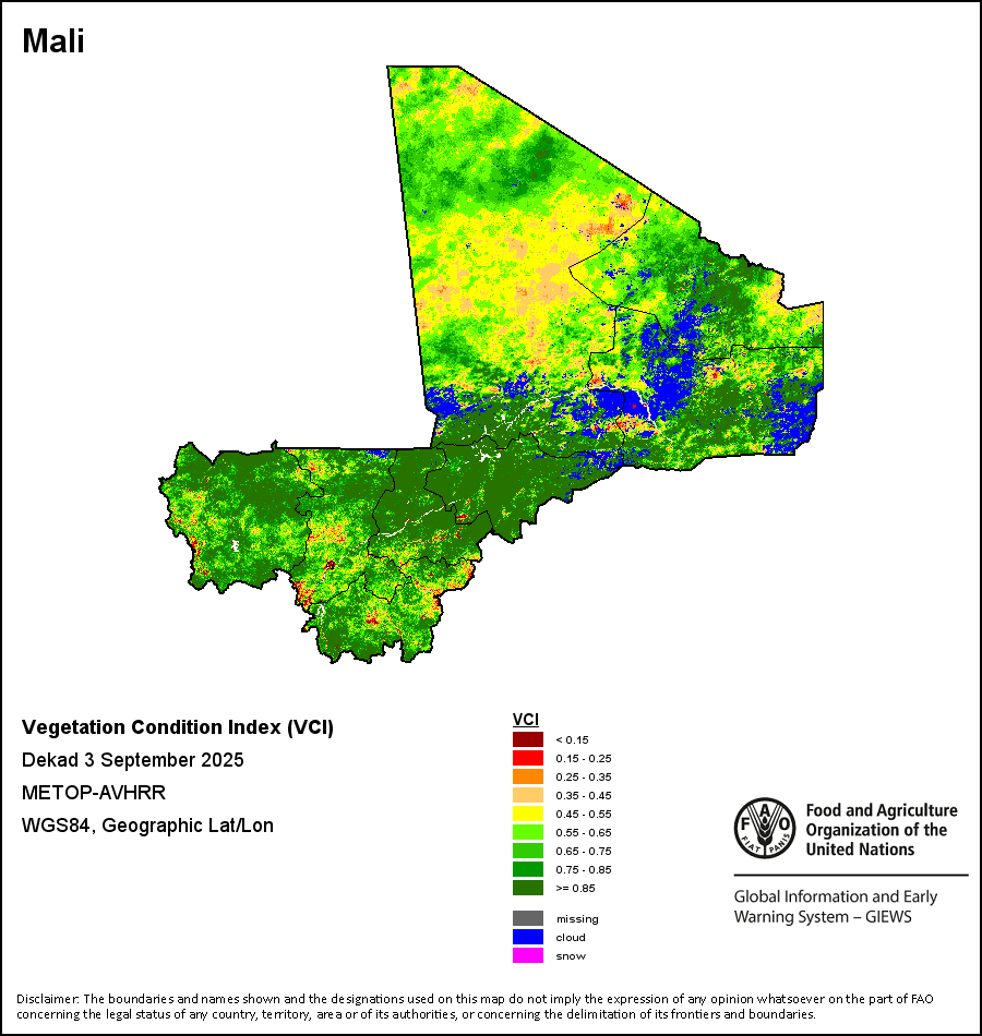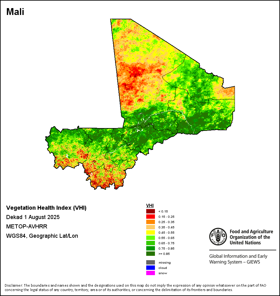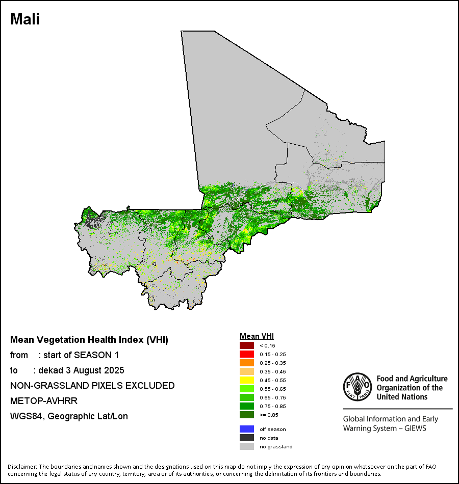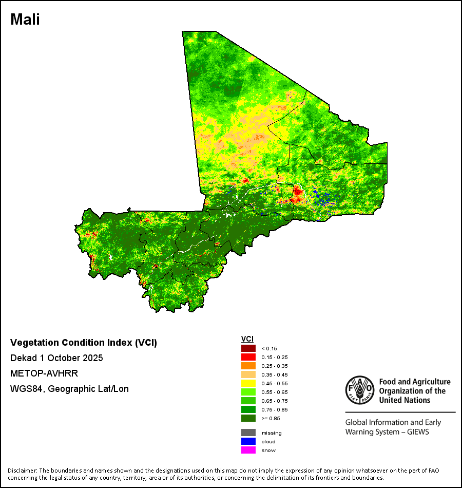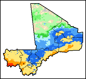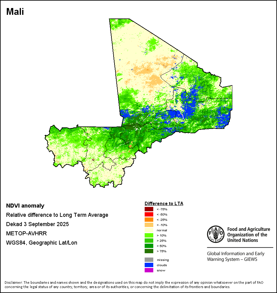 所有三项植被指标都是基于来自METOP-AVHRR遥感卫星分辨率1千米的10天(旬)植被数据(2007年及以后)得出的。1984-2006年期间的1千米分辨率数据得自NOAA-AVHRR16千米分辨率数据集。所有非洲国家的降水量估算(除佛得角和毛里求斯外)均取自NOAA/FEWSNet,其他国家则取自ECMWF。