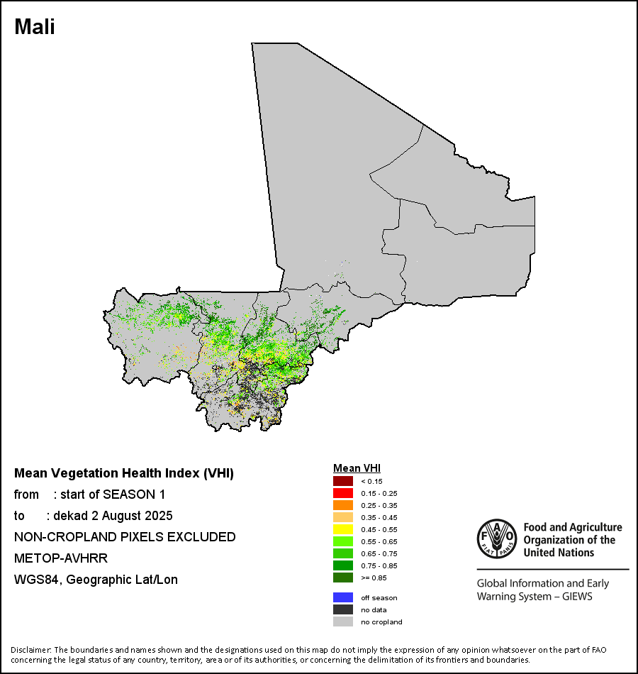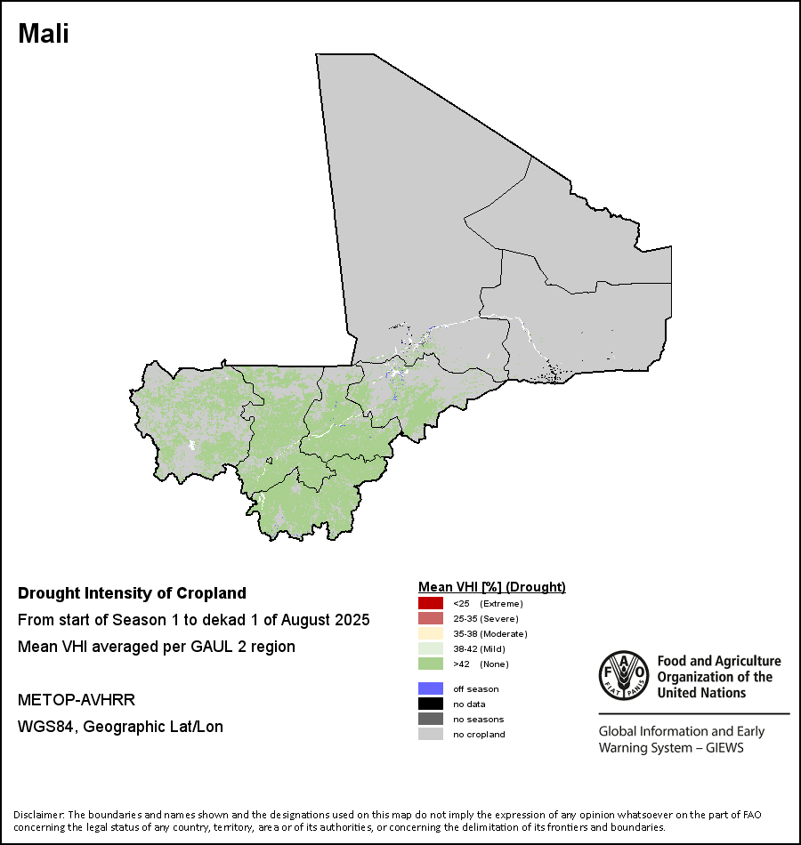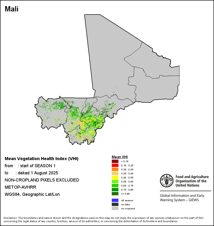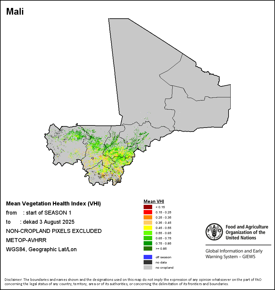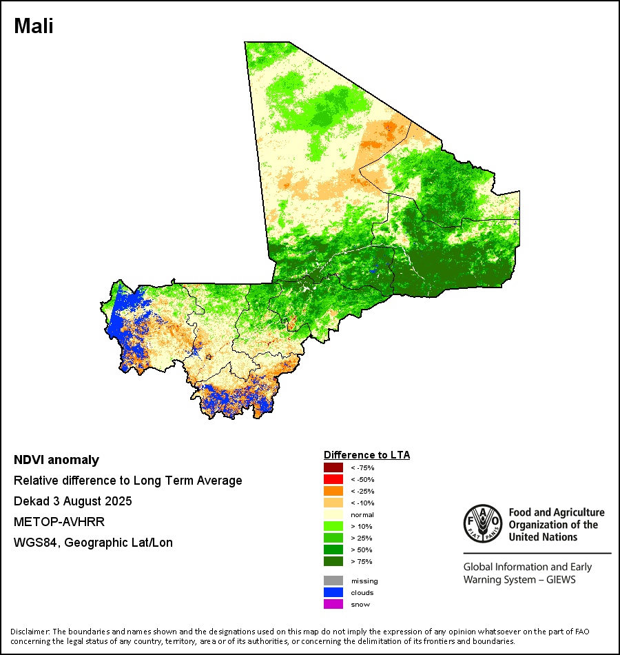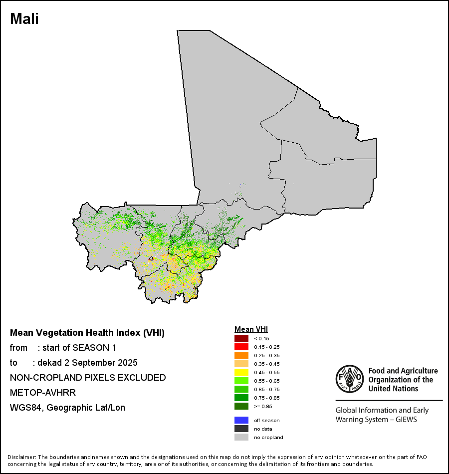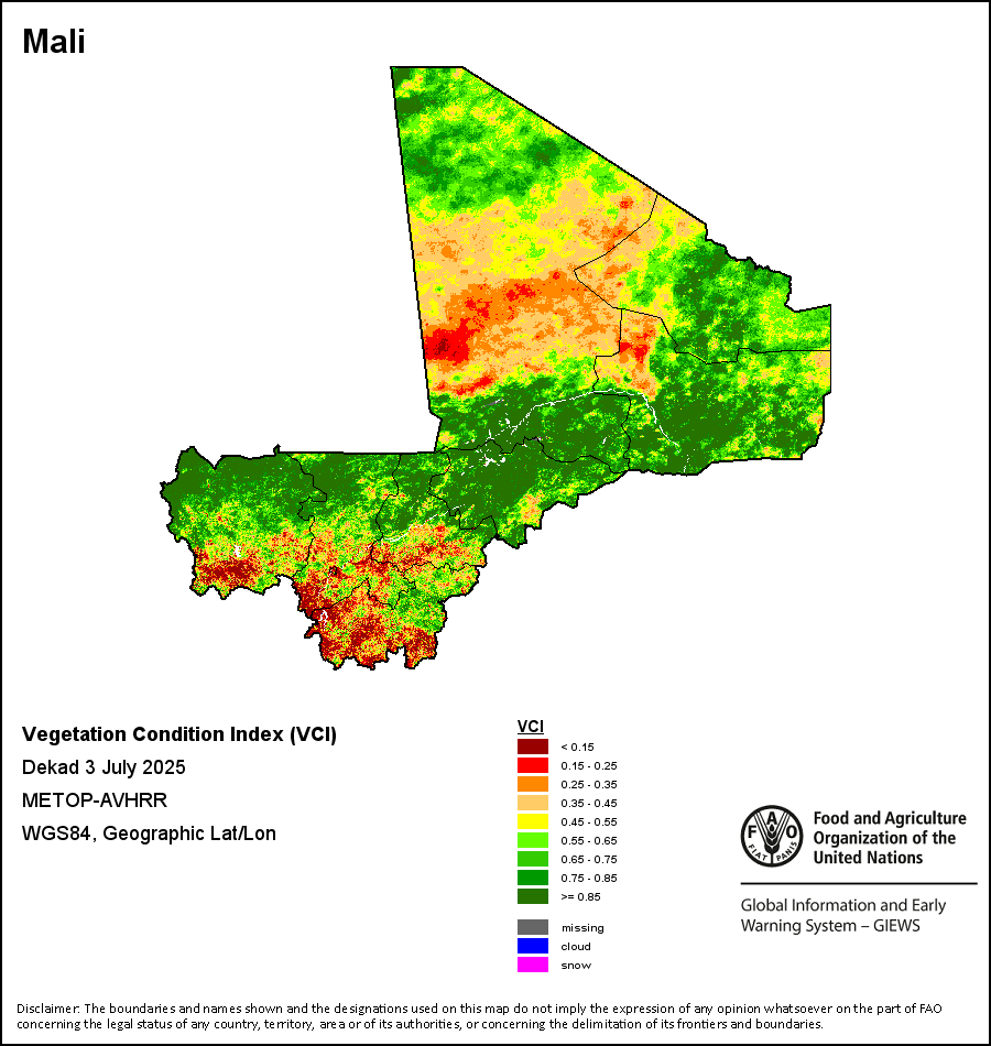 所有三项植被指标都是基于来自METOP-AVHRR遥感卫星分辨率1千米的10天(旬)植被数据(2007年及以后)得出的。1984-2006年期间的1千米分辨率数据得自NOAA-AVHRR16千米分辨率数据集。所有非洲国家的降水量估算(除佛得角和毛里求斯外)均取自NOAA/FEWSNet,其他国家则取自ECMWF。