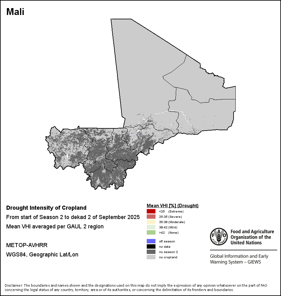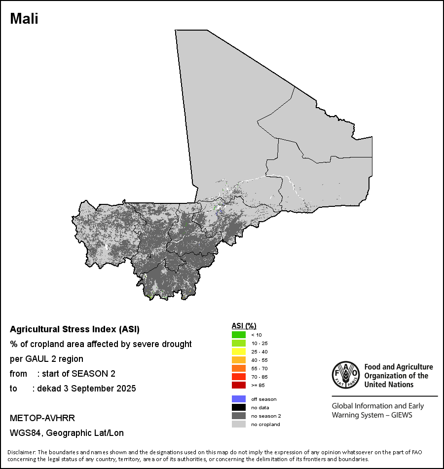 农业干旱依据其强度划分为四类:极端、严重、重度或轻度。干旱的强度通过各全球行政单位分层制度二级区域(GAUL 2)地区累积加权平均植被健康指数计算得出,意味着植被健康状况越差旱情就越严重。