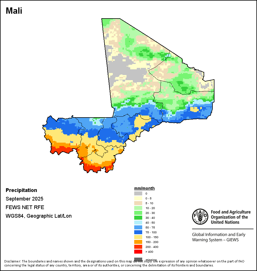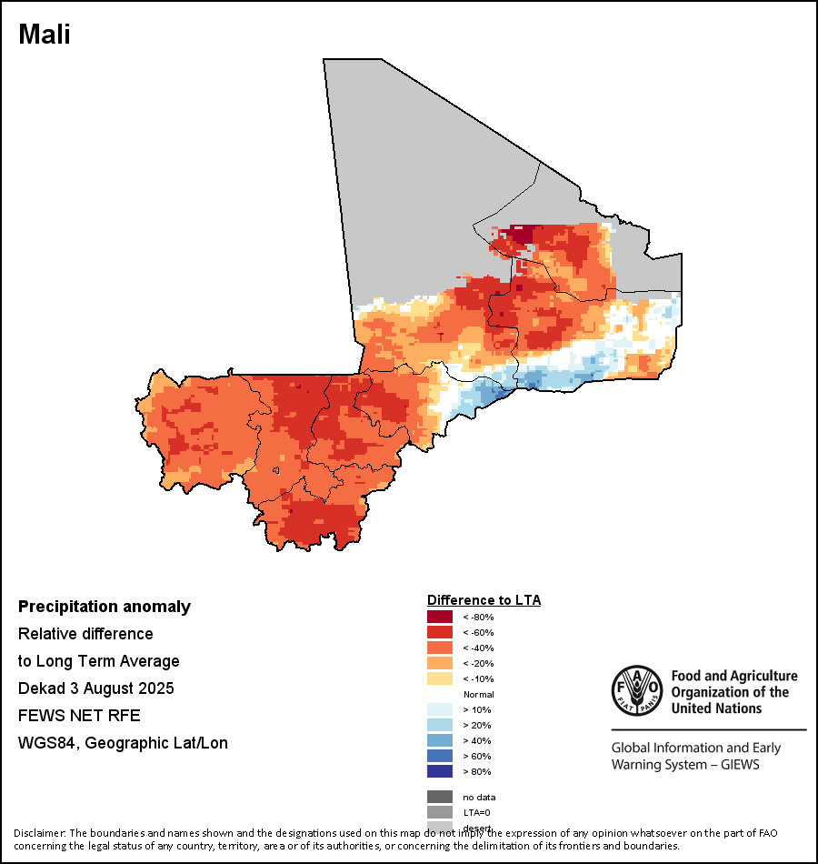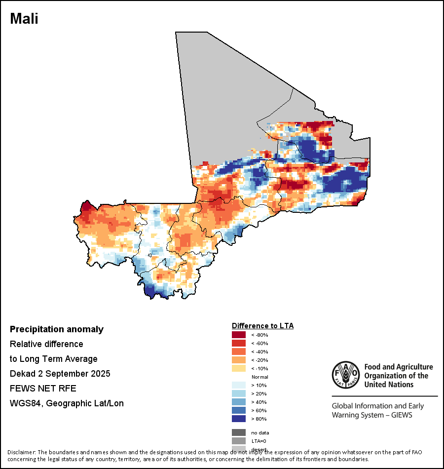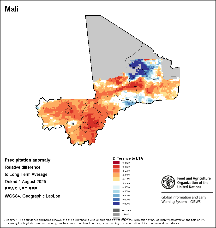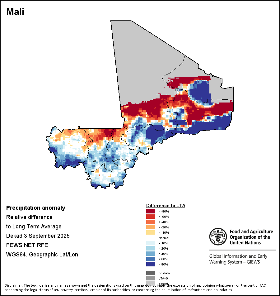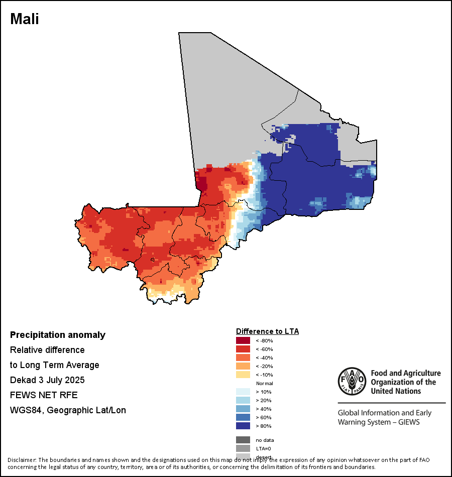 该图谱显示了每一旬(十天)的累积降水量。 所有非洲国家的降水量估算(除佛得角和毛里求斯外)均取自NOAA/FEWSNet,其他国家则取自ECMWF。