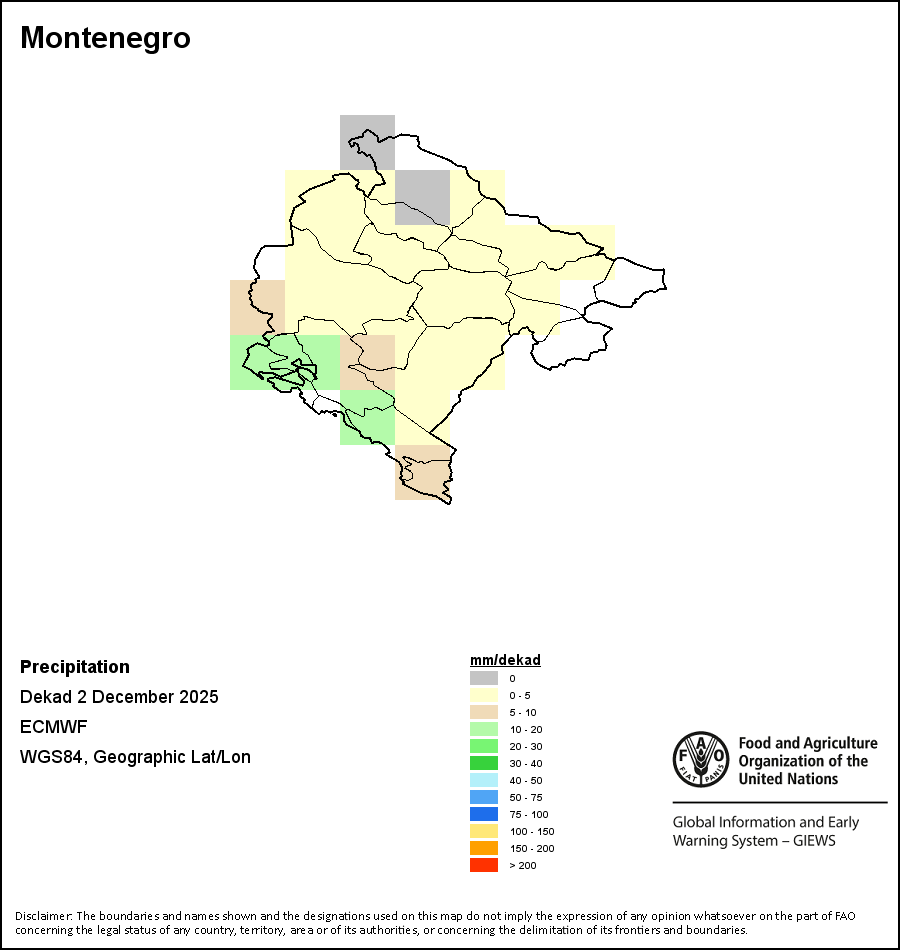 The boundaries and names shown and the designations used on the maps do not imply the expression of any opinion whatsoever on the part of FAO concerning the legal status of any country, territory, city or area or of its authorities, or concerning the delimitation of its frontiers and boundaries.