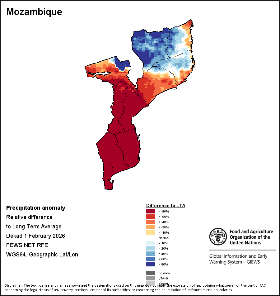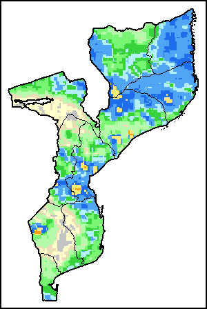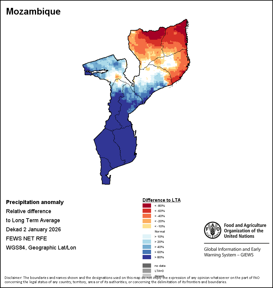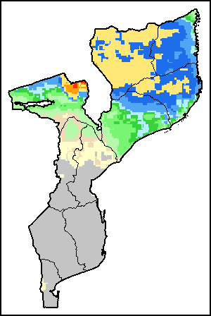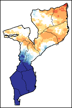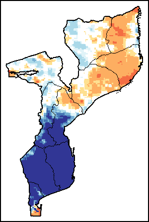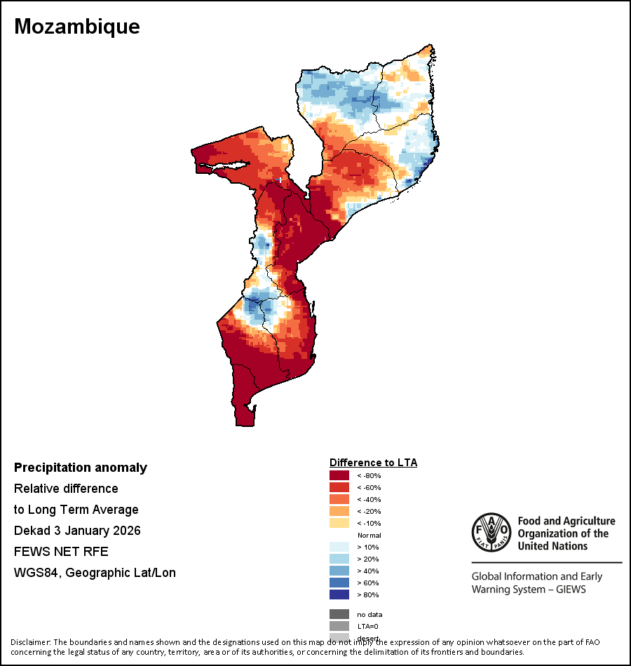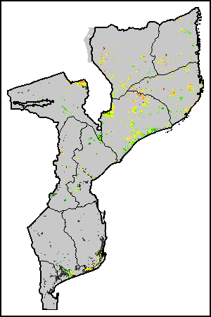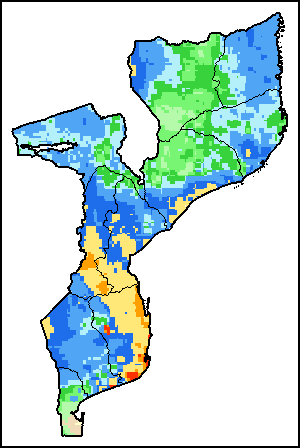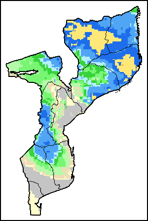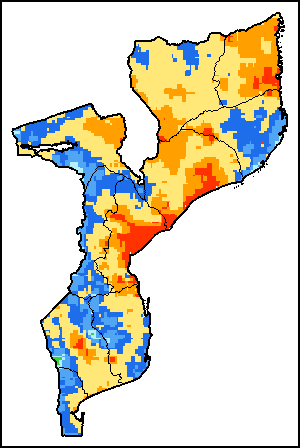 Les cartes et les graphiques au niveau des pays illustrent les indicateurs d’avancement de la campagne, de végétation et de pluviométrie au cours des 36 derniers mois. Les données sont présentées par décade et par mois. Les trois indicateurs de végétation sont basés sur les données relatives à la végétation pour 10 jours (décade) du capteur Metop-AVHRR par pixel de 1 km (à partir de 2007). Les données à 1 km de résolution pour la période 1984-2006 ont été dérivées des données du NOAA-AVHRR à 16 km de résolution. - Les estimations concernant les précipitations pour tous les pays africains (à l'exception du Cap Vert et de Maurice) proviennent du NOAA/FEWSNet, tandis que les données concernant les autres pays sont obtenues à partir du CEPMMT. Compte tenu de la résolution plus élevée des indicateurs de végétation (ex. NDVI, VHI) par rapport à celle des indicateurs de précipitations, plus grossiers, le nombre d’unités infranationales pour lesquelles des statistiques zonales valides peuvent être produites à partir des indices de végétation est, dans certains pays, supérieur à celui obtenu à partir des indicateurs de précipitations.