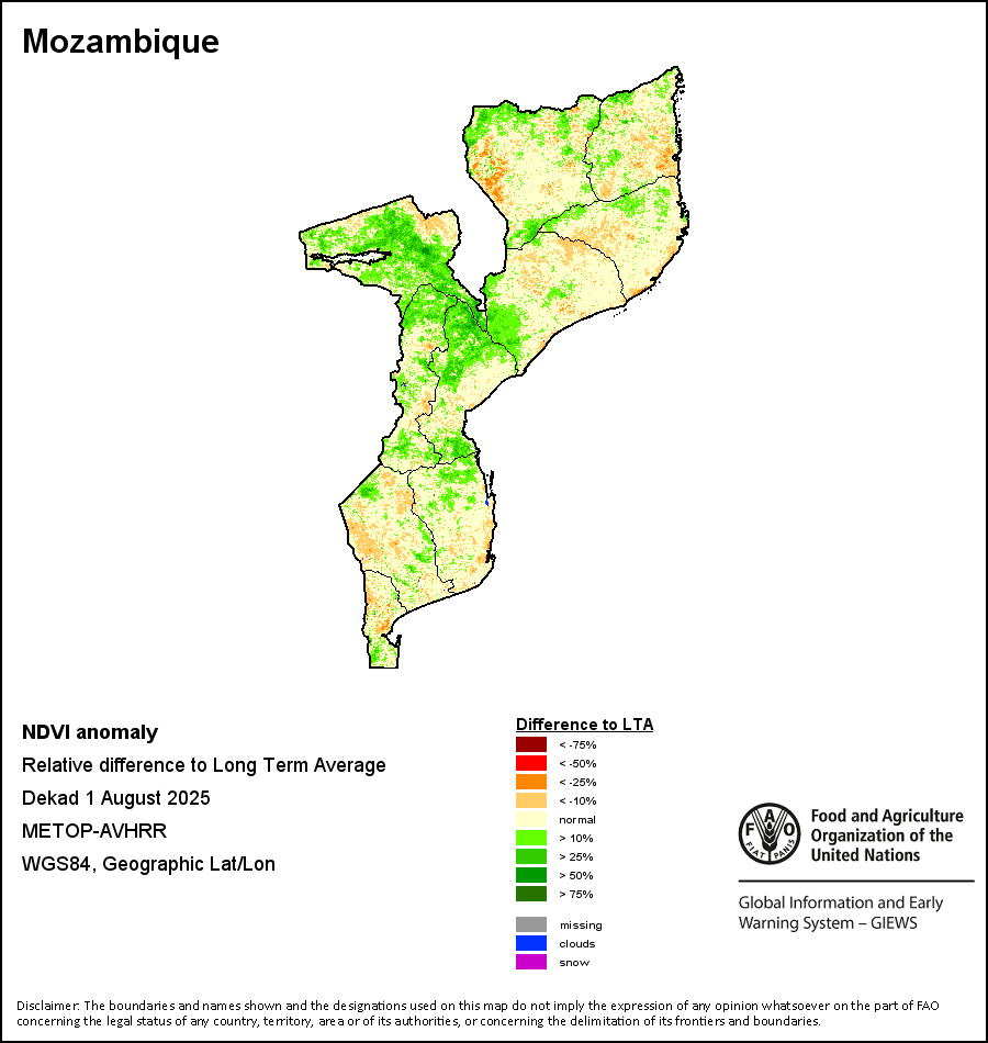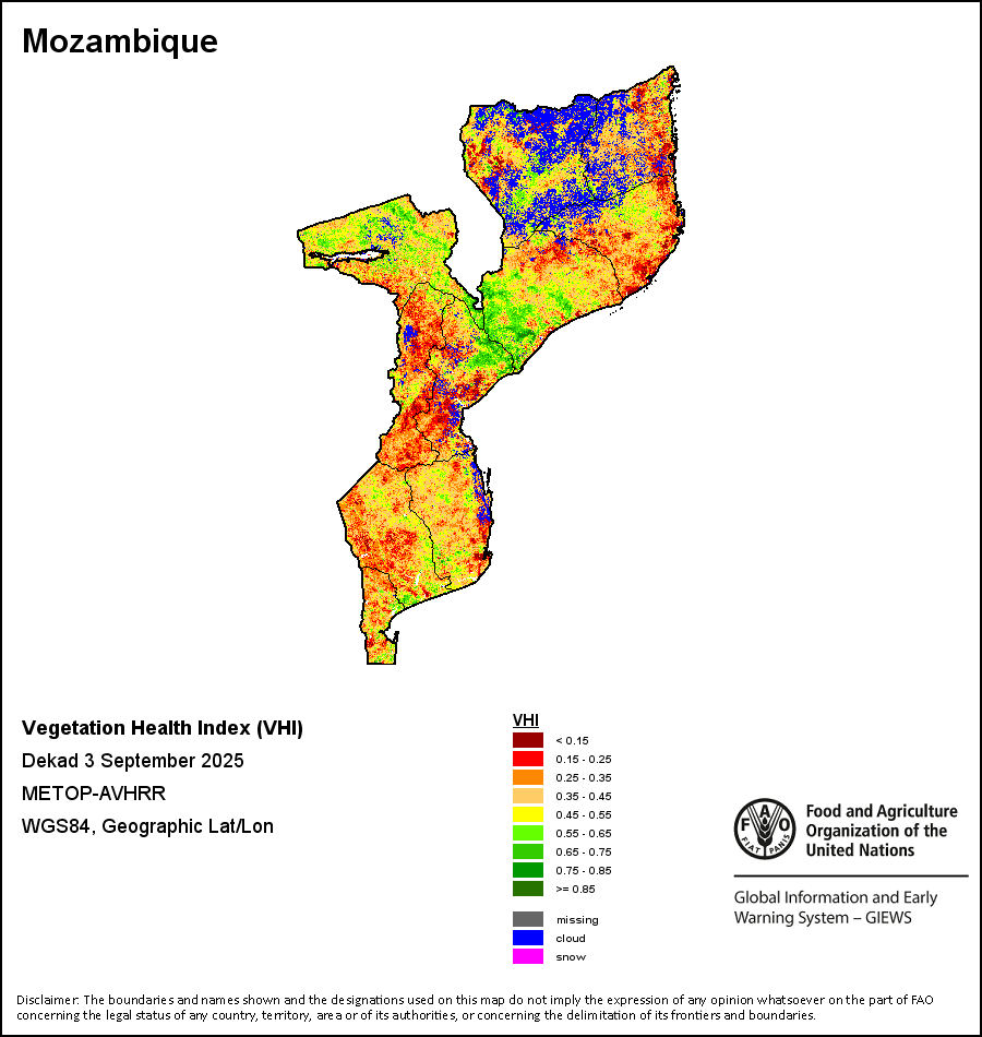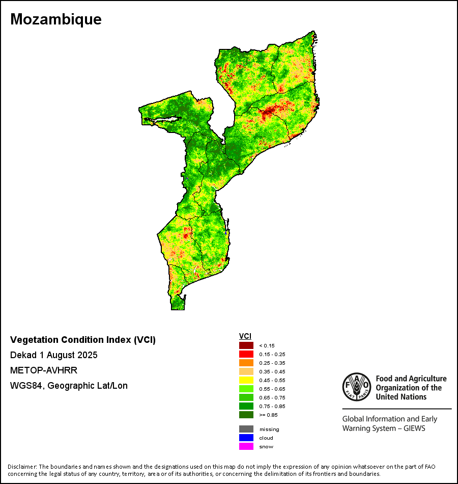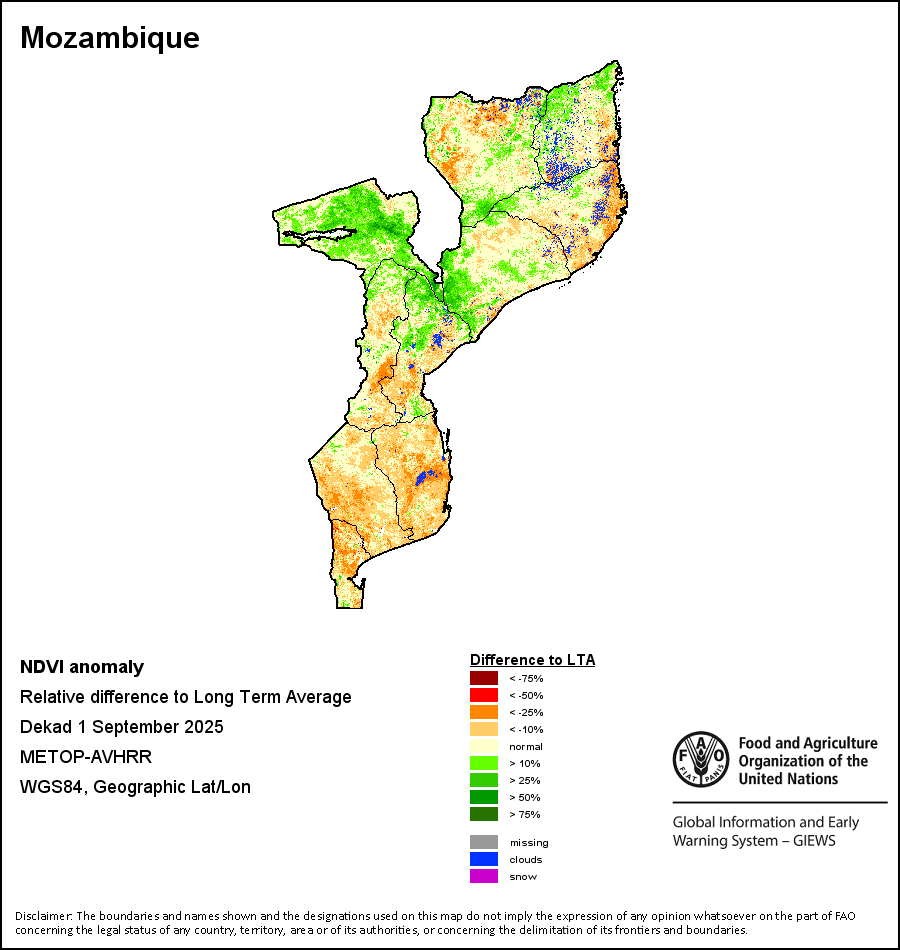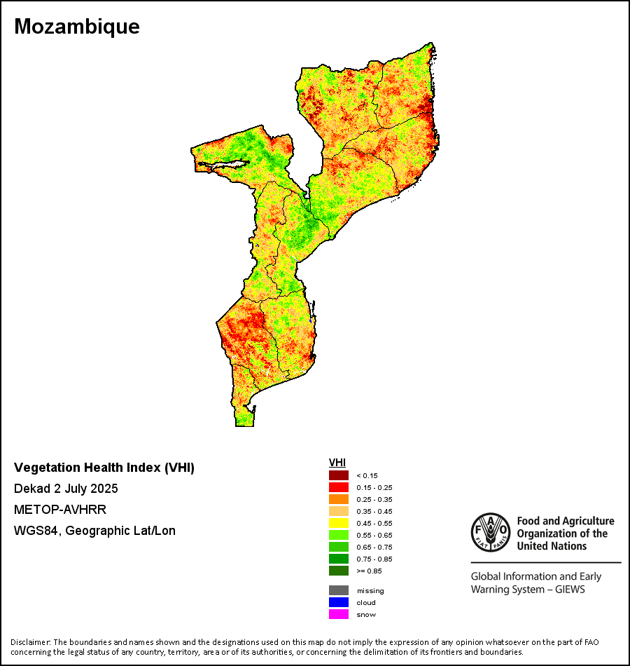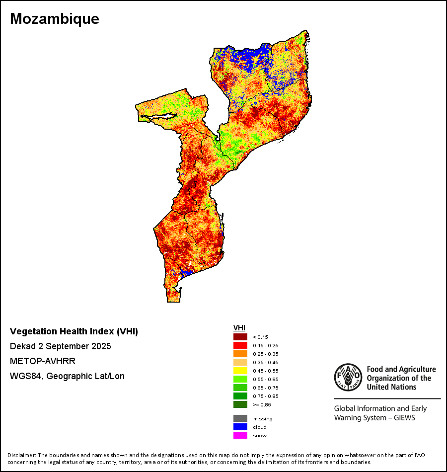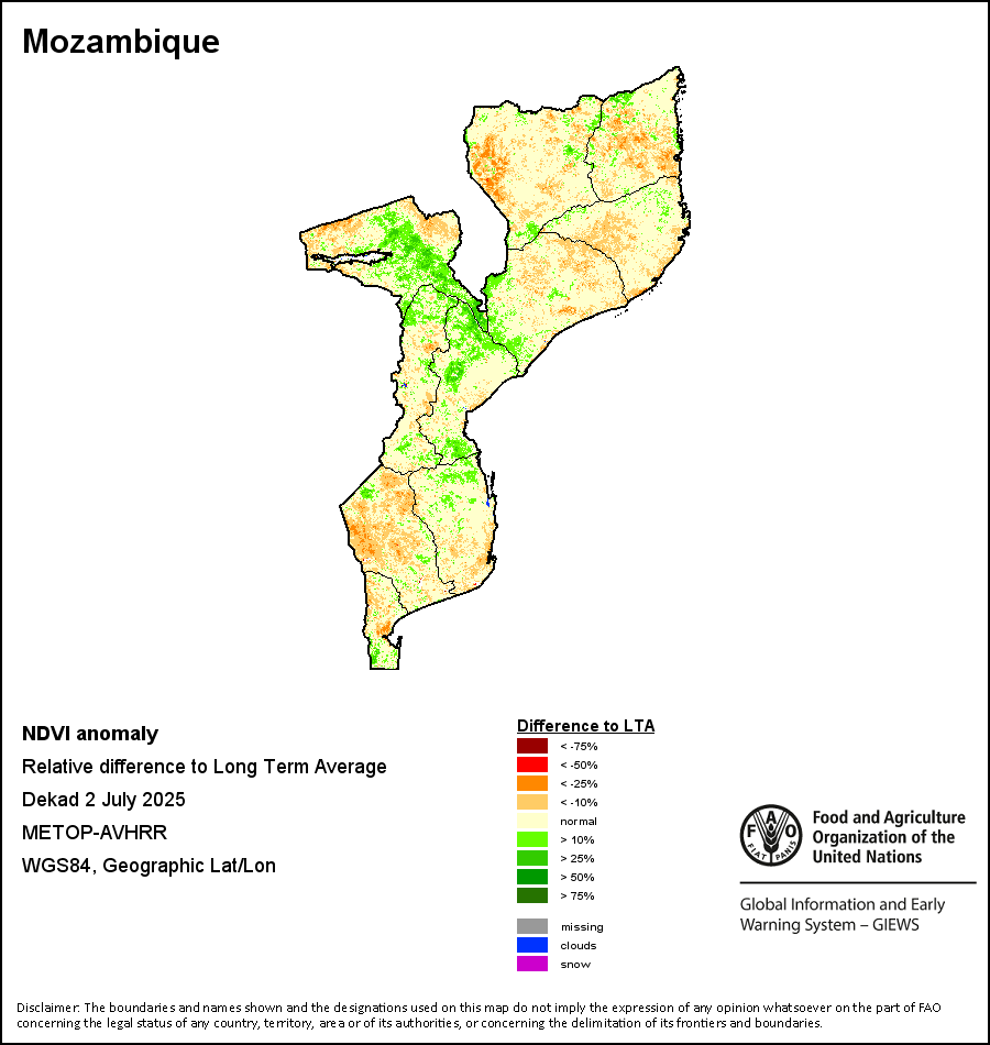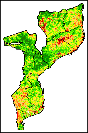 所有三项植被指标都是基于来自METOP-AVHRR遥感卫星分辨率1千米的10天(旬)植被数据(2007年及以后)得出的。1984-2006年期间的1千米分辨率数据得自NOAA-AVHRR16千米分辨率数据集。所有非洲国家的降水量估算(除佛得角和毛里求斯外)均取自NOAA/FEWSNet,其他国家则取自ECMWF。