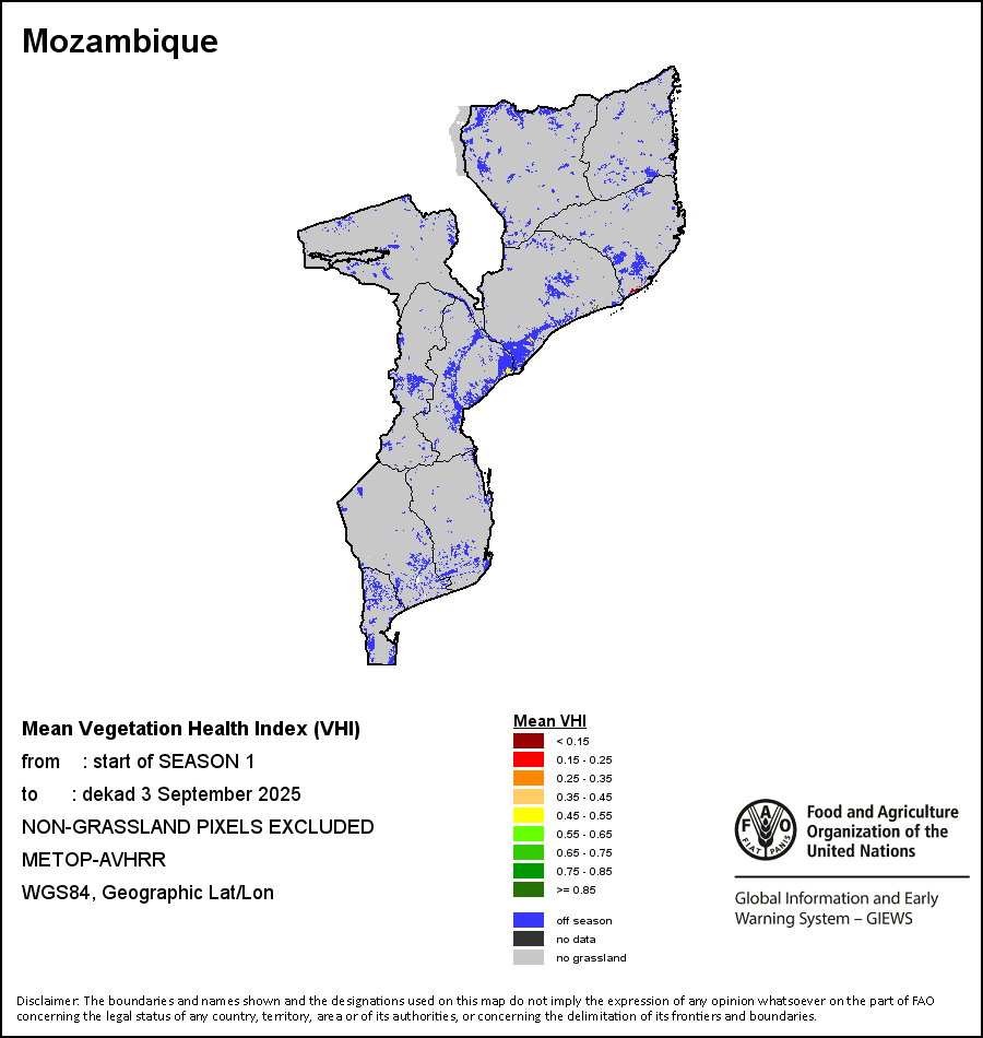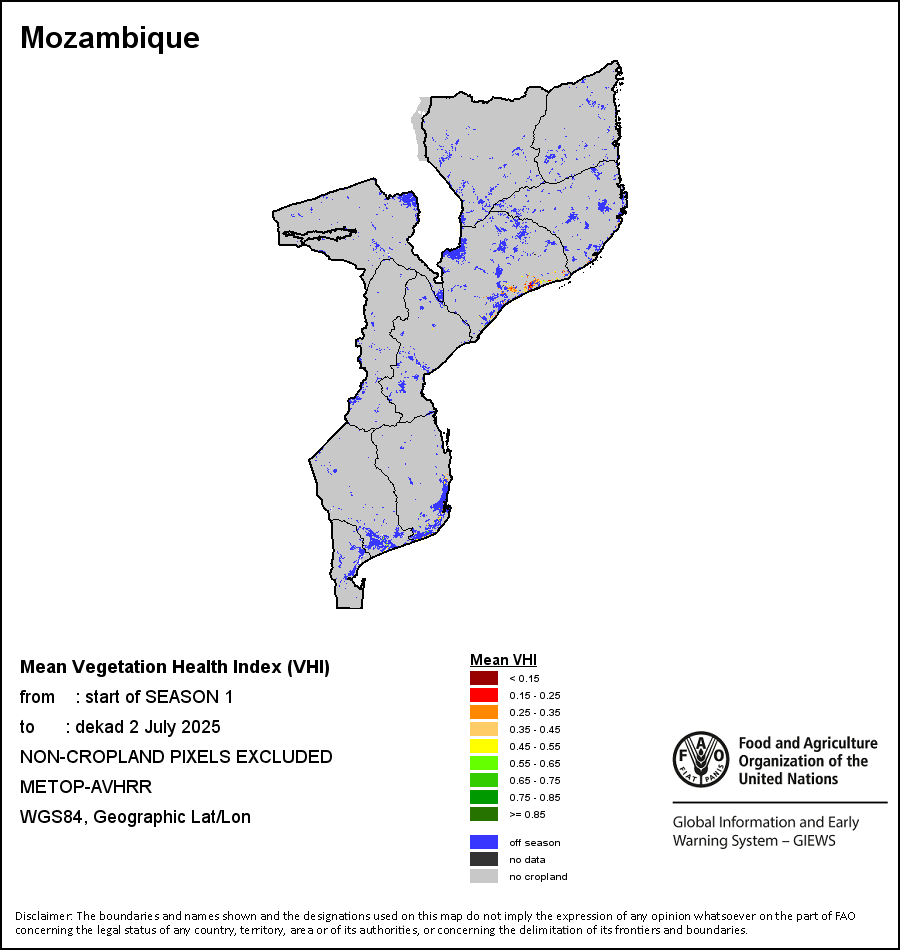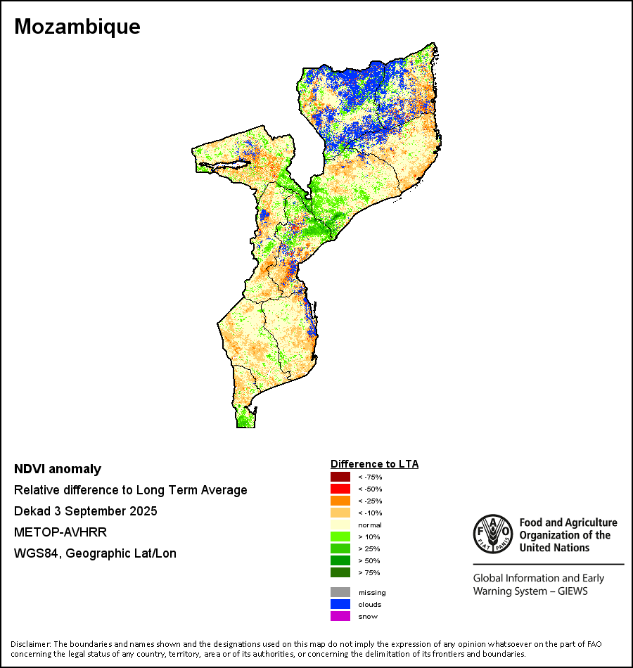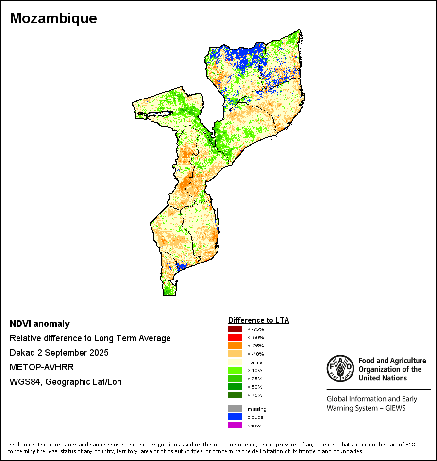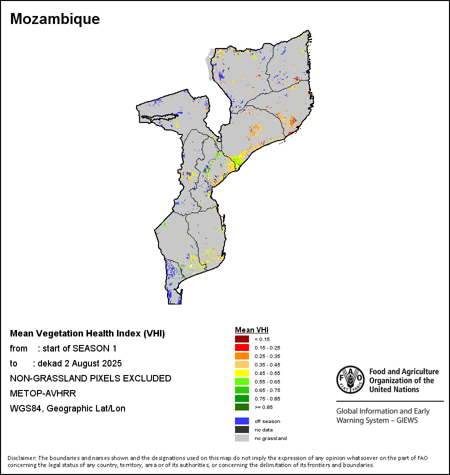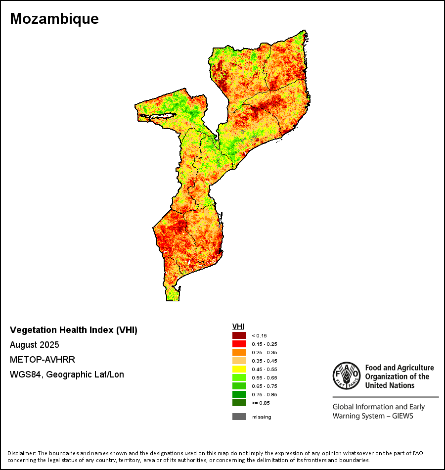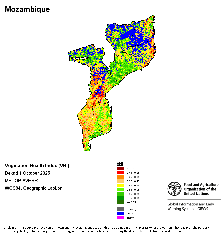 所有三项植被指标都是基于来自METOP-AVHRR遥感卫星分辨率1千米的10天(旬)植被数据(2007年及以后)得出的。1984-2006年期间的1千米分辨率数据得自NOAA-AVHRR16千米分辨率数据集。所有非洲国家的降水量估算(除佛得角和毛里求斯外)均取自NOAA/FEWSNet,其他国家则取自ECMWF。