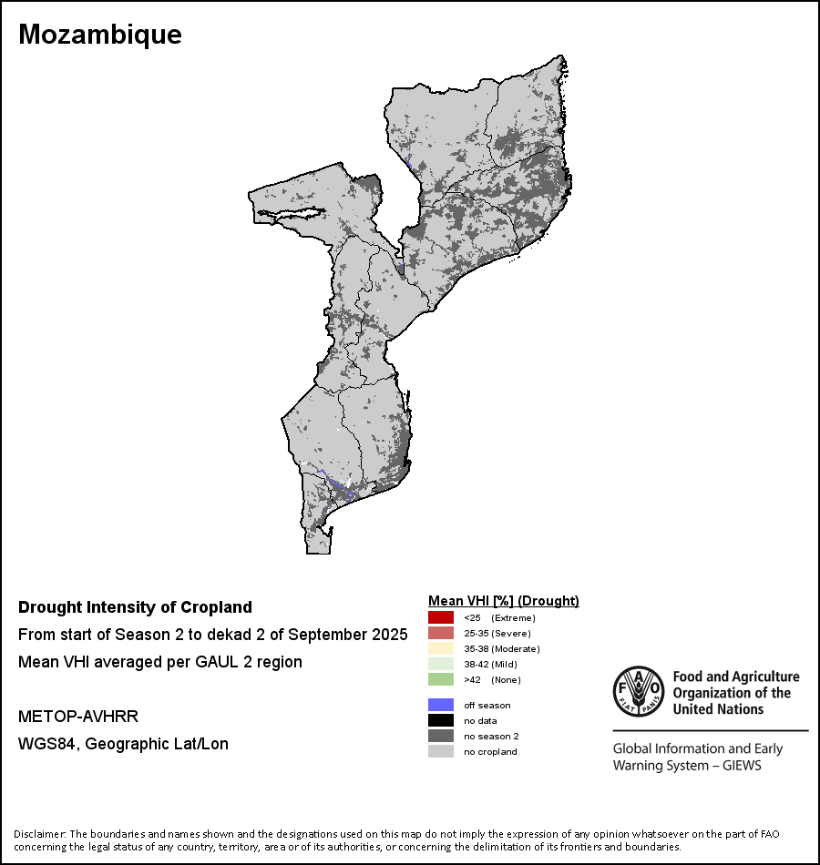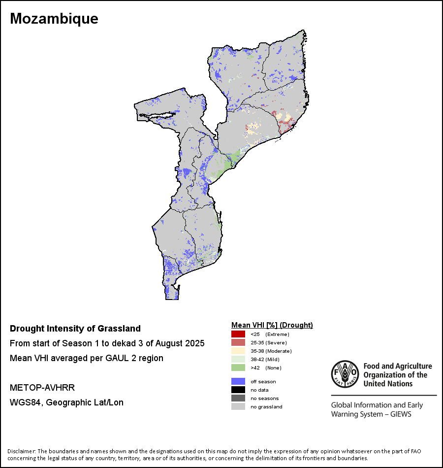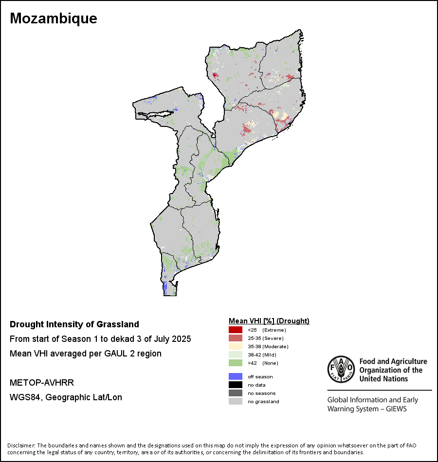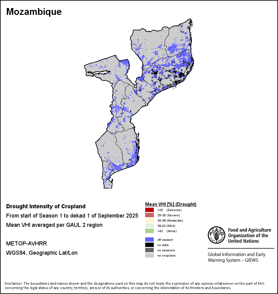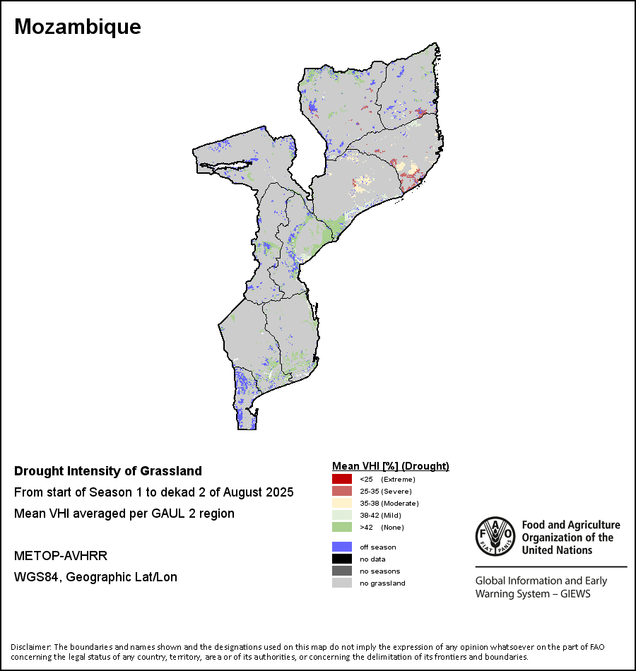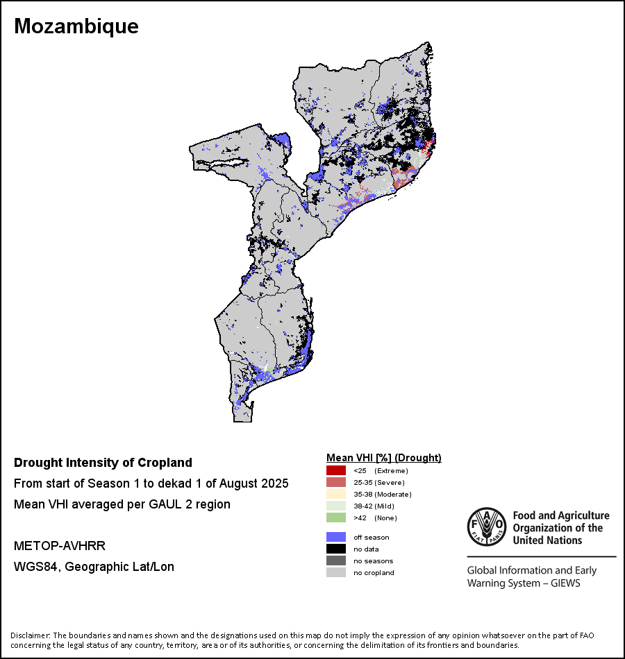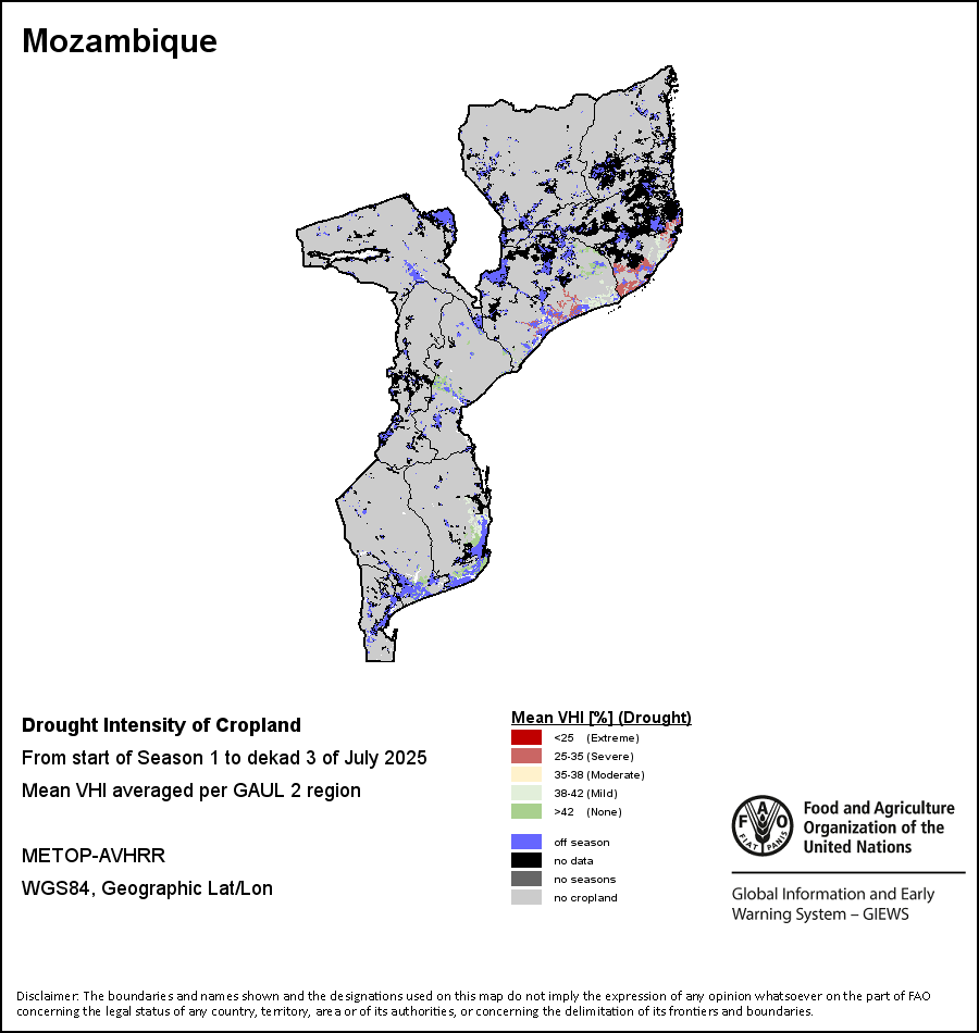 所有三项植被指标都是基于来自METOP-AVHRR遥感卫星分辨率1千米的10天(旬)植被数据(2007年及以后)得出的。1984-2006年期间的1千米分辨率数据得自NOAA-AVHRR16千米分辨率数据集。所有非洲国家的降水量估算(除佛得角和毛里求斯外)均取自NOAA/FEWSNet,其他国家则取自ECMWF。