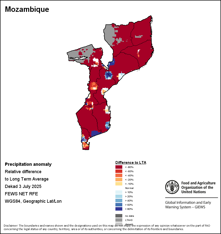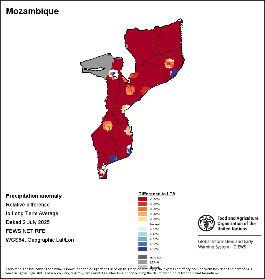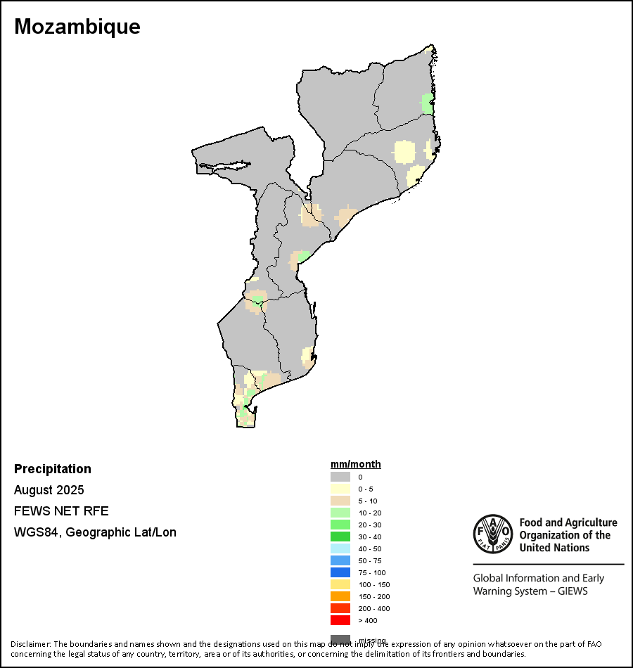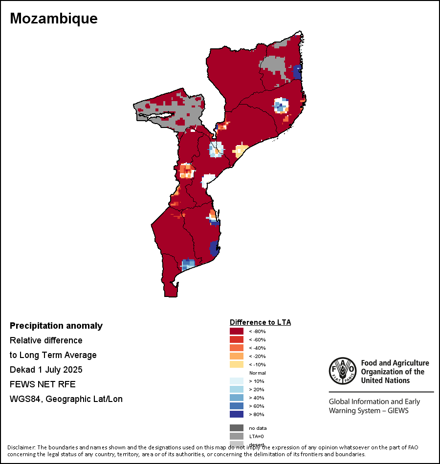 该图谱显示了每一旬(十天)的累积降水量。 所有非洲国家的降水量估算(除佛得角和毛里求斯外)均取自NOAA/FEWSNet,其他国家则取自ECMWF。