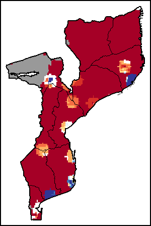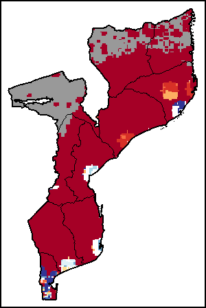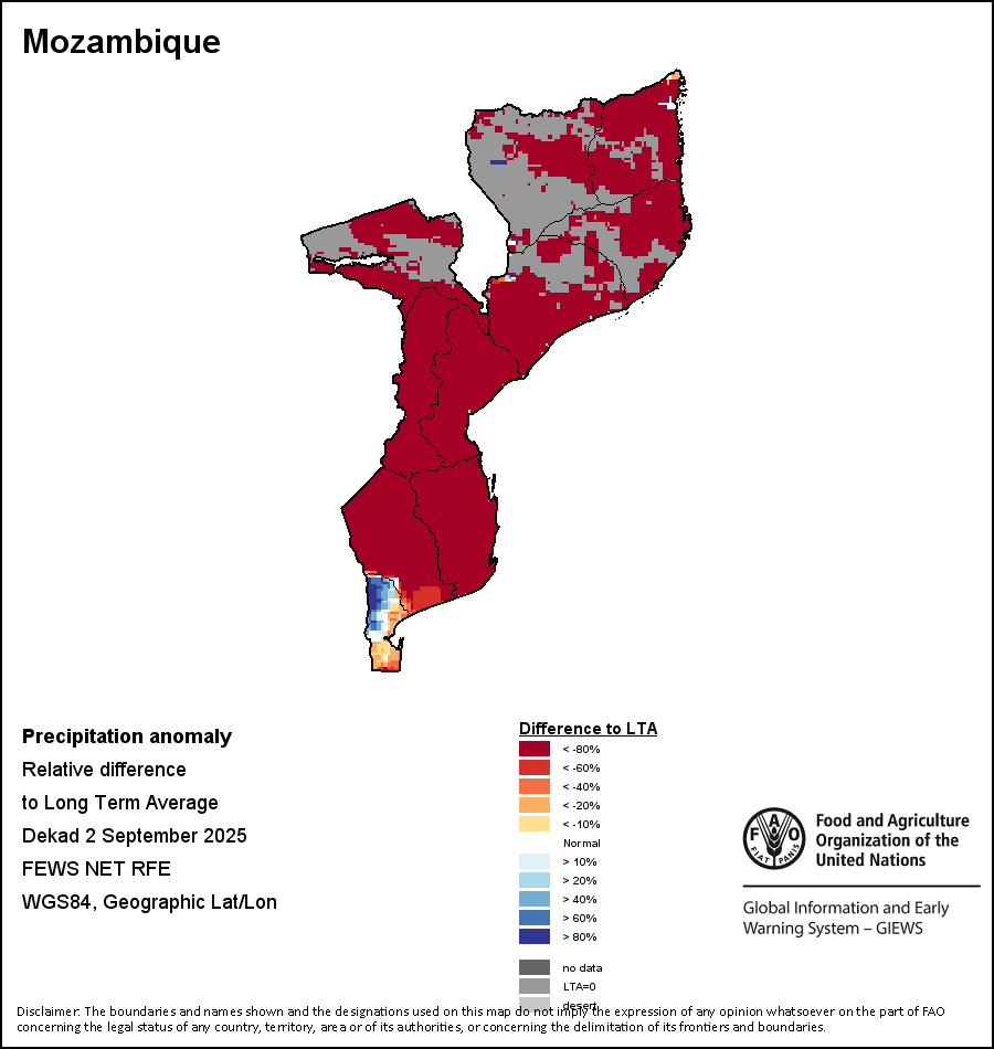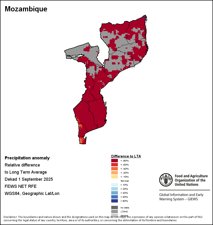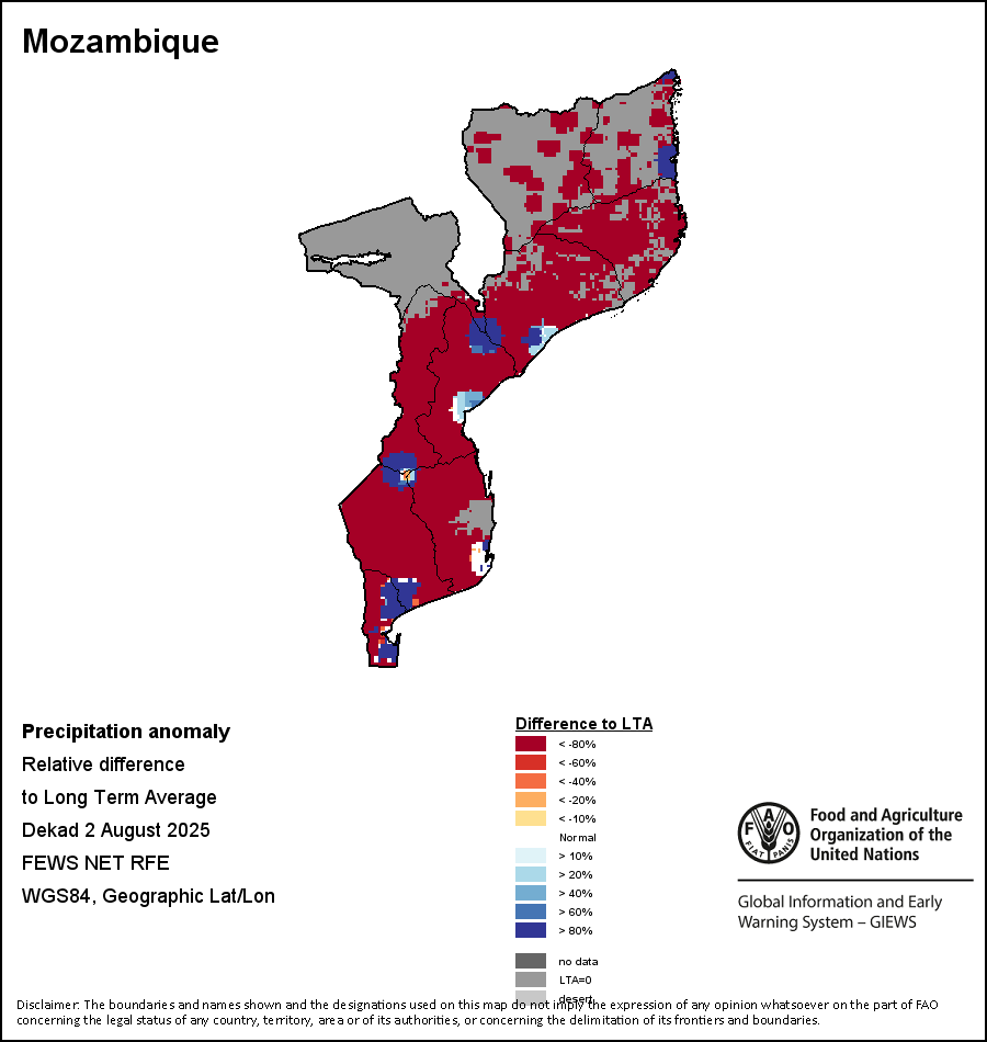 该图谱显示了每一旬(十天)的累积降水量。 所有非洲国家的降水量估算(除佛得角和毛里求斯外)均取自NOAA/FEWSNet,其他国家则取自ECMWF。