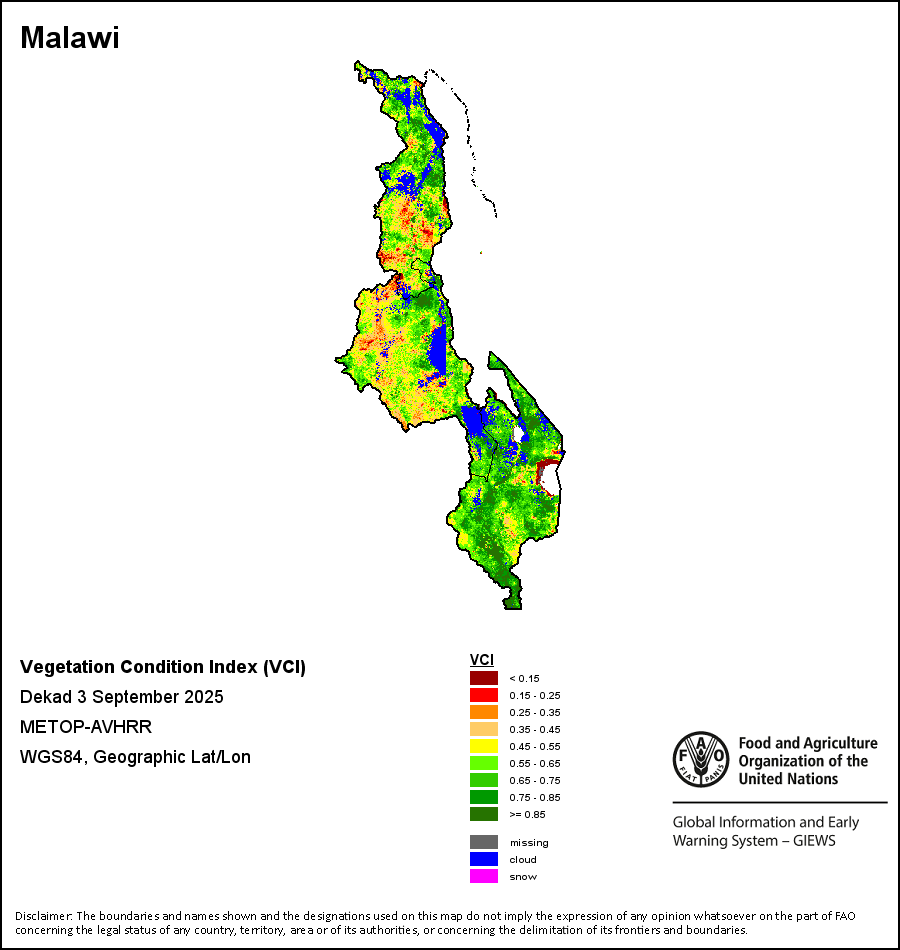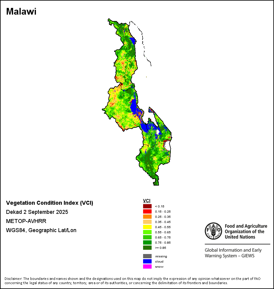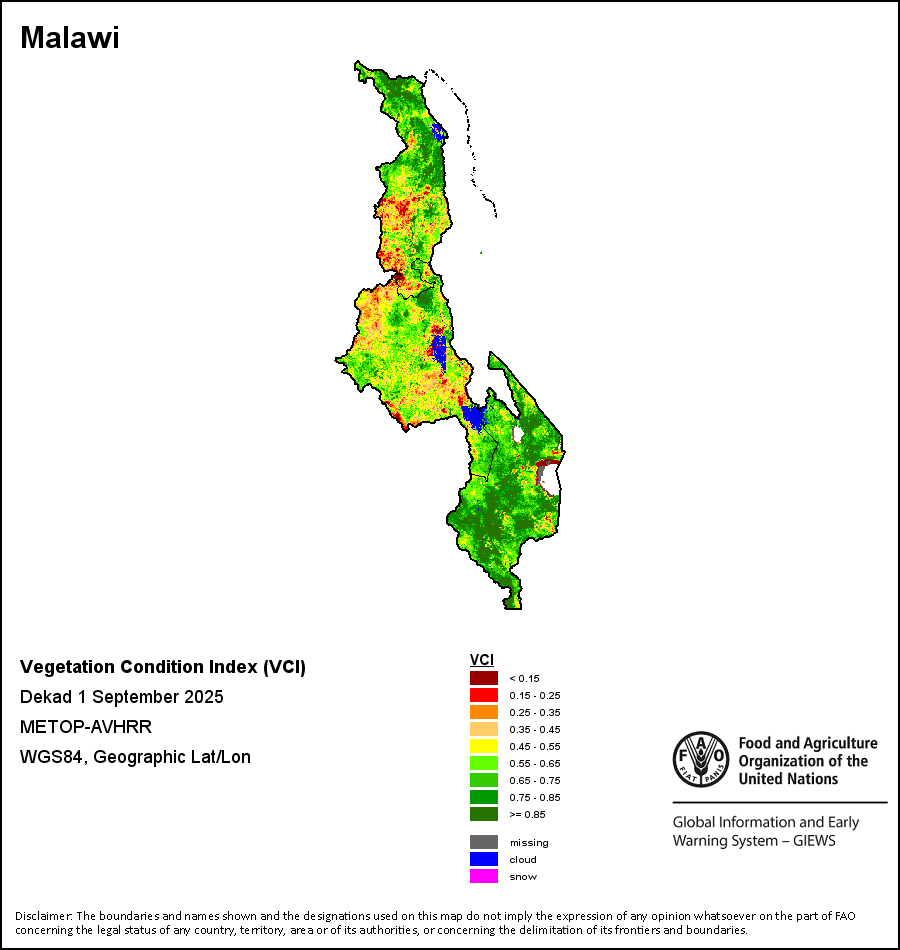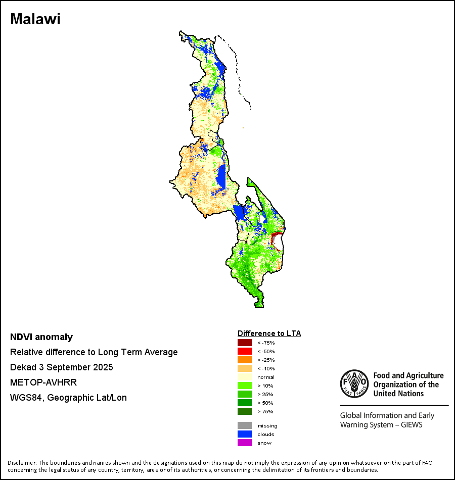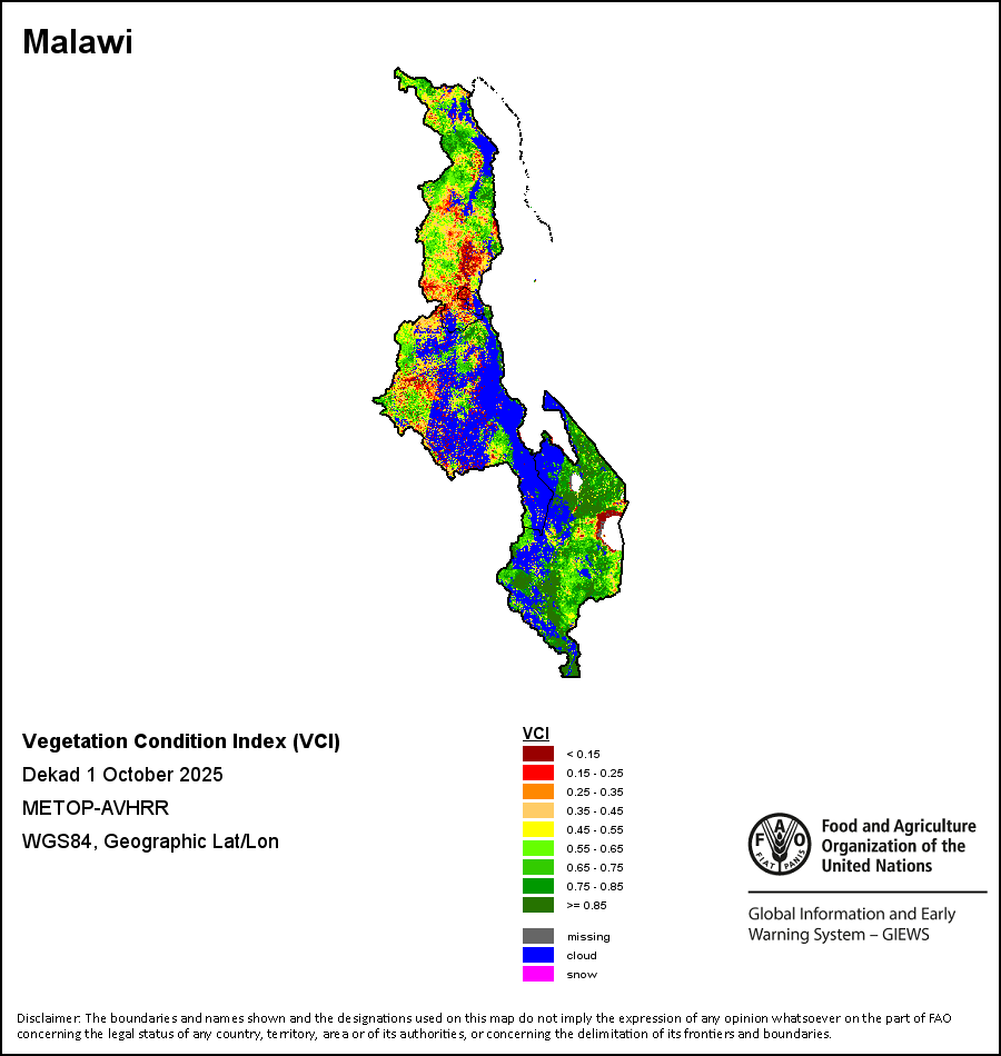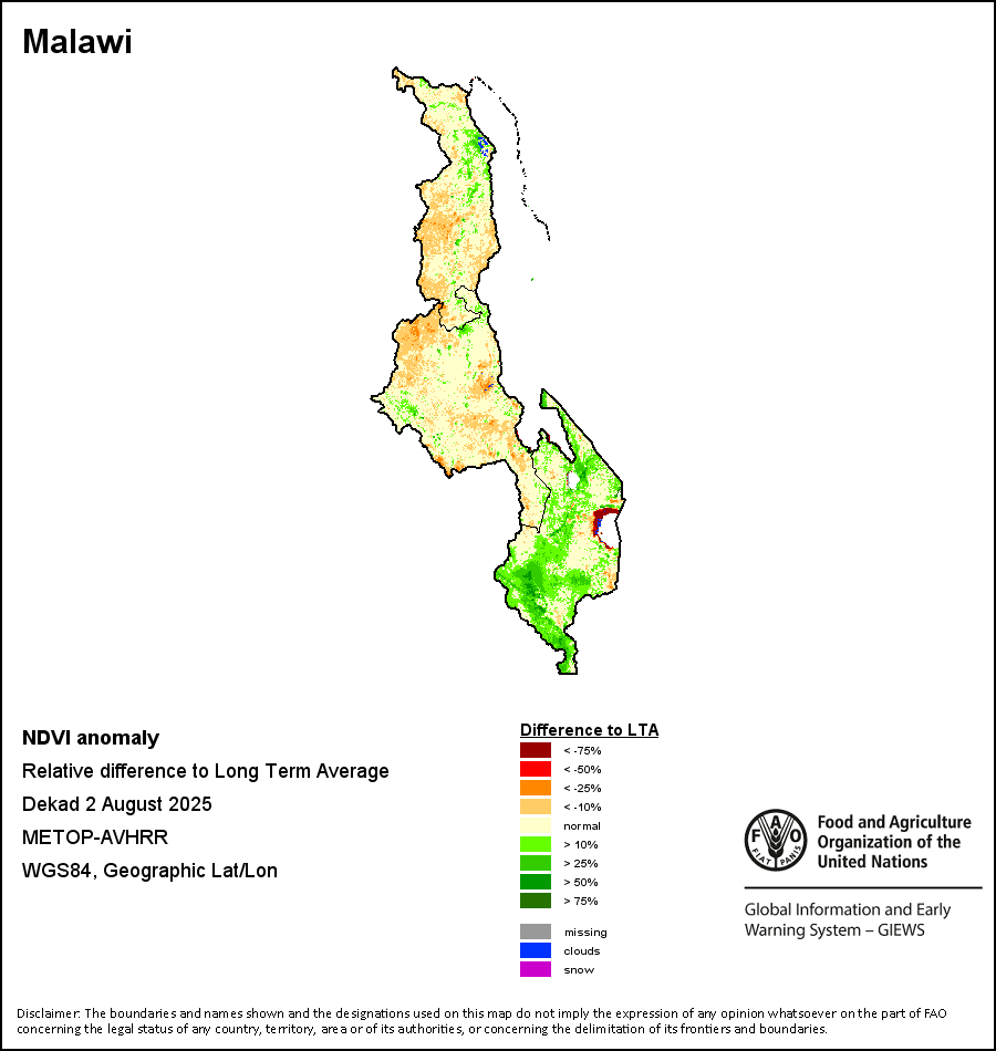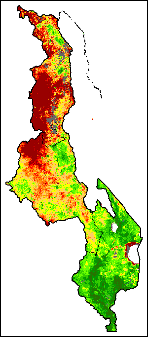 所有三项植被指标都是基于来自METOP-AVHRR遥感卫星分辨率1千米的10天(旬)植被数据(2007年及以后)得出的。1984-2006年期间的1千米分辨率数据得自NOAA-AVHRR16千米分辨率数据集。所有非洲国家的降水量估算(除佛得角和毛里求斯外)均取自NOAA/FEWSNet,其他国家则取自ECMWF。
