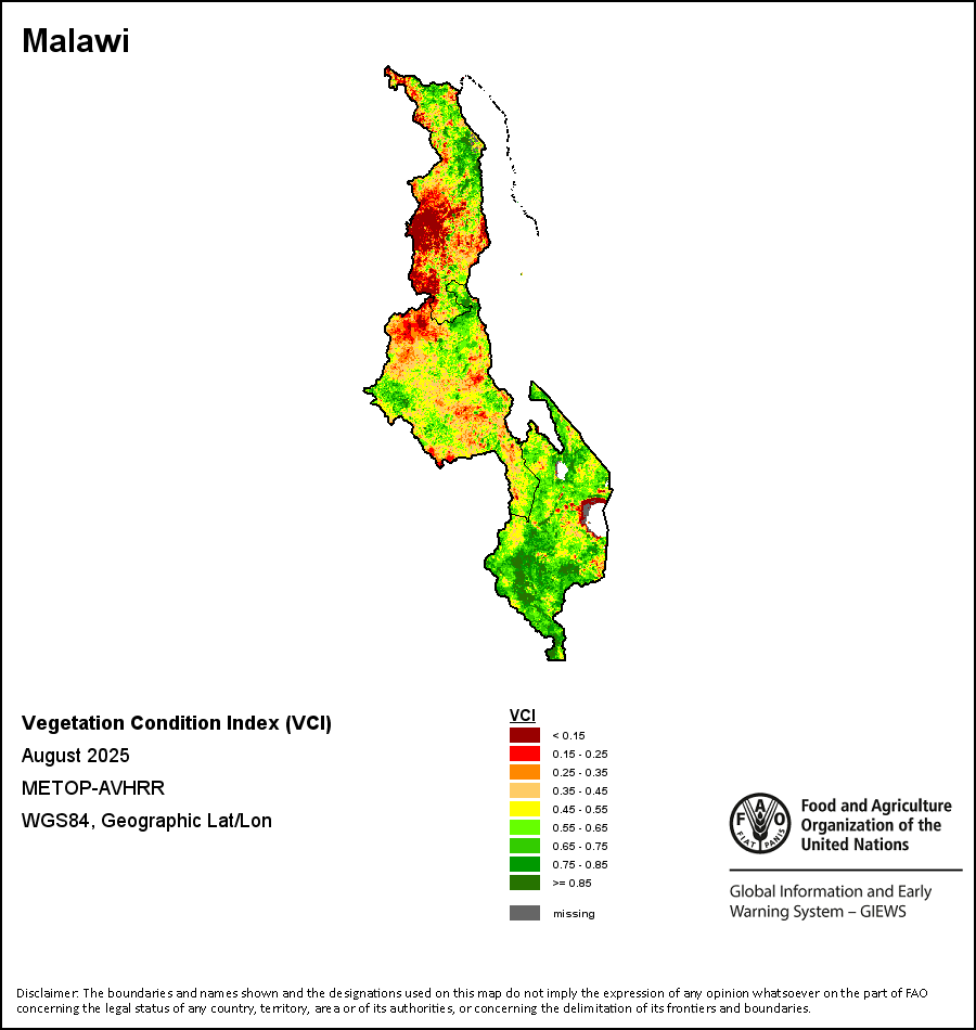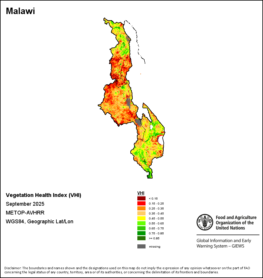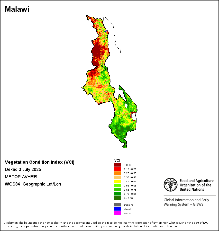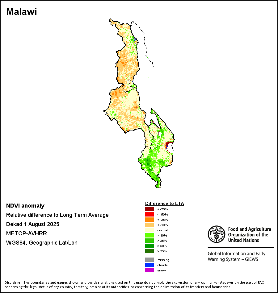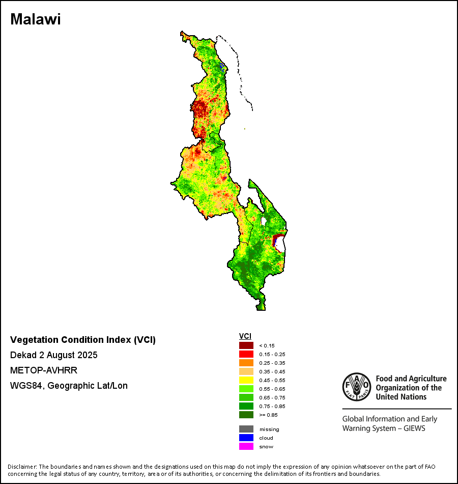 所有三项植被指标都是基于来自METOP-AVHRR遥感卫星分辨率1千米的10天(旬)植被数据(2007年及以后)得出的。1984-2006年期间的1千米分辨率数据得自NOAA-AVHRR16千米分辨率数据集。所有非洲国家的降水量估算(除佛得角和毛里求斯外)均取自NOAA/FEWSNet,其他国家则取自ECMWF。