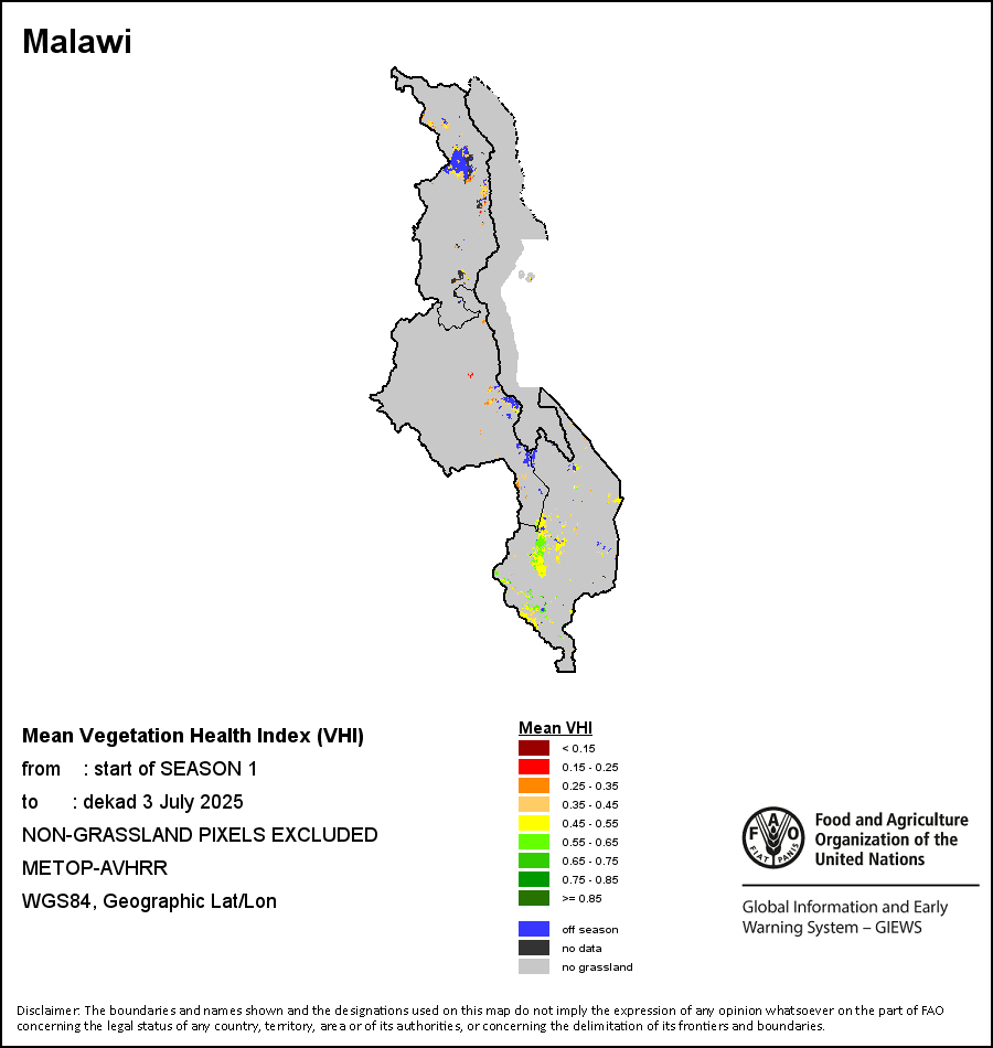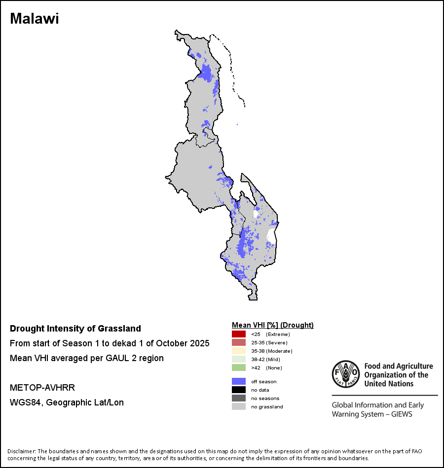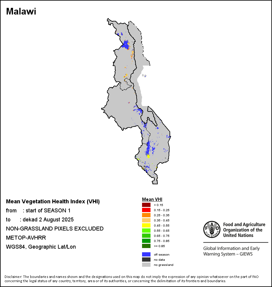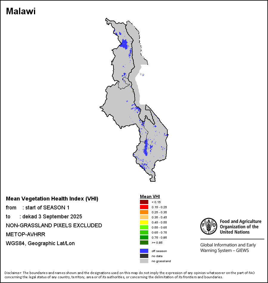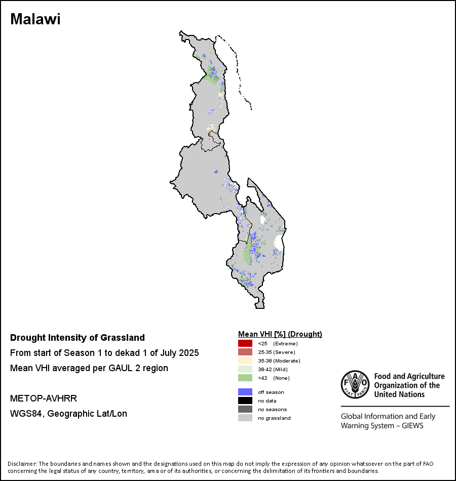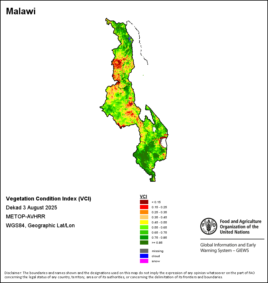 所有三项植被指标都是基于来自METOP-AVHRR遥感卫星分辨率1千米的10天(旬)植被数据(2007年及以后)得出的。1984-2006年期间的1千米分辨率数据得自NOAA-AVHRR16千米分辨率数据集。所有非洲国家的降水量估算(除佛得角和毛里求斯外)均取自NOAA/FEWSNet,其他国家则取自ECMWF。