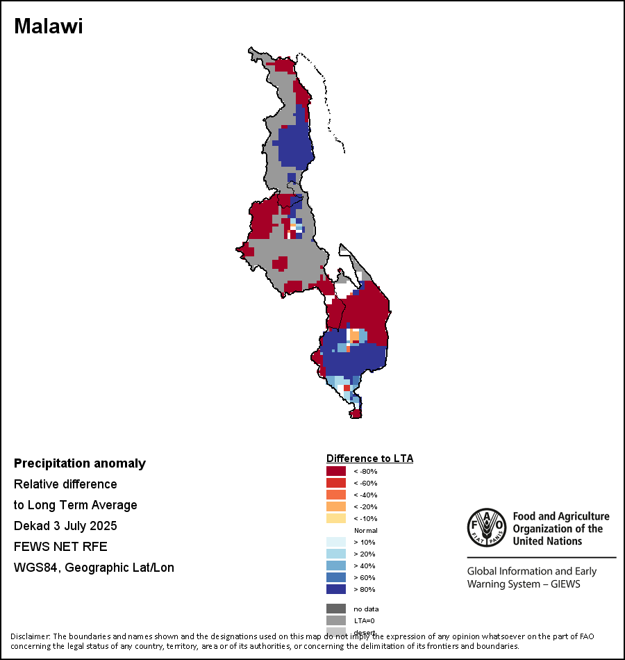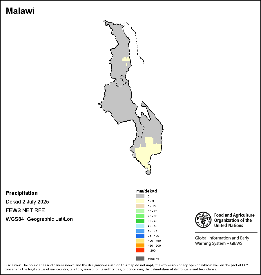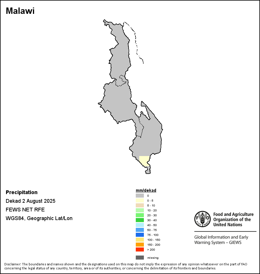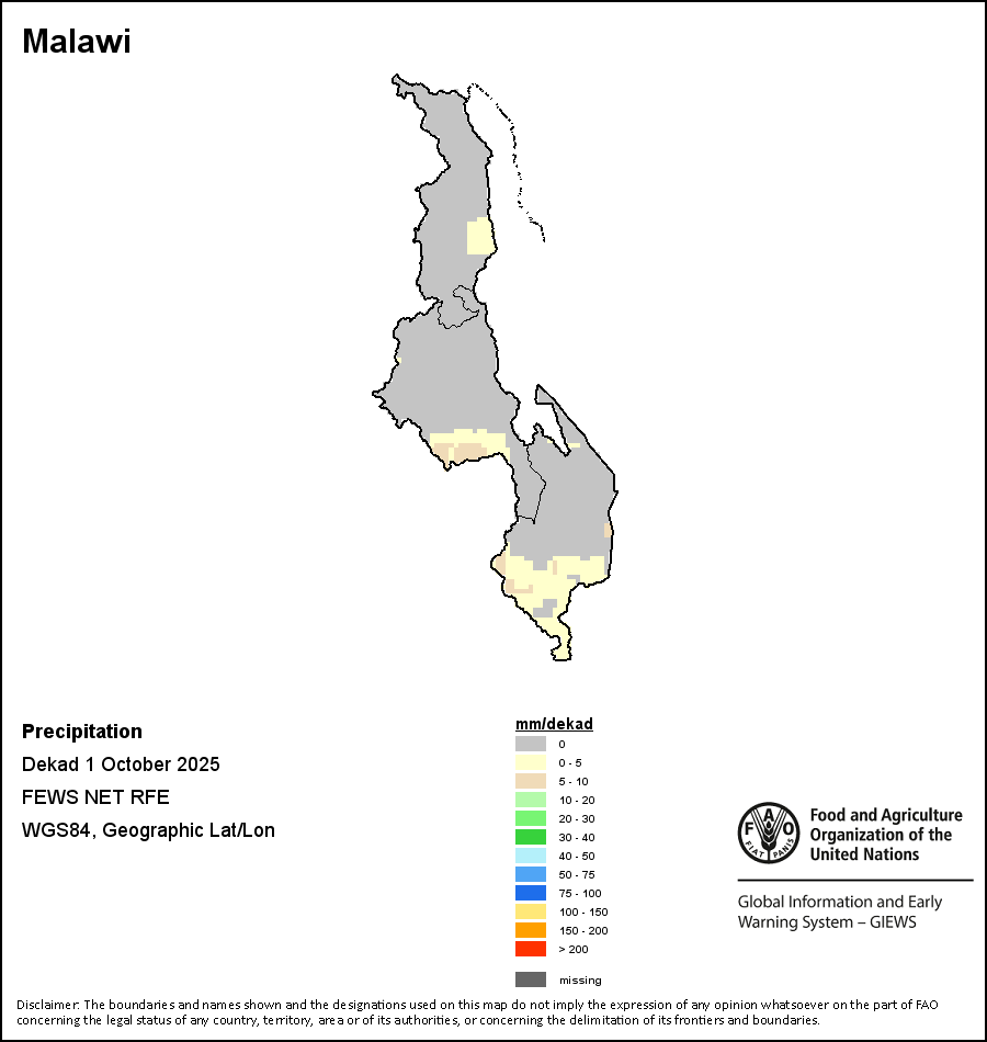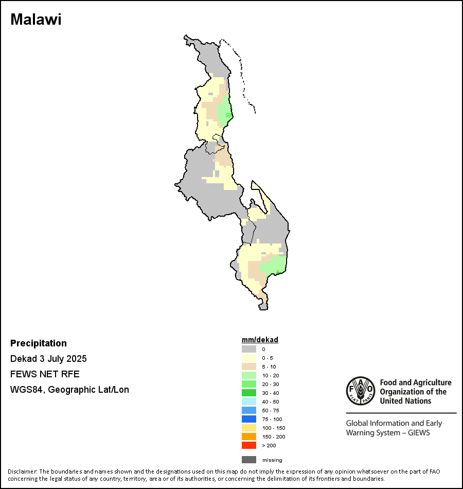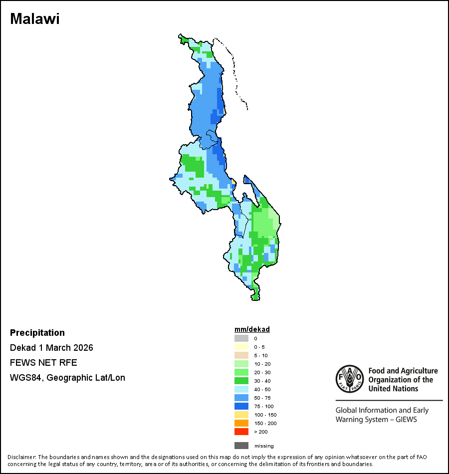 该图谱显示了每一旬(十天)的累积降水量。 所有非洲国家的降水量估算(除佛得角和毛里求斯外)均取自NOAA/FEWSNet,其他国家则取自ECMWF。