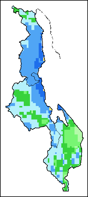 国别地图和图表显示的是最近36个月期间的季节、植被和降水指标。数据按每10天和每月呈现。 所有三项植被指标都是基于来自METOP-AVHRR遥感卫星分辨率1千米的10天(旬)植被数据(2007年及以后)得出的。1984-2006年期间的1千米分辨率数据得自NOAA-AVHRR16千米分辨率数据集。所有非洲国家的降水量估算(除佛得角和毛里求斯外)均取自NOAA/FEWSNet (16千米分辨率),其他国家则取自ECMWF(25千米分辨率)。 由于植被指标(如NDVI、VHI)的空间分辨率高于降水指标,因此,在部分国家能够通过有效分区统计数据计算植被指标的次国家级单元数量,超过能够以相同方式计算降水指标的次国家级单元数量。