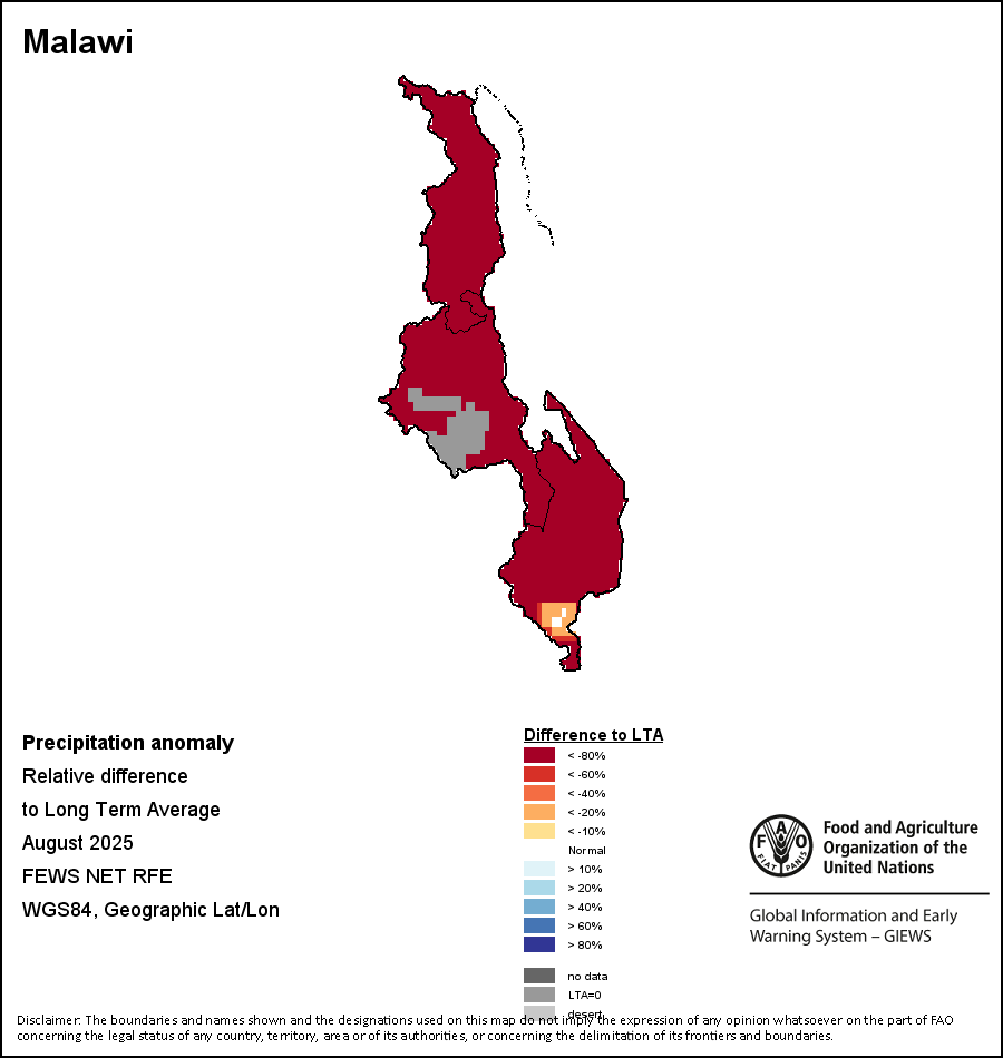 该图谱显示了当前降水量与平均水平之间的差异。 由降水量水平与长期平均值(LTA)进行比较得出,长期平均值系指1989-2015年期间的数值。暖色调指示的是降水量低于平均水平的地区,而冷色调指示的则是降水量高于平均水平的地区。降雨量估算数据来自欧洲中期天气预报这些(ECMWF)。